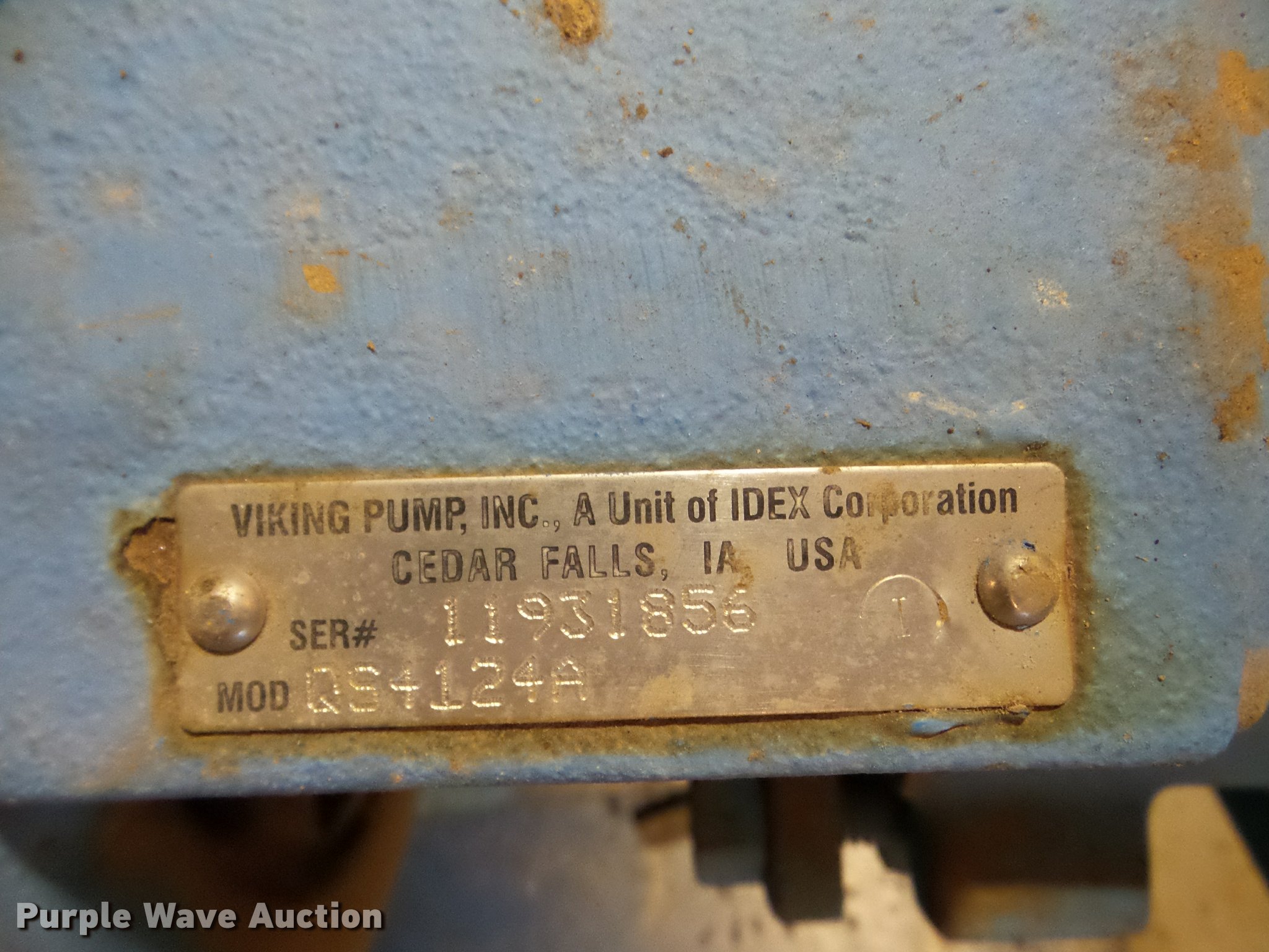 Purple Wave is selling a used Pump in Texas. This item is a Viking QS4124A pump with the following: Baldor M4308T electric motor, 40 HP, 230/460V, 60 Hz, Three phase, Serial C0606020169, Skid mounted, Unknown operating condition, Serial 11931856