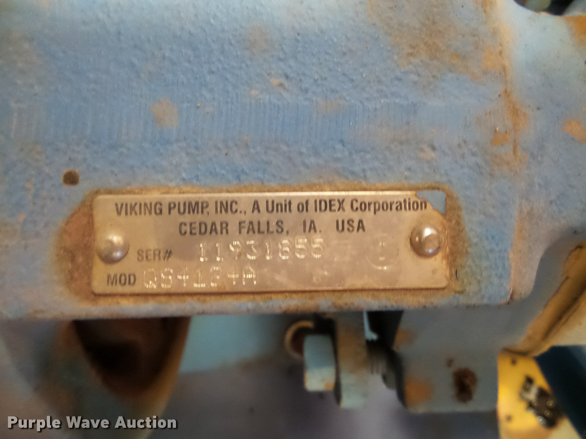 Purple Wave is selling a used Pump in Texas. This item is a Viking QS4124A pump with the following: Baldor M4308T electric motor, 40 HP, 230/460V, 60 Hz, Three phase, Serial C0606020174, Skid mounted, Unknown operating condition, Serial 11931855