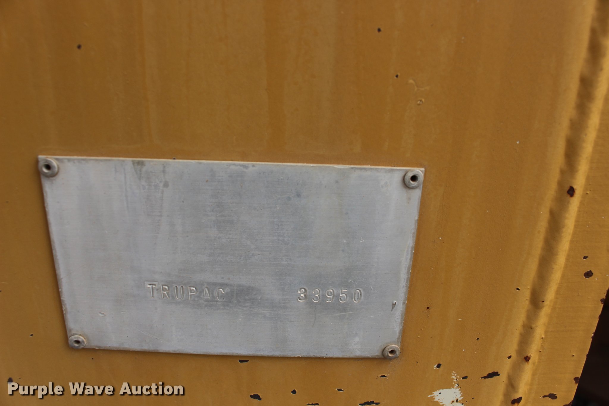 Purple Wave is selling a used Pneumatic Roller in Oklahoma. This item is a 1995 Rosco TRU-PAC 915 pneumatic roller with the following: 1,330 hours on meter, Four cylinder diesel engine, Hydrostatic transmission, OROPS, Canopy, Suspension seat, Vandal cover, Front water application, (5) front tires, (4) rear tires, 7.50-15 NHS tires, Serial 33950, Unit# 150.420