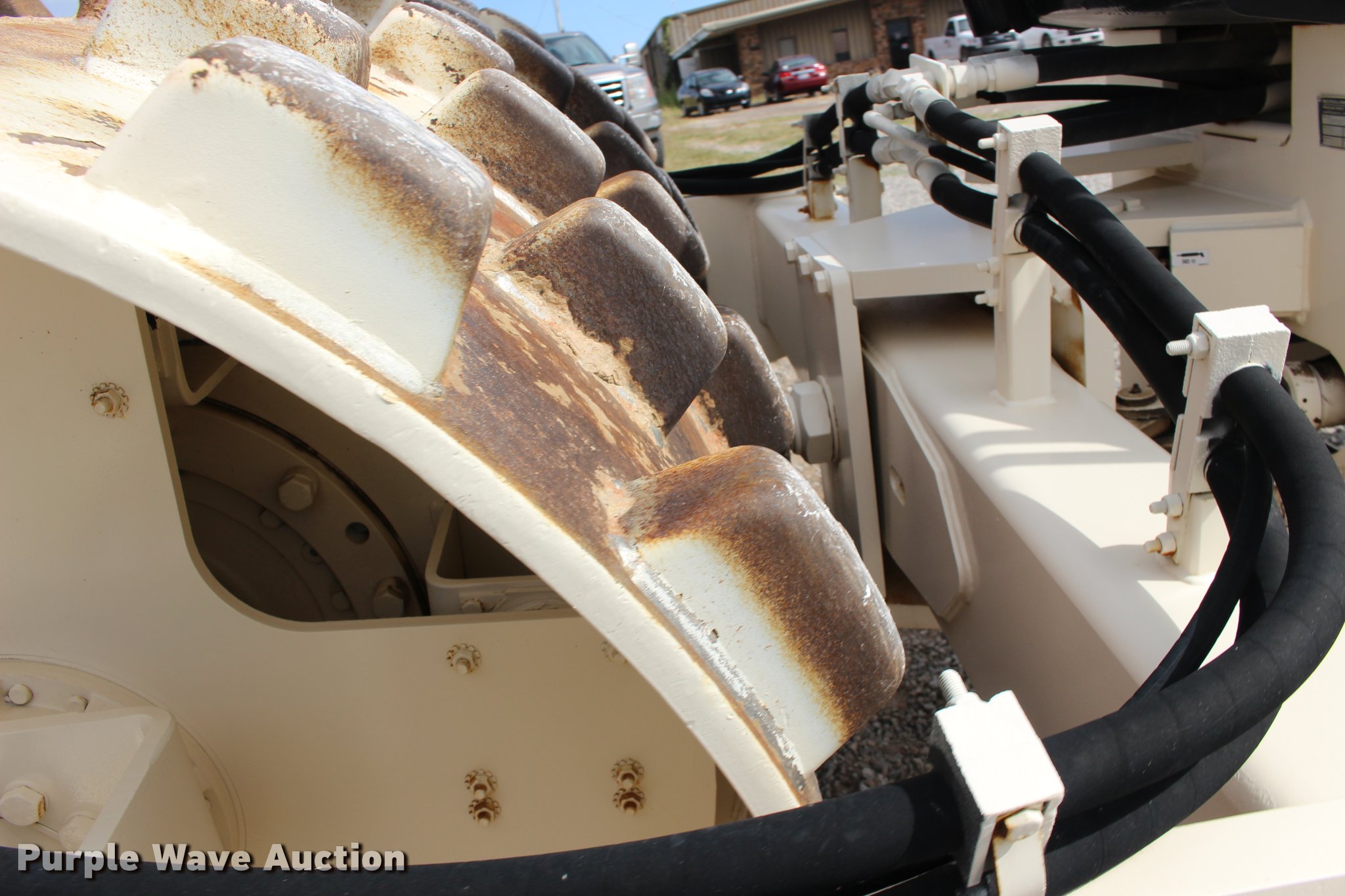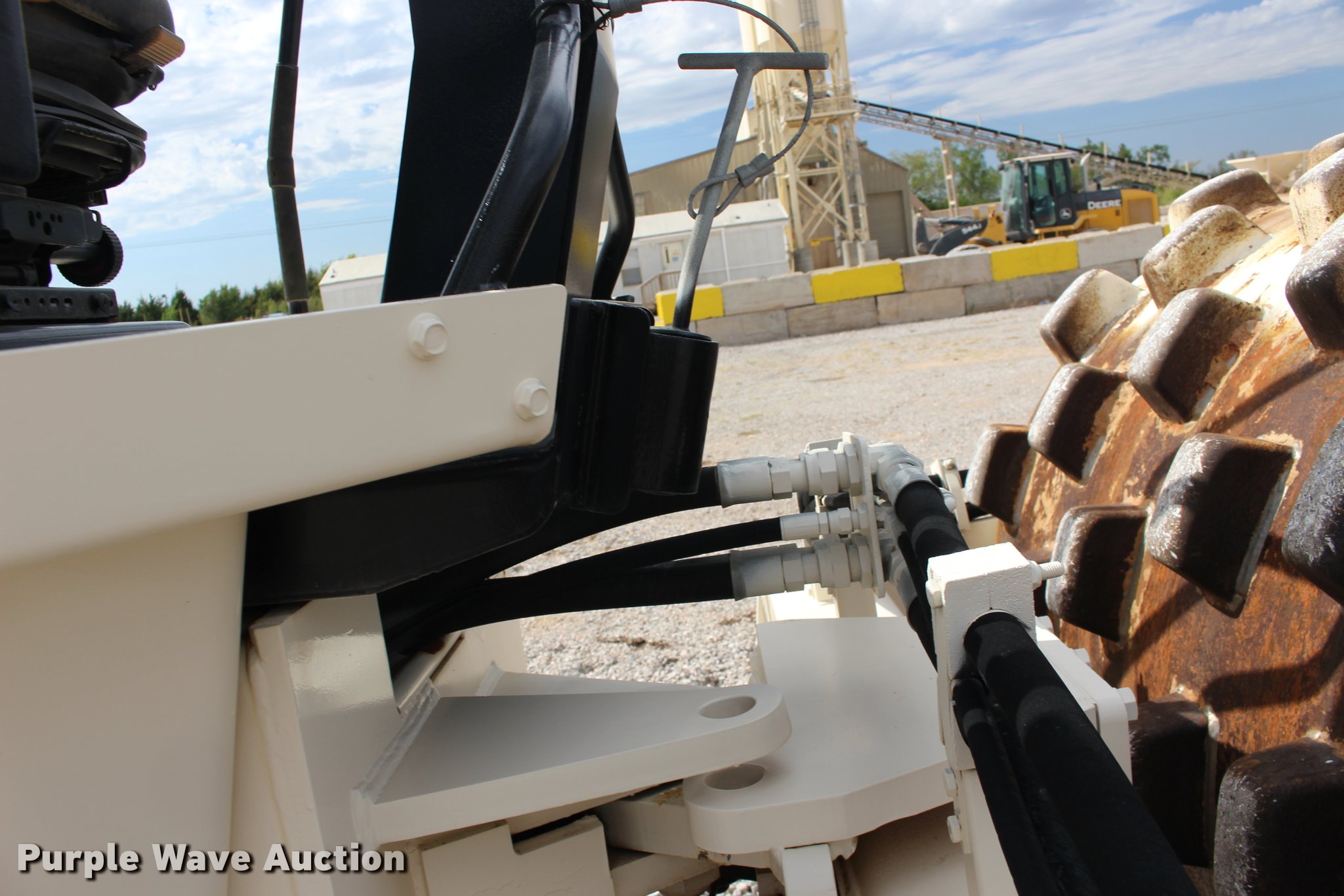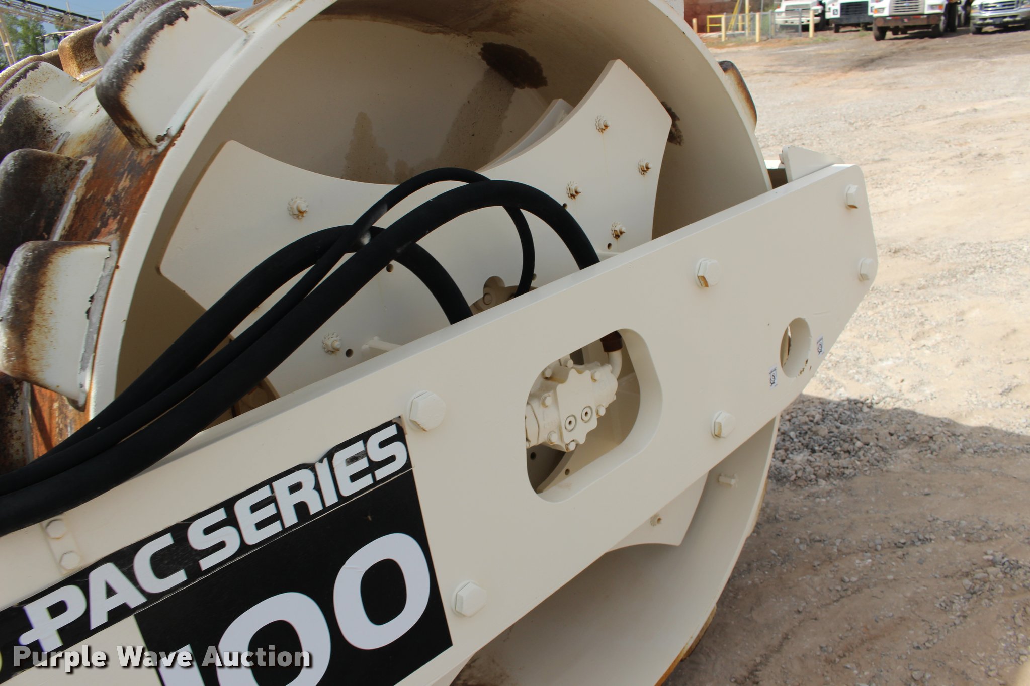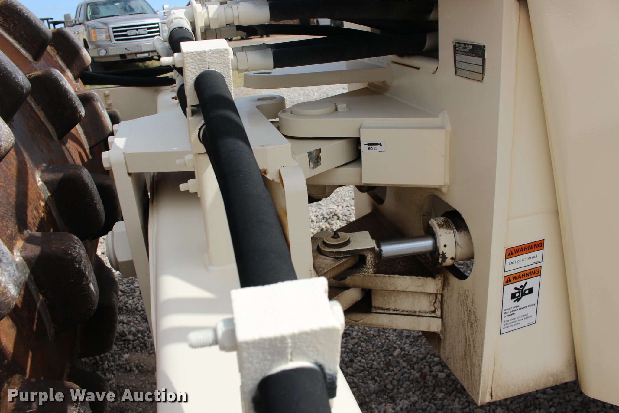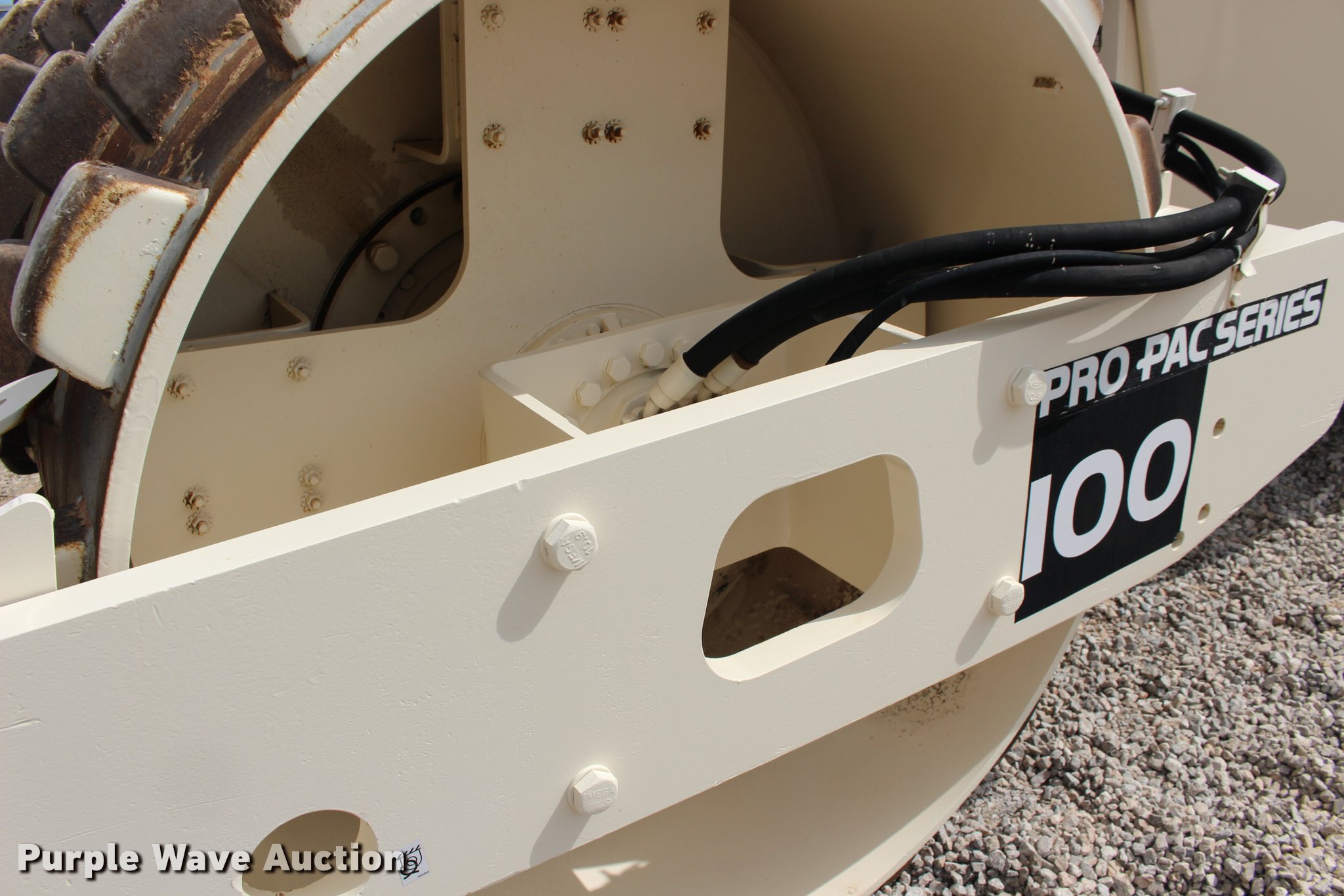 Purple Wave is selling a used Single Drum Roller Compactor in Oklahoma. This item is a 2001 Ingersoll Rand SD-100F single drum vibratory roller with the following: 2,720 hours on meter, Cummins 3.9L four cylinder turbo diesel engine, 125 HP, Two speed hydrostatic transmission, OROPS, Canopy, Suspension seat, Vandal cover, 84"W x 59" diameter padfoot drum, Front drum scraper, Single two speed vibratory system, BKT 23.1-26 tires, Serial 150231, Unit# 191.292
