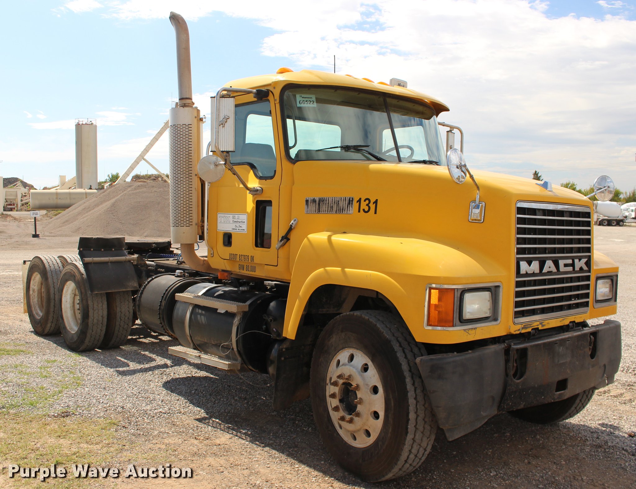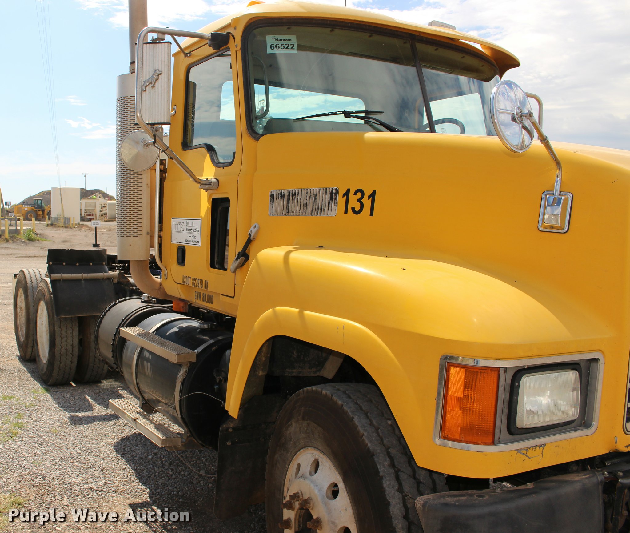 Purple Wave is selling a used Truck Tractor in Oklahoma. This item is a 2006 Mack CHN613 semi truck with the following: 332,384 miles on odometer, 16,257 hours on meter, Mack A six cylinder turbo diesel engine, 427 HP, Serial 580501, Eaton Fuller 13 speed manual transmission, Tandem axle, Inter-axle differential lock, AC and heat, Tilt, Telescoping steering wheel, Cruise, AM/FM/CD, Heated mirrors, Air suspension seat, Leather interior, Air ride cab, PTO, Wet kit, Exterior visor, Front tow hooks, Single exhaust stack, Sliding fifth wheel plate, Dual fuel tanks, Poly quarter fenders, Mud flaps, Camelback spring suspension, Air brakes, 220" wheelbase, 11R24.5 tires, GVW 80,000 lbs, Unit# 805.131