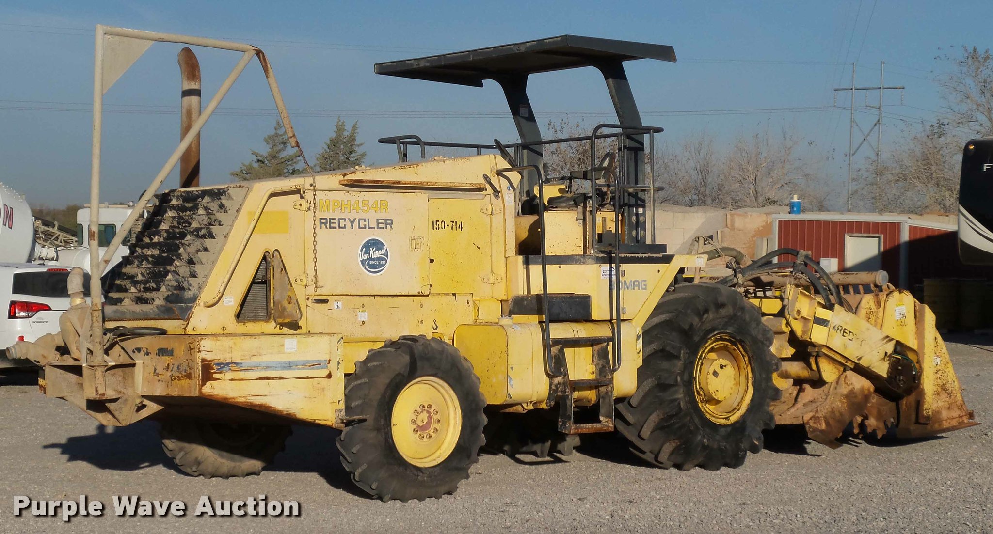 Purple Wave is selling a used Reclaimer or Stabilizer in Oklahoma. This item is a 2005 Bomag MPH454R reclaimer with the following: 4,853 hours on meter, Cummins N14-C450-2100 14.0L six cylinder turbo diesel engine, 475 HP, Serial 60535680, Two speed hydrostatic transmission, ROPS canopy, 8'W cutter, Water applicator, 3" plumbing, Flomax 15 front mounted pump, Drum drive leak, Serial 901A22301532, Unit# 150.714