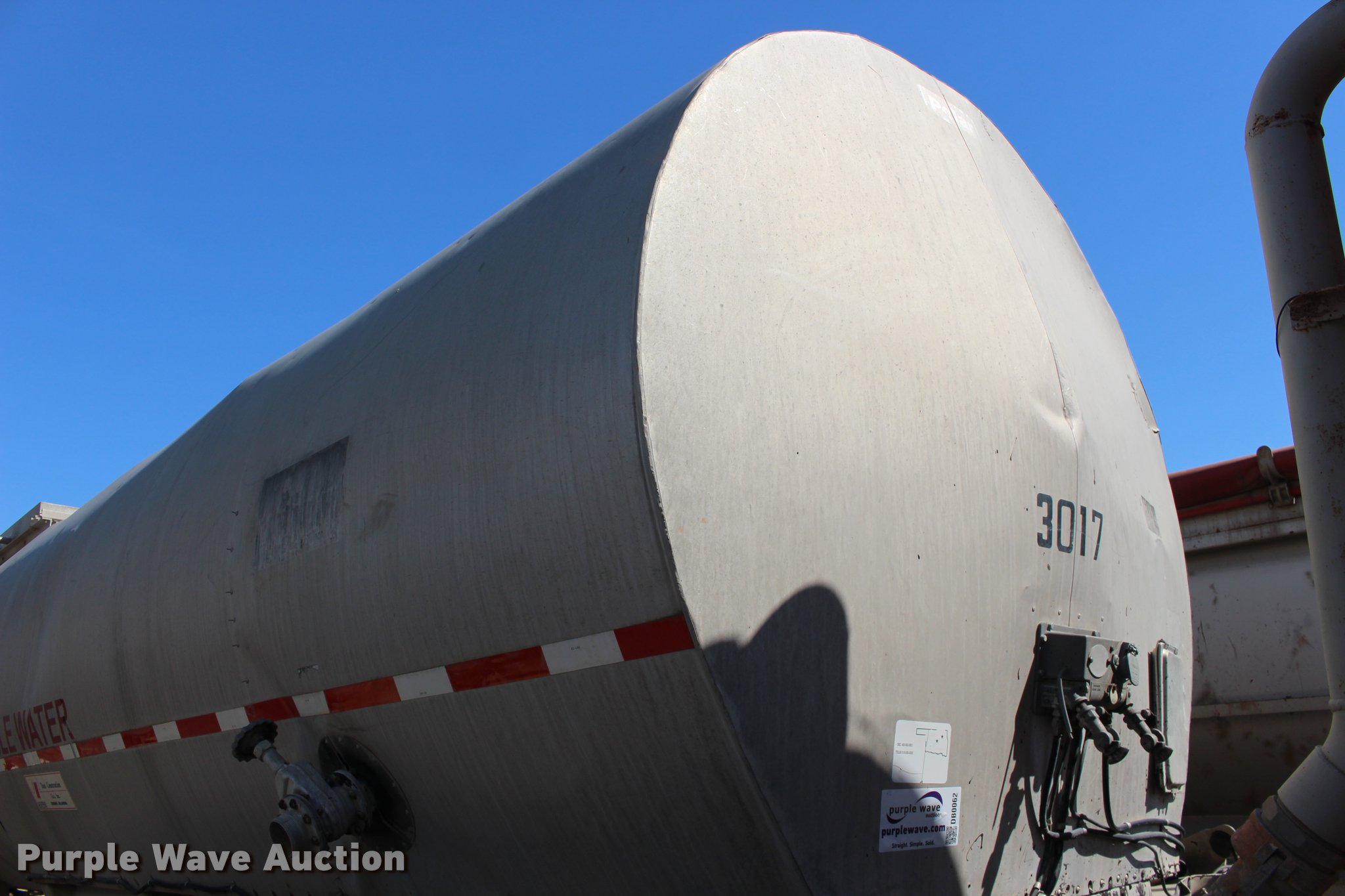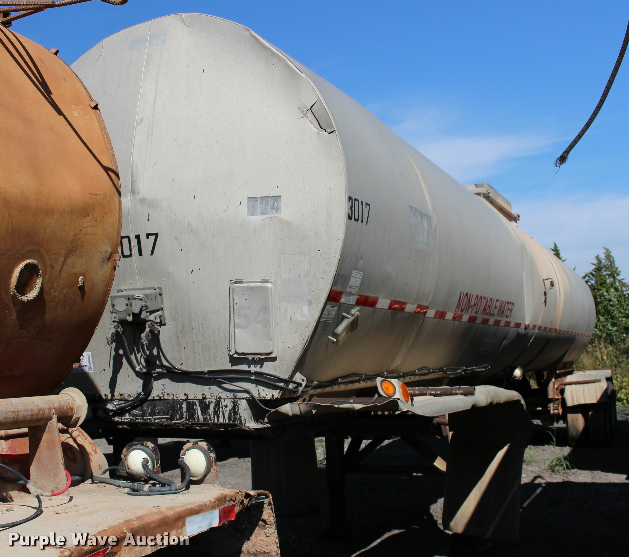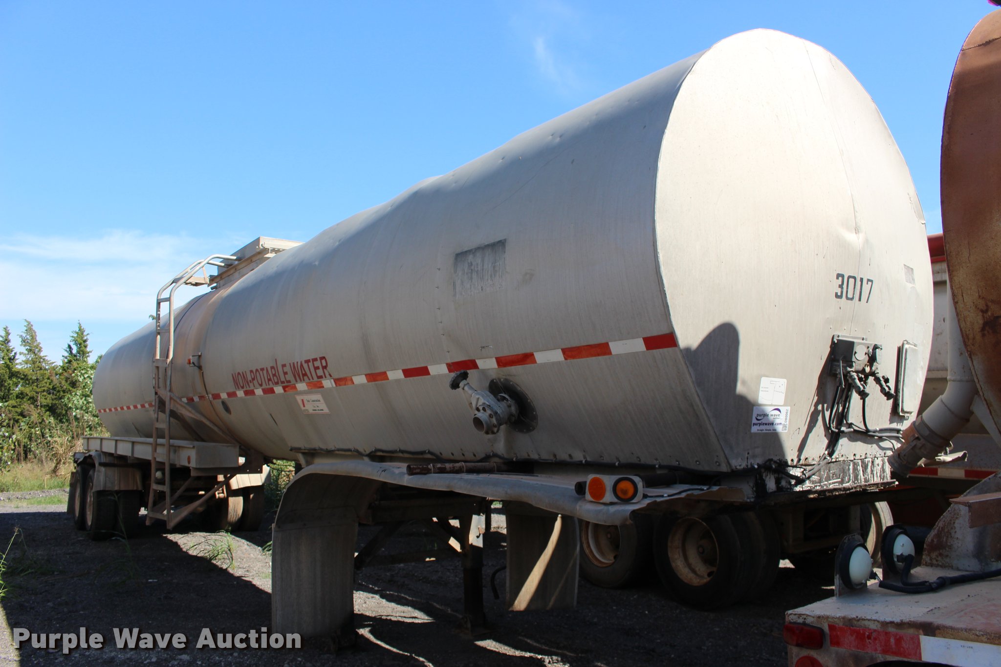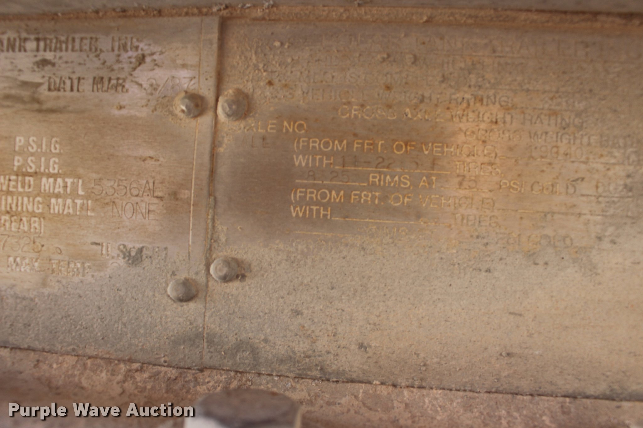 Purple Wave is selling a used Tank Trailer in Oklahoma. This item is a 1987 Polar tank trailer with the following: 42'L x 96"W, 7,300 gallon capacity, Aluminum construction, Dual leg landing gear, Fifth wheel plate, Tandem axle, Spring suspension, Air brakes, Steel wheels, 295/75R22.5 tires, Unit# 651-550