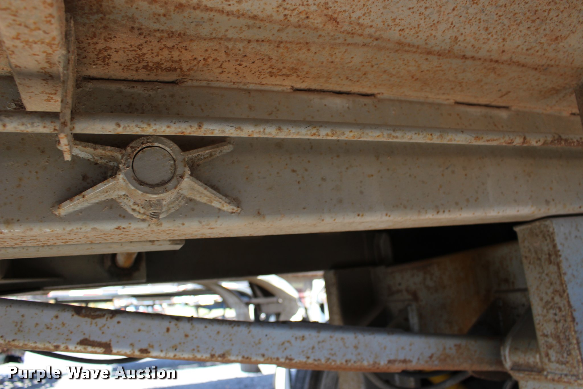 2003 Hilbilt barrel end dump trailer. Model 22 3/16 HDMN, 20.5'L x 96"W, Single ram hoist, Rollover tarp, Dual leg landing gear, Fifth wheel plate, Tandem axle, Ride well air suspension, Air brakes, Steel wheels, 11R22.5 tires, Unit# 146.615. Oklahoma title. 1H9A3E3C531015003. Duit Holdings Inc.. 7183 E. Waterloo Industrial Road. Edmond, OK 73034