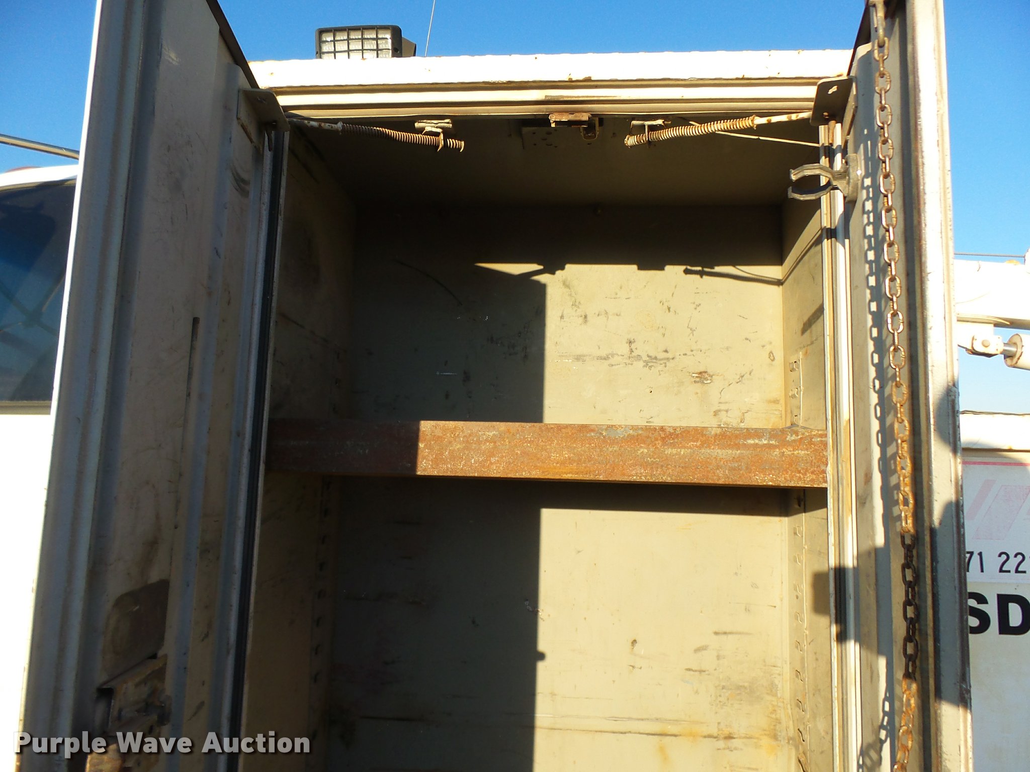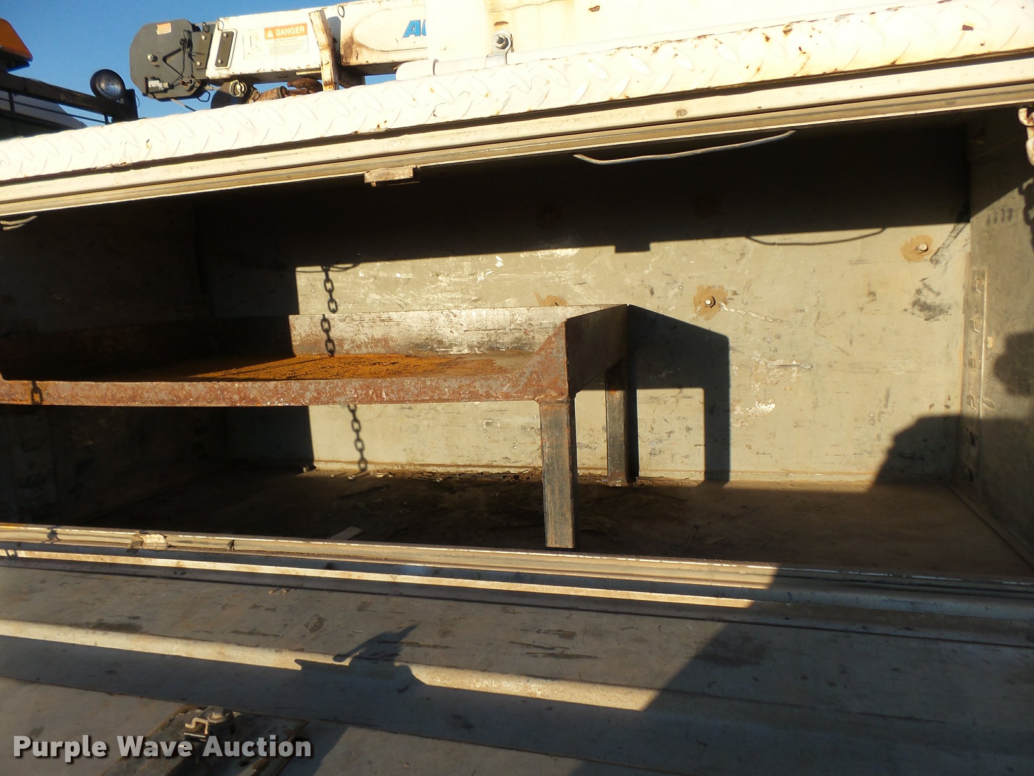 Purple Wave is selling a used Service Truck in Oklahoma. This item is a 2002 Chevrolet C6500 service truck with crane with the following: 307,415 miles on odometer, 6,427 hours on meter, Caterpillar 3126 7.2L six cylinder diesel engine, 330 HP, Serial CKM44617, Six speed manual transmission, Single axle, AC and heat, AM/FM, Power windows and locks, Auxiliary controls, Front tow hooks, Beacon light, Block heater, PTO, Rawson Koenig C84DW94 service bed, Shelving, Utility rack, Work lights, Mounted vise, Electrical outlet, Hydraulic fluid reservoir, Auto Crane 8406H crane, 27.5' boom length, 8,400 lbs max lift capacity, Remote control, (2) outriggers, Dual fuel tanks, Receiver hitch, Trailer wiring, Spring suspension, Hydraulic brakes, 156" wheelbase, 245/70R19.5 tires, GVWR 25,600 lbs, Unit# 771.222