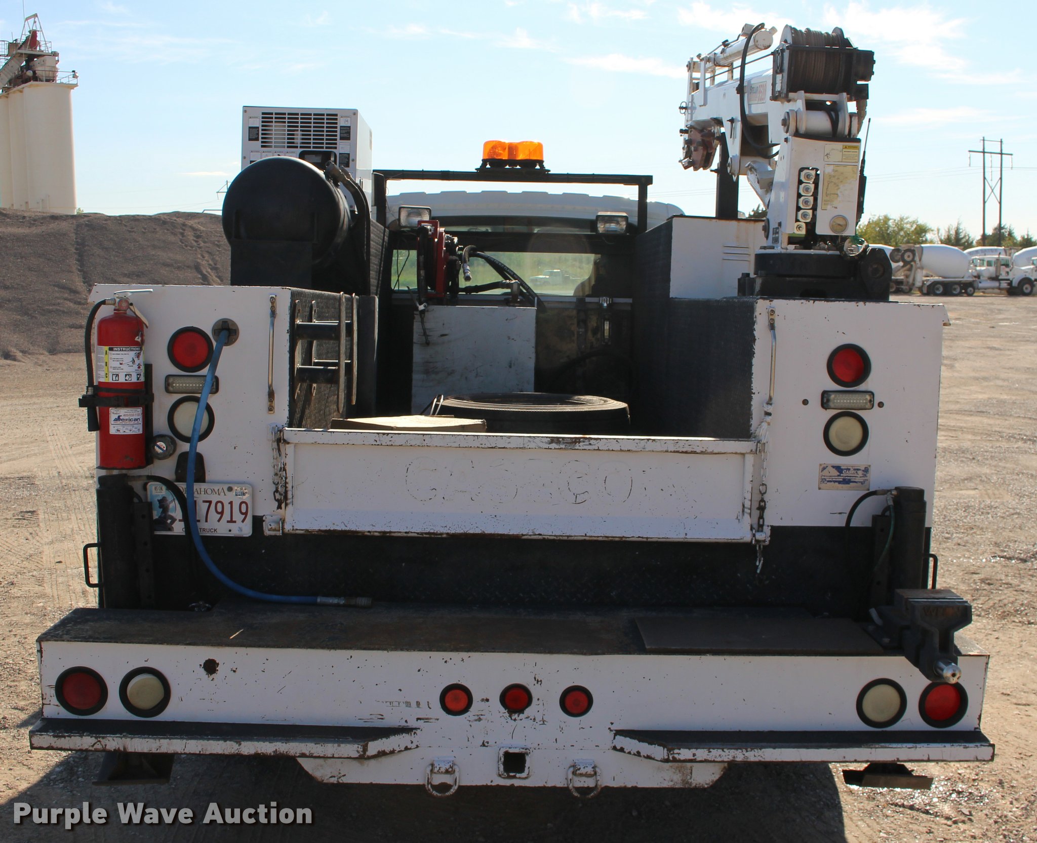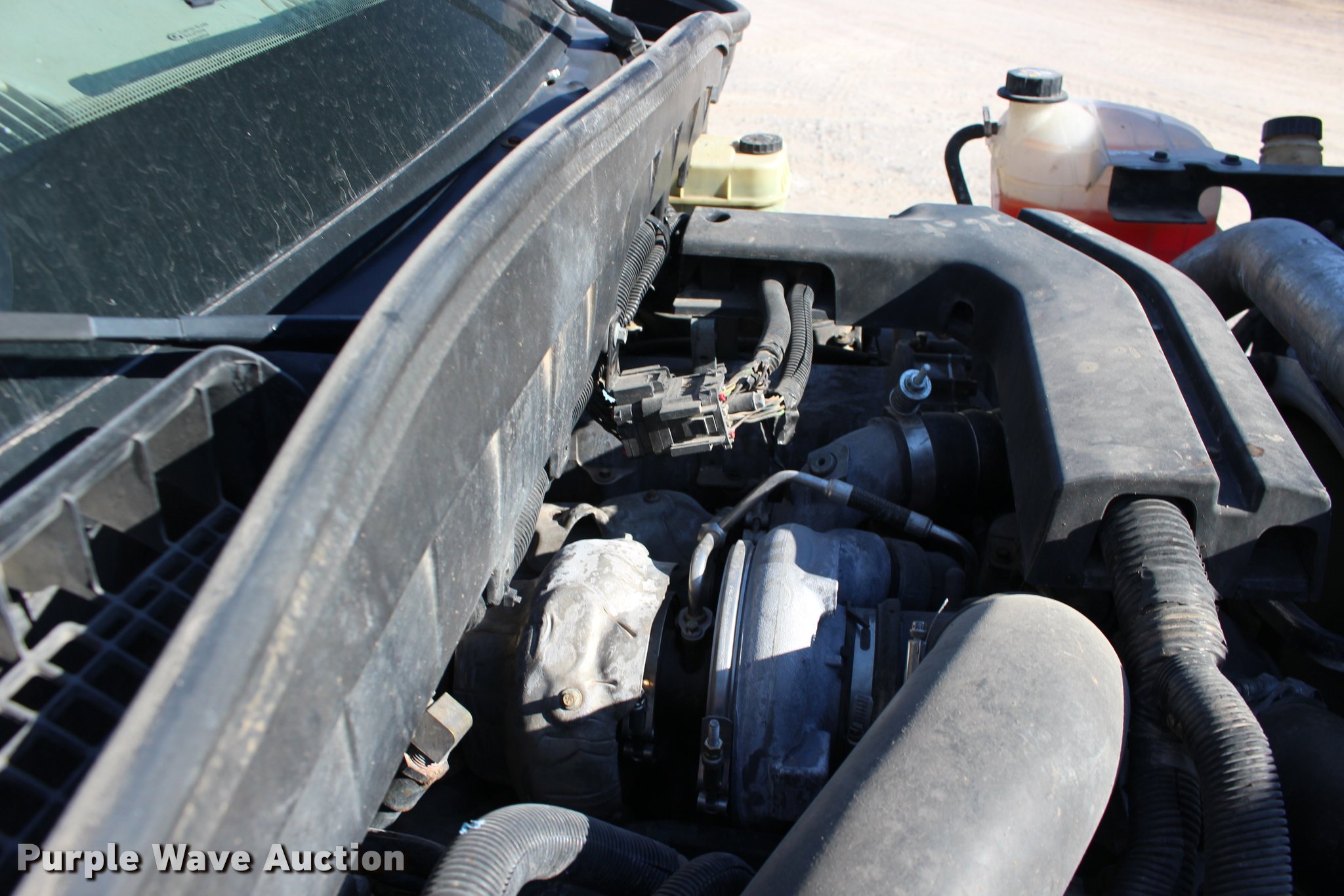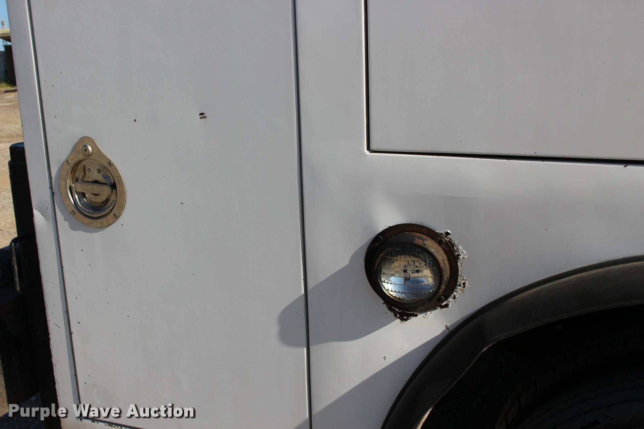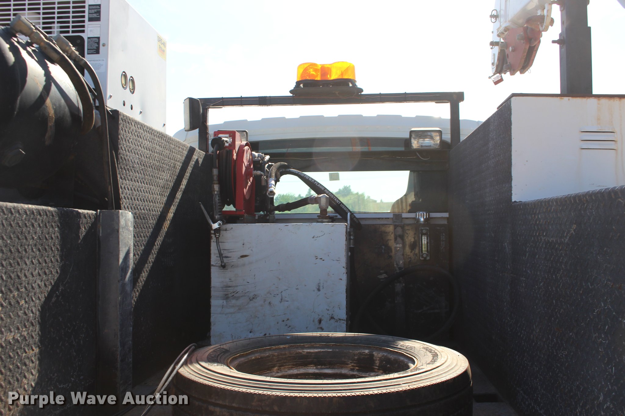 Purple Wave is selling a used Service Truck in Oklahoma. This item is a 2013 International TerraStar service truck with crane with the following: 208,615 km on odometer, 8,595 hours on first meter, 7,797 hours on second meter, International MaxxForce 7 6.4L V8 turbo diesel engine, Automatic transmission, Single axle, AC and heat, Tilt, AM/FM, Air suspension seat, Stellar auxiliary controls, Front tow hooks, PTO, Caseco MM238 service bed, 12'L, Shelving, Slide-out drawers, Utility rack, Work lights, Wilton mounted vise, Bed liner, Torch bottle rack, Rotocomp NK40-2 air compressor, Stellar SRS-40 engine, 200 psi, Hose reel, Oil/lube system, Hose reels, Hydraulic fluid reservoir, Grease reservoir, Fuel tank, Stellar 5520 crane, 21.5' boom length, 5,000 lbs max lift capacity, Remote control, (2) outriggers, Serial BCF05B184, Receiver hitch, Spring suspension, Hydraulic brakes, Michelin 225/70R19.5 tires, Unit# 151.043