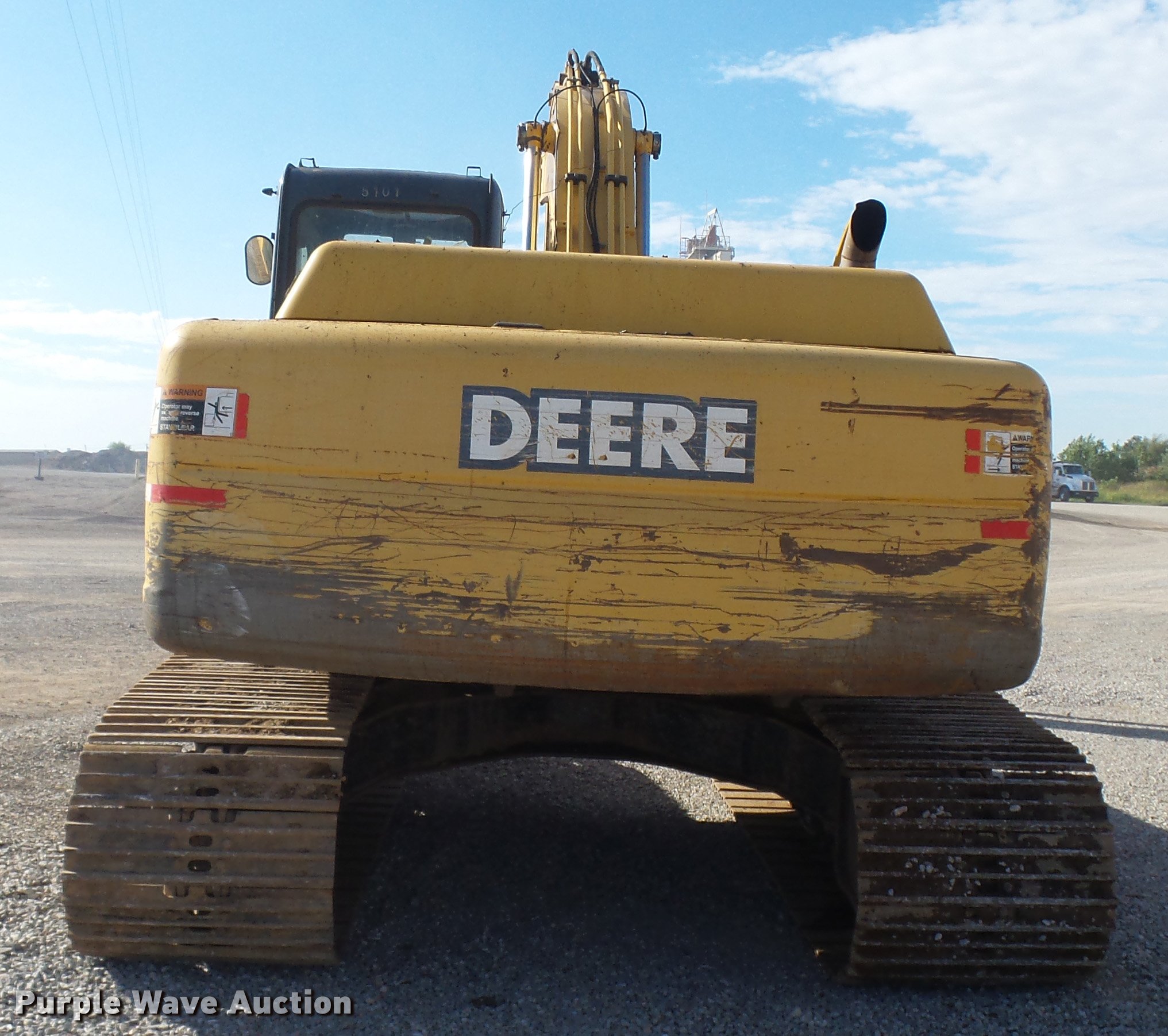 Purple Wave is selling a used Hydraulic Excavator in Oklahoma. This item is a 2005 John Deere 200C LC excavator with the following: 7,391 hours on meter, John Deere Powertech 8.6L six cylinder turbo diesel engine, Two speed hydrostatic transmission, EROPS, AC and heat, AM/FM, Air suspension seat, Pattern changer, Front work lights, Standard boom, 9.5' stick length, WB 43"W bucket, (5) bolt-on teeth, 31.5"W steel triple grouser track pads, Serial FF200CX506353, Unit# 326.203
