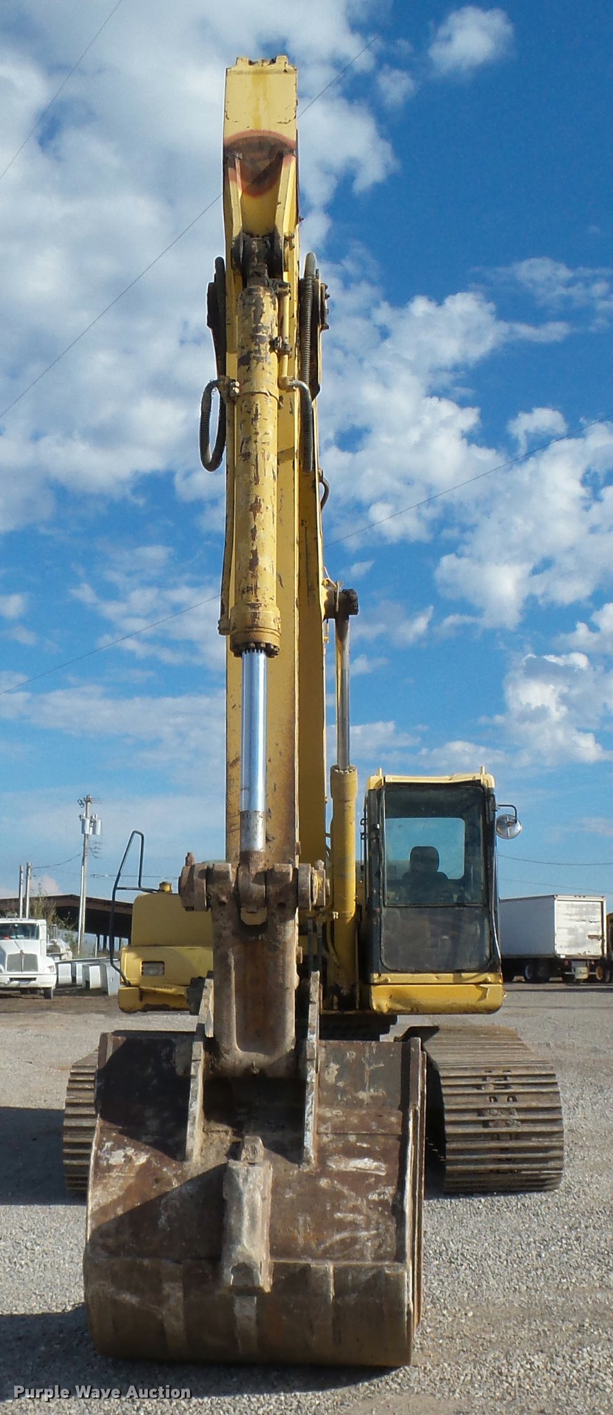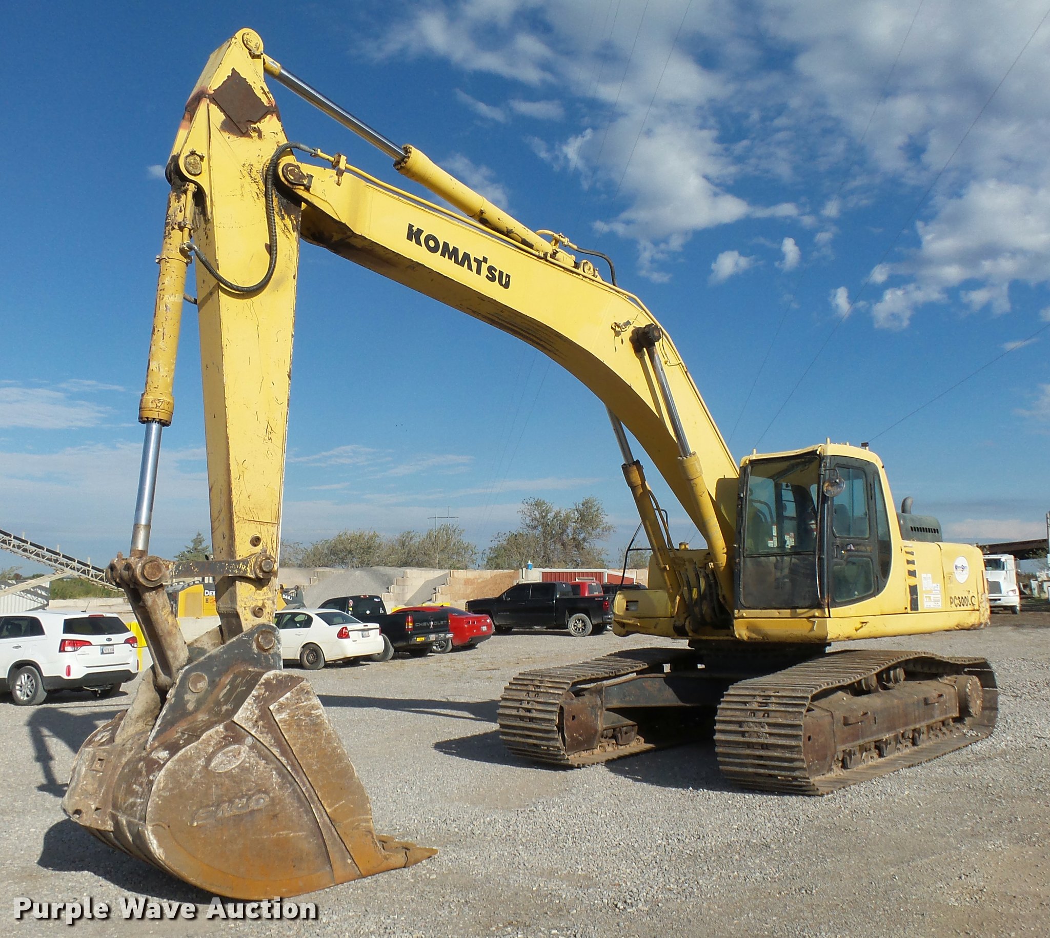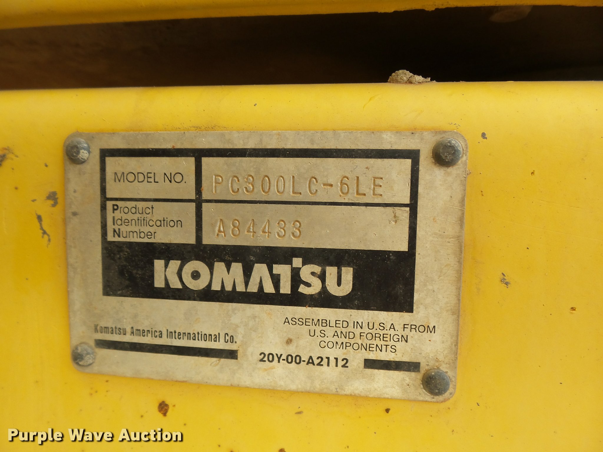 Purple Wave is selling a used Hydraulic Excavator in Oklahoma. This item is a 2000 Komatsu PC300LC-6LE excavator with the following: 12,298 hours on meter, Komatsu SA6D114E-1 8.3L six cylinder turbo diesel engine, 230 HP, Serial 460220399, Two speed hydrostatic transmission, EROPS, AC and heat, AM/FM, Air suspension seat, Standard boom, 9.5' stick length, Esco 55"W bucket, (6) bolt-on teeth, 31.5"W steel triple grouser track pads, Serial A84433, Unit# 325.294