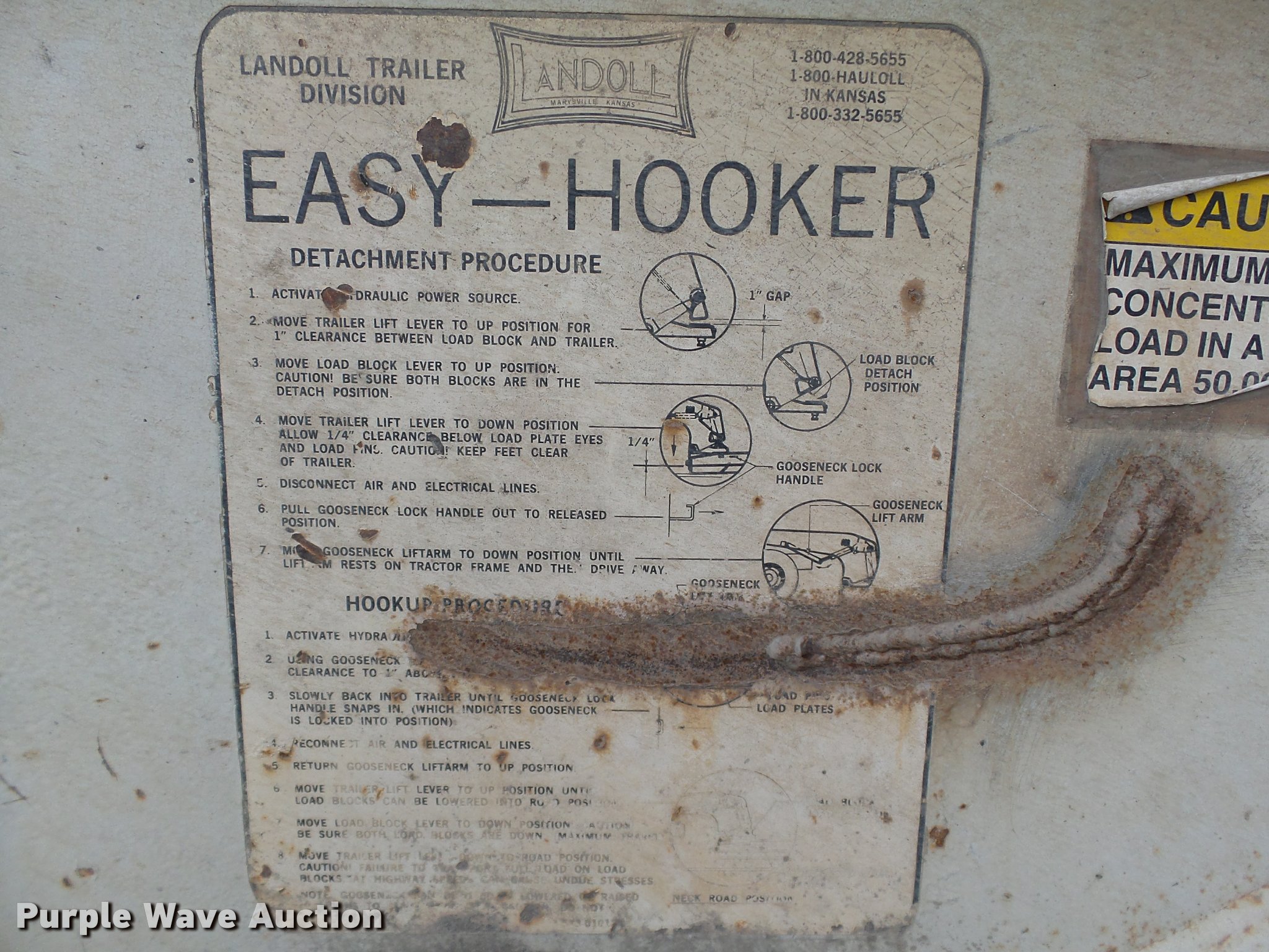 Purple Wave is selling a used Equip. Trailer in Oklahoma. This item is a 1993 Landoll 50T lowboy equipment trailer with the following: 48' overall length, 102"W, 10'L neck, 26'L main deck, 26' well length, 12' rear deck length, 18" tail length, 12" swing-out outriggers, 2'L step, 30"L ramps, Wood deck, D-ring tie downs, Manual hydraulic controls, Fifth wheel plate, Triple axle, Air suspension, Air brakes, Yokohama 225/70R22.5 tires, GVWR 100,000 lbs, Unit# 611.505