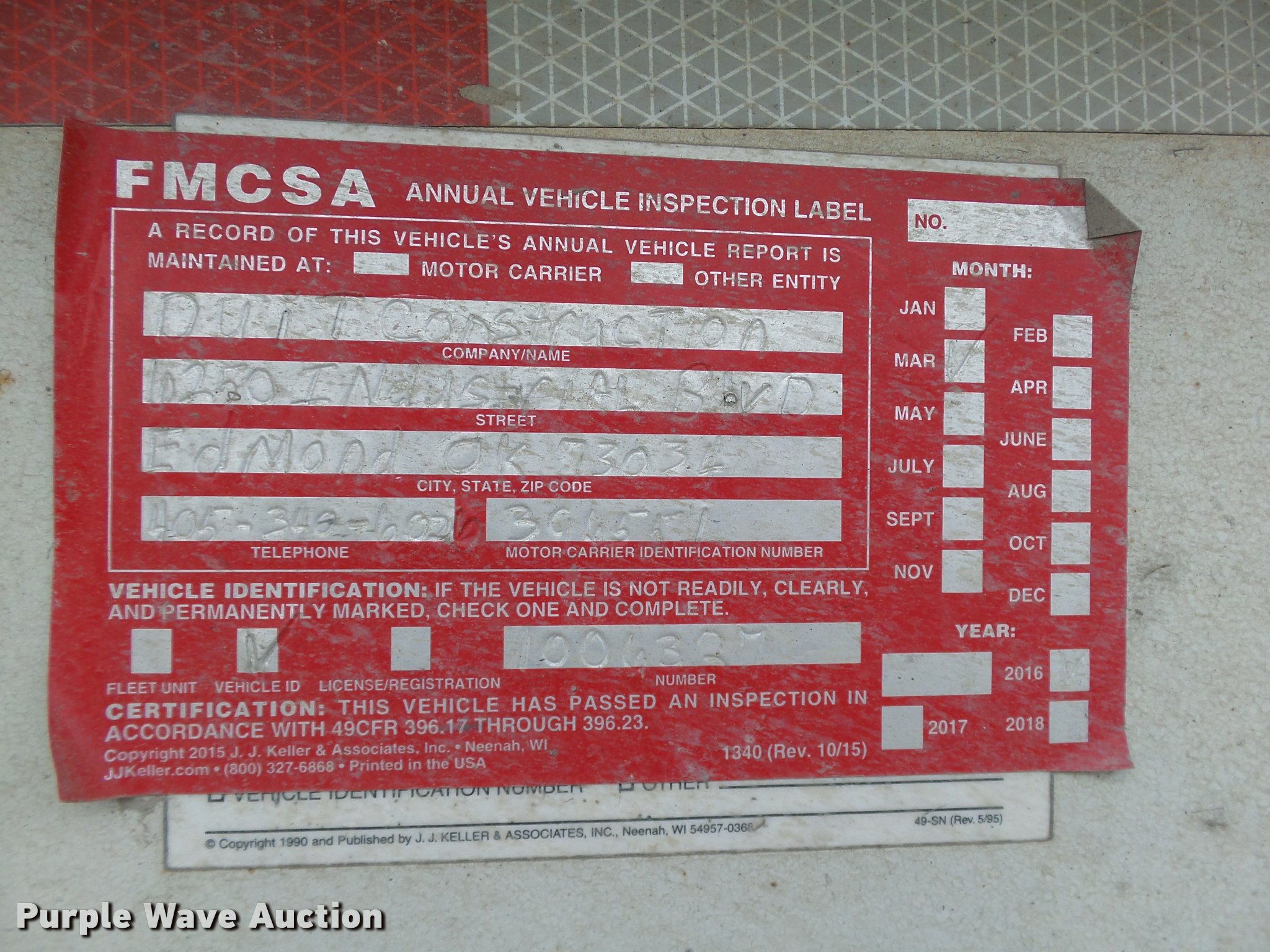 1993 Landoll 50T lowboy equipment trailer. 48' overall length, 102"W, 10'L neck, 26'L main deck, 26' well length, 12' rear deck length 18" tail length, 12" swing-out outriggers, 2'L step, 30"L ramps, Wood deck, D-ring tie downs, Manual hydraulic controls, Fifth wheel plate, Triple axle, Air suspension, Air brakes, Yokohama 225/70R22.5 tires, GVWR 100,000 lbs, Unit# 611.505. Oklahoma title. Title distribution may be delayed up to 30 days from verification of funds. 1LH325WJ6P1006327. Duit Holdings Inc.. 7183 E. Waterloo Industrial Road. Edmond, OK 73034