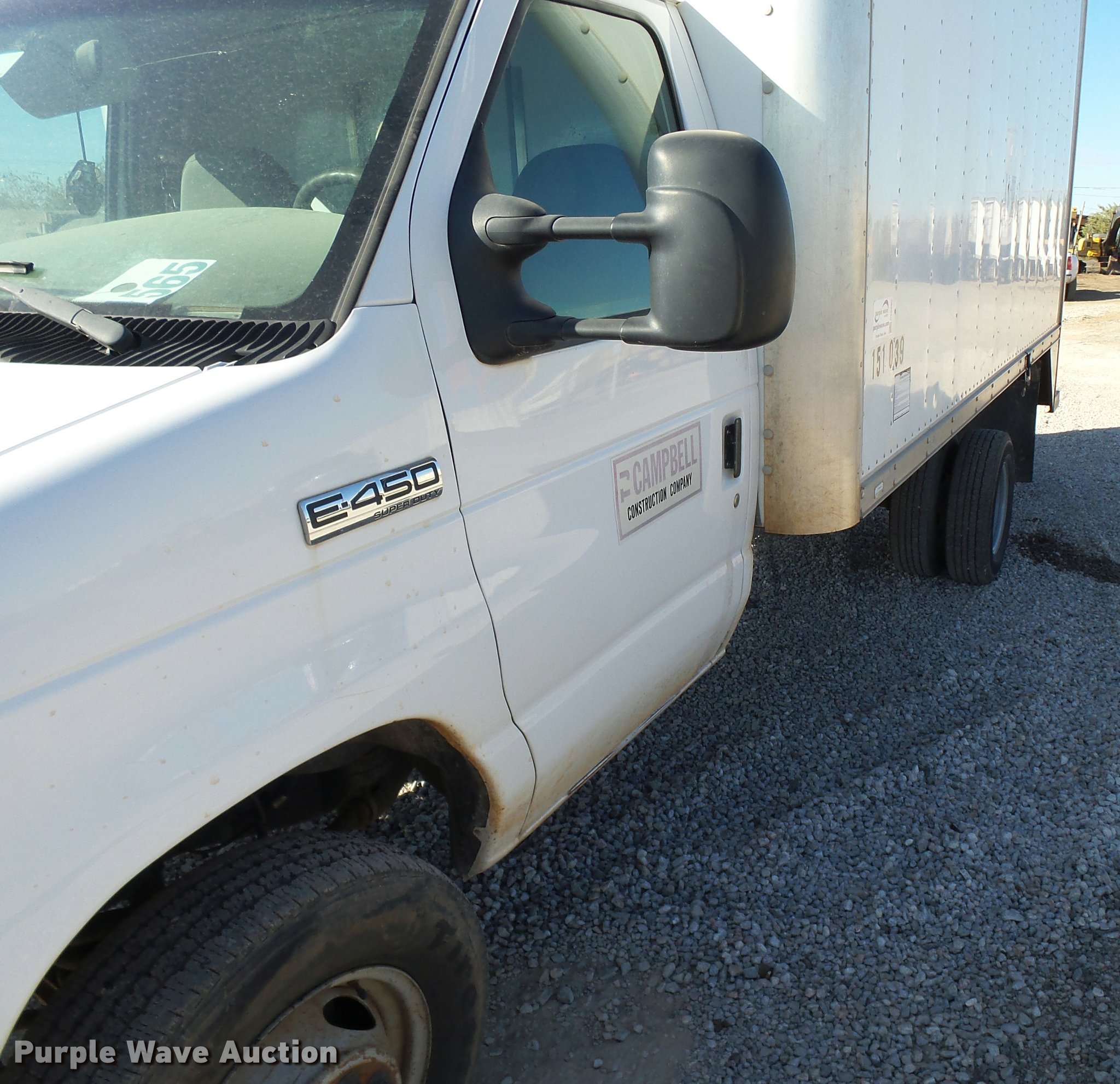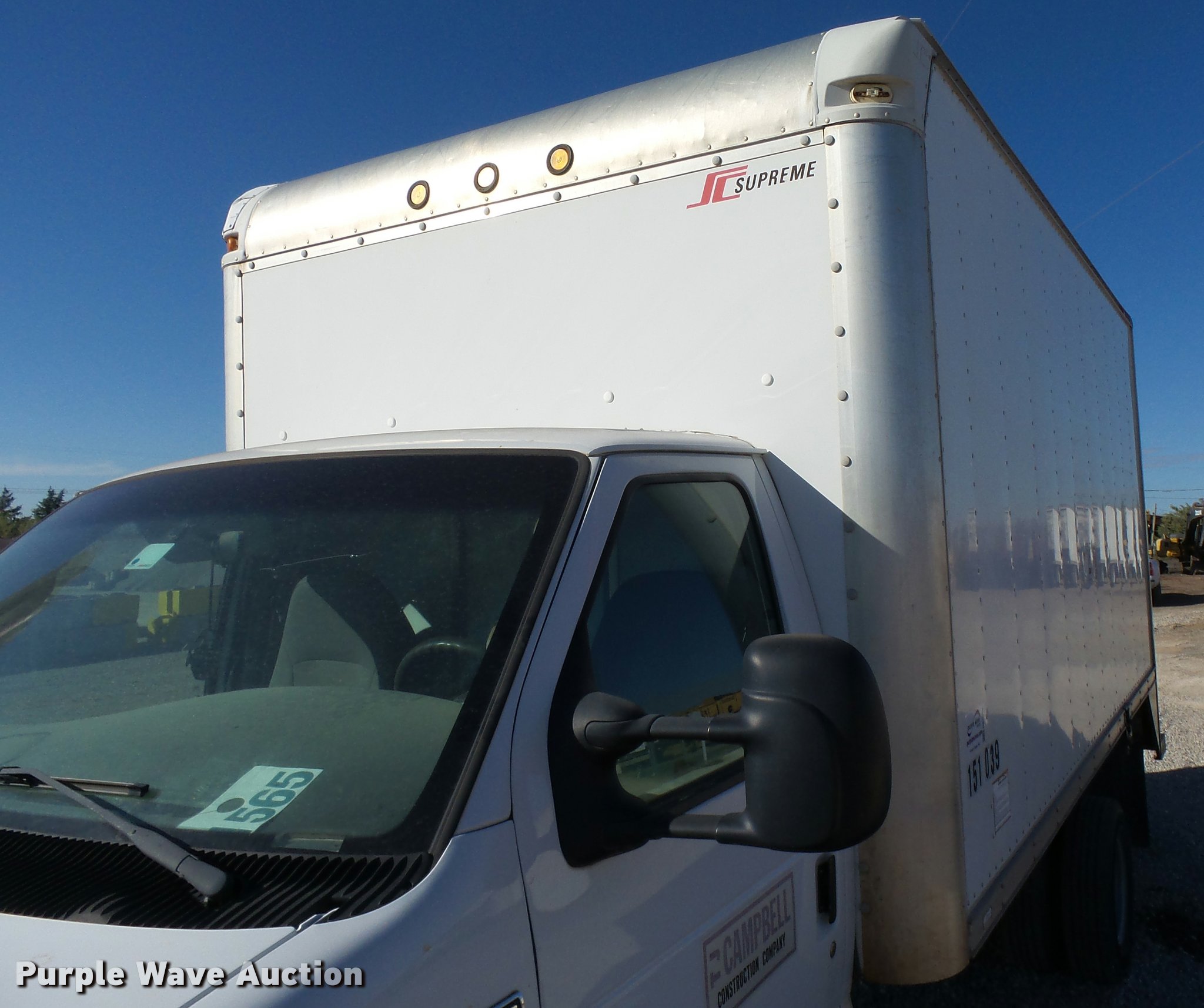Purple Wave is selling a used Box Truck in Oklahoma. This item is a 2007 Ford Econoline E450 box truck with the following: 100,052 miles on odometer, 6.8L V10 SOHC 20V gas engine, Automatic transmission, Single axle, AC and heat, Tilt, Cruise, AM/FM, Brake controller, Supreme box bed, 16'L x 96"W, Wood floor, Roll up rear door, Serial 70211145IA15084096, Spring suspension, Hydraulic brakes, 158" wheelbase, LT225/75R16 tires, GVWR 14,050 lbs, Check engine light on, Unit# 151.039