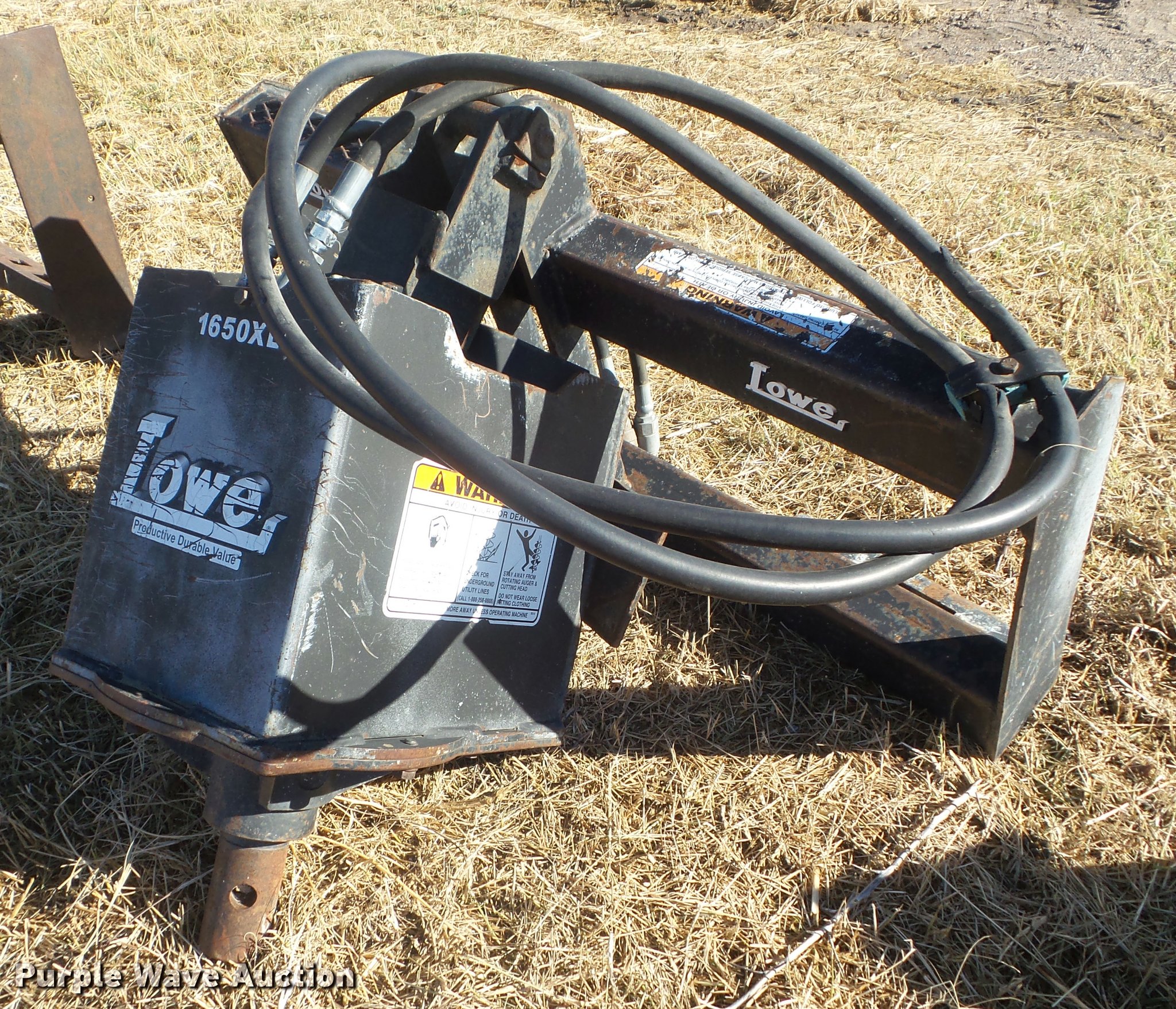 Purple Wave is selling a used Skid Steer Attach. in Kansas. This item is a Lowe 1650XL skid steer auger with the following: 2.5" round coupler, Hydraulic driven