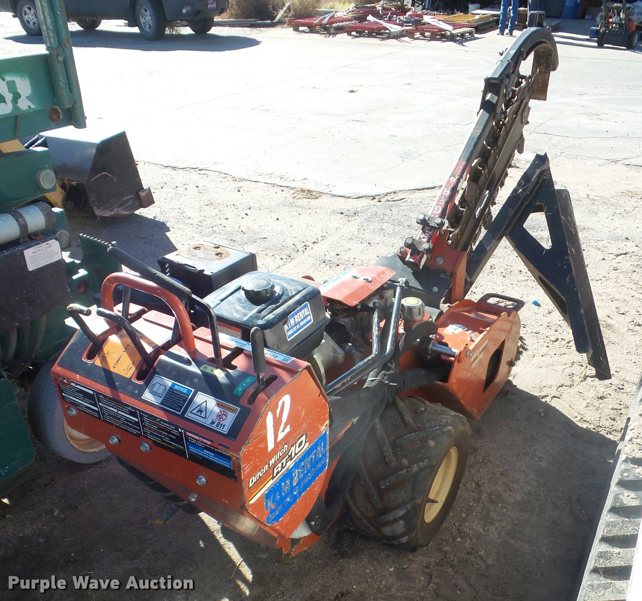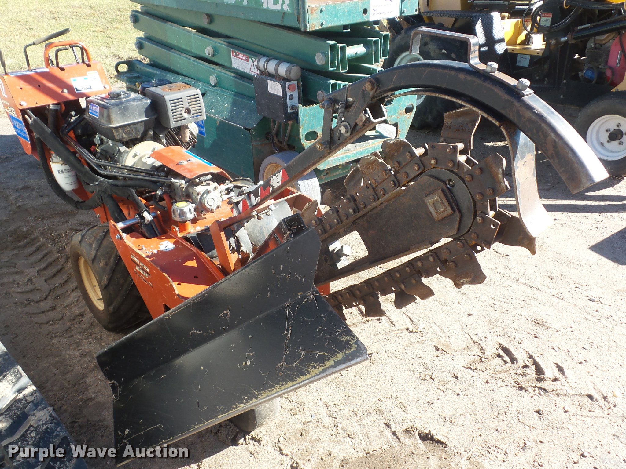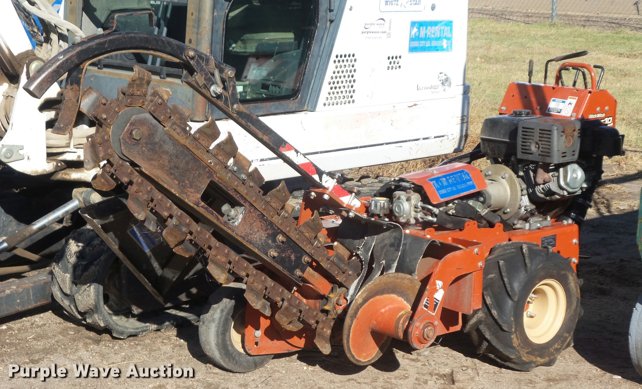 Purple Wave is selling a used Trencher or Rock Saw in Kansas. This item is a 2009 Ditch Witch RT10 trencher with the following: 511 hours on meter, Honda gas engine, 13 HP, Hydrostatic transmission, 30" maximum digging depth, 4"W cutting capacity, Manual crumber, 32"W back fill blade, 18 x 9.50-8 tires, Serial CMWRT10XC90000013