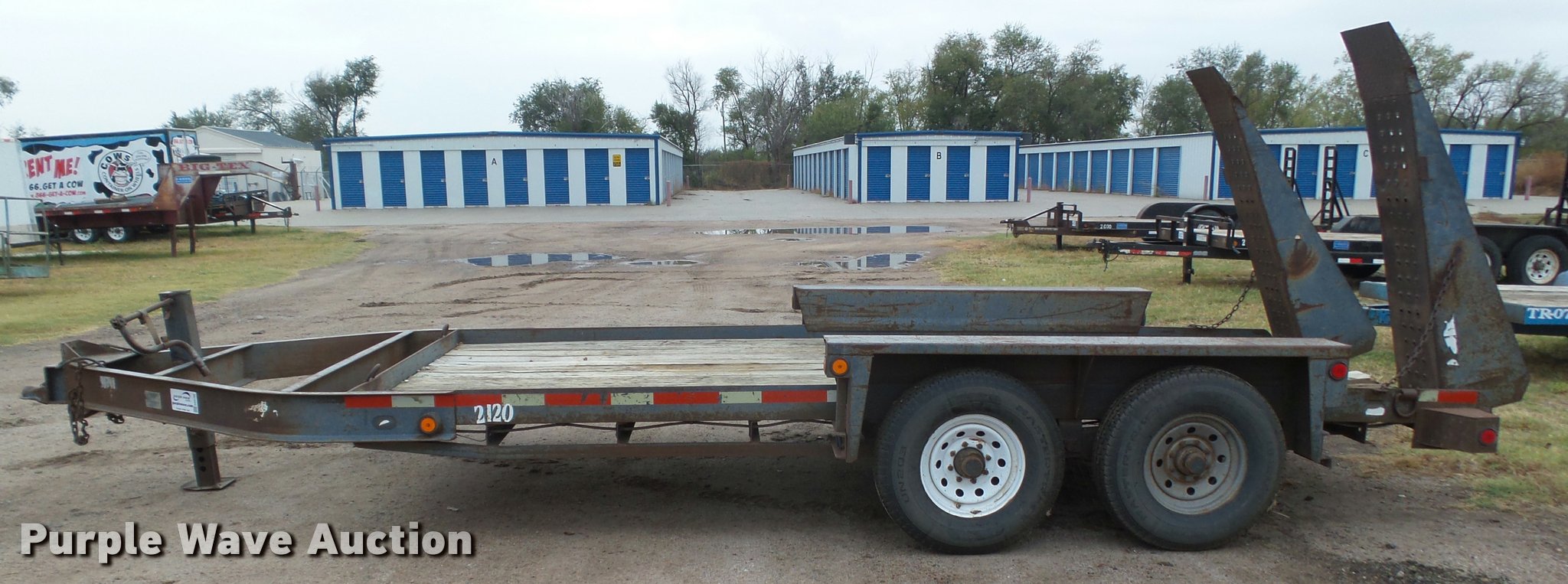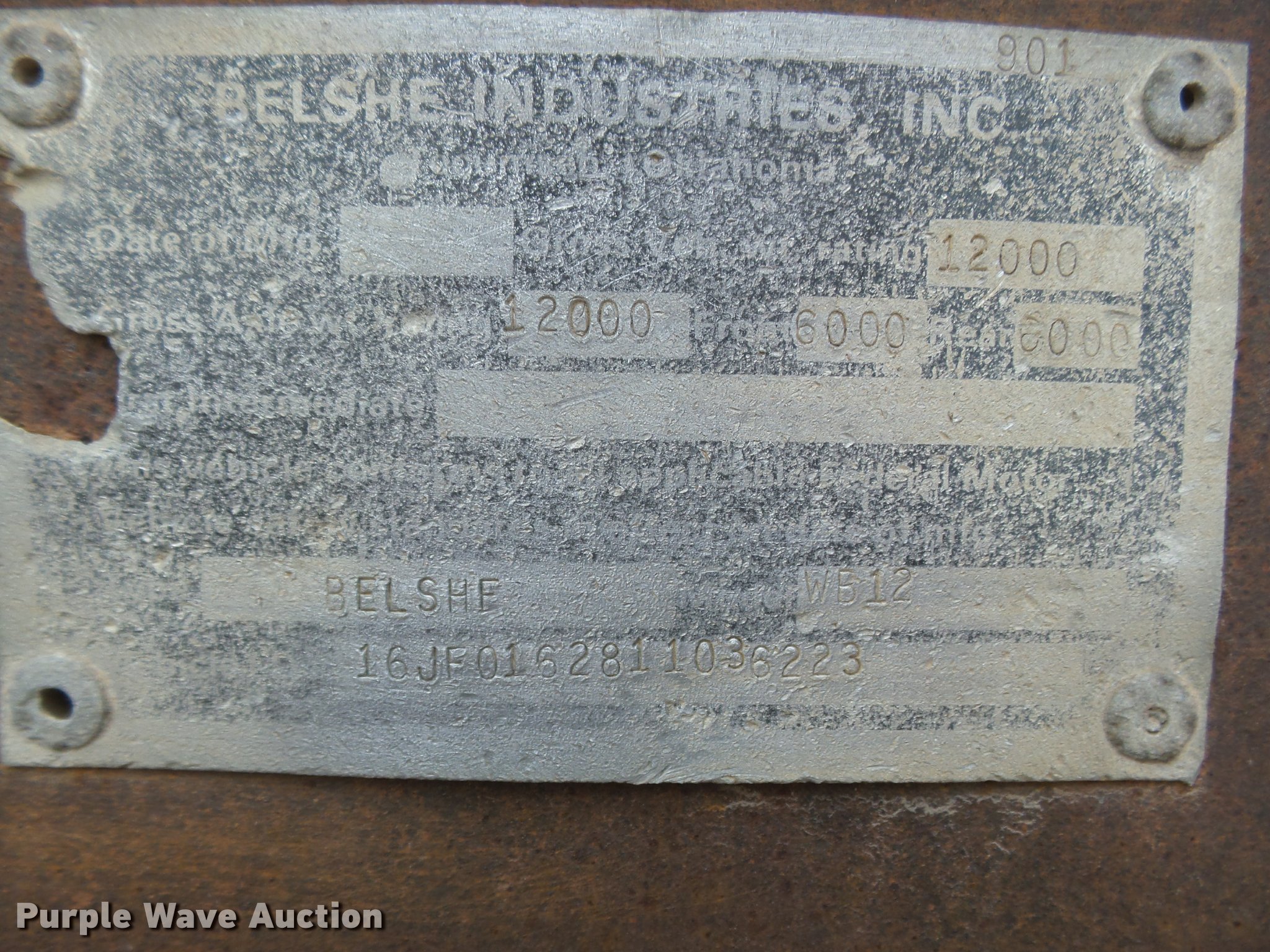 Purple Wave is selling a used Car or Utility Trailer in Kansas. This item is a 2001 Belshe WB12 utility trailer with the following: 22' overall length, 16'L x 81"W wood deck, 6'L ramps, D-ring tie downs, Single leg landing gear, Bumper pull, Tandem axle, Spring suspension, Steel wheels, ST235/85R16 tires, GVWR 12,000 lbs, GAWR 6,000 lbs, Unit# 2120