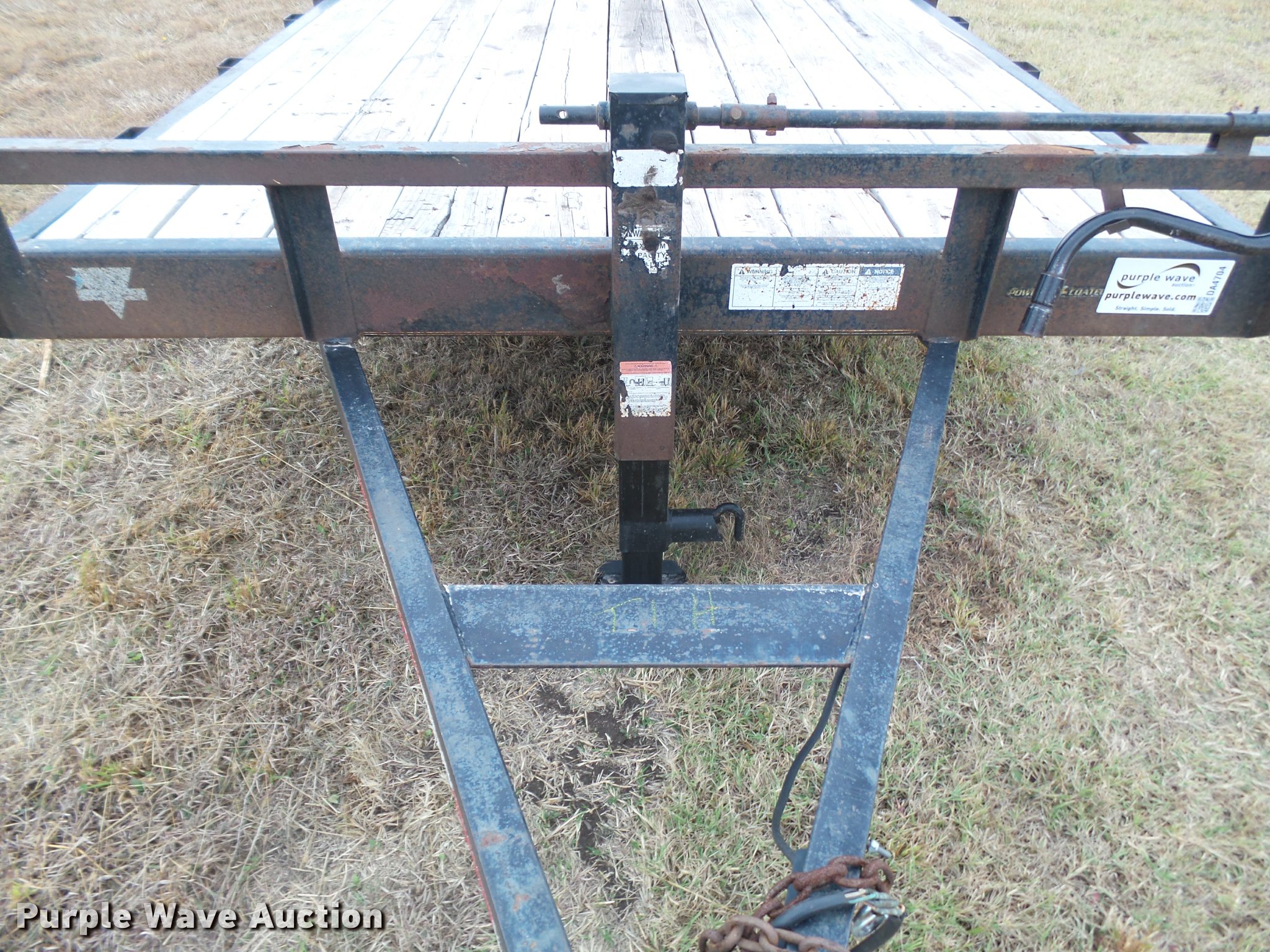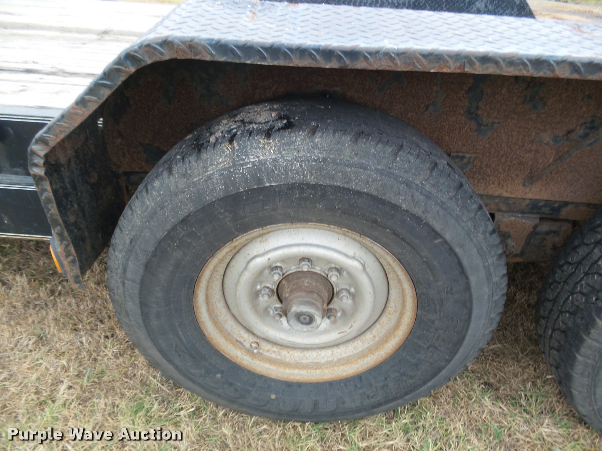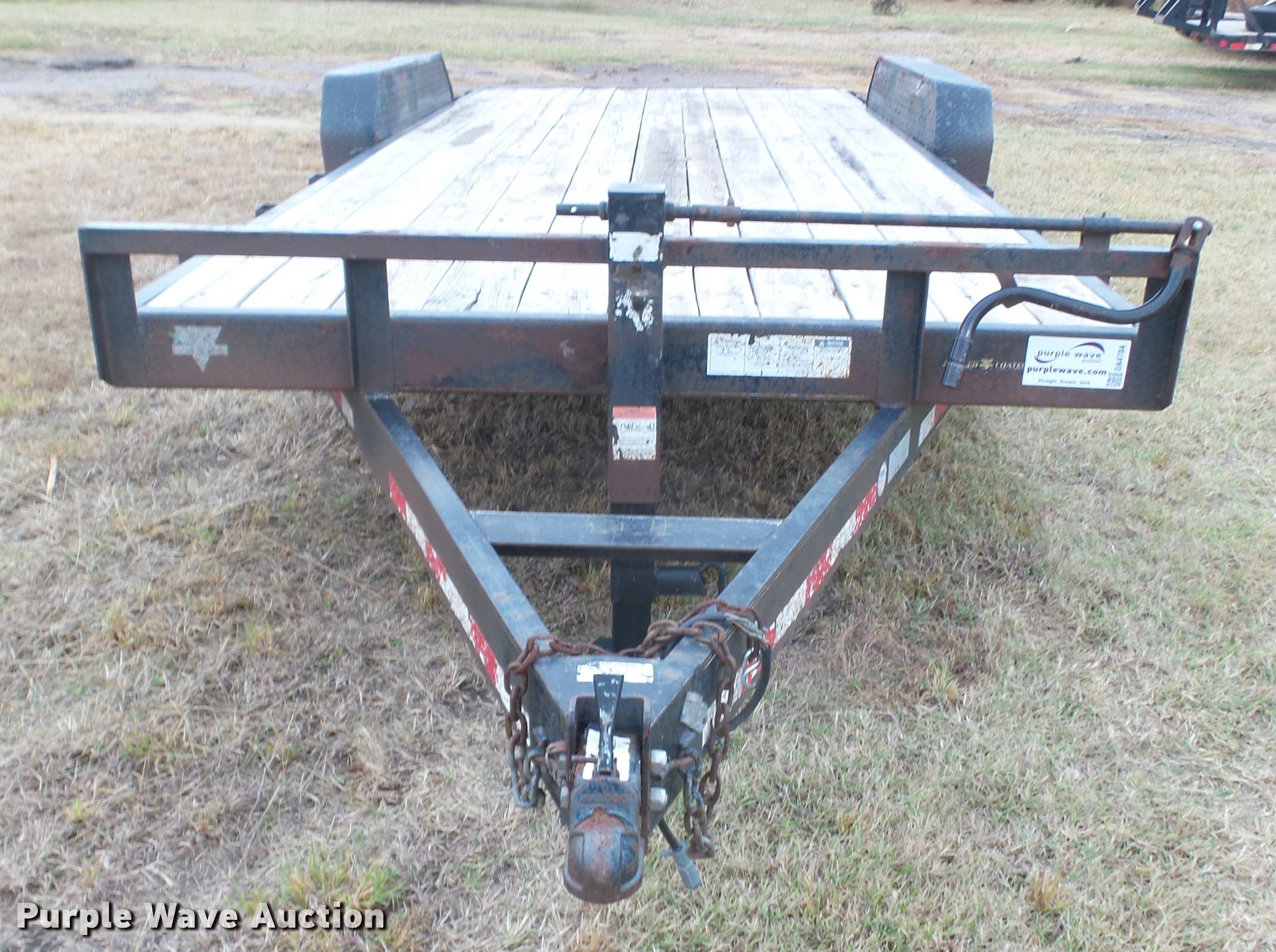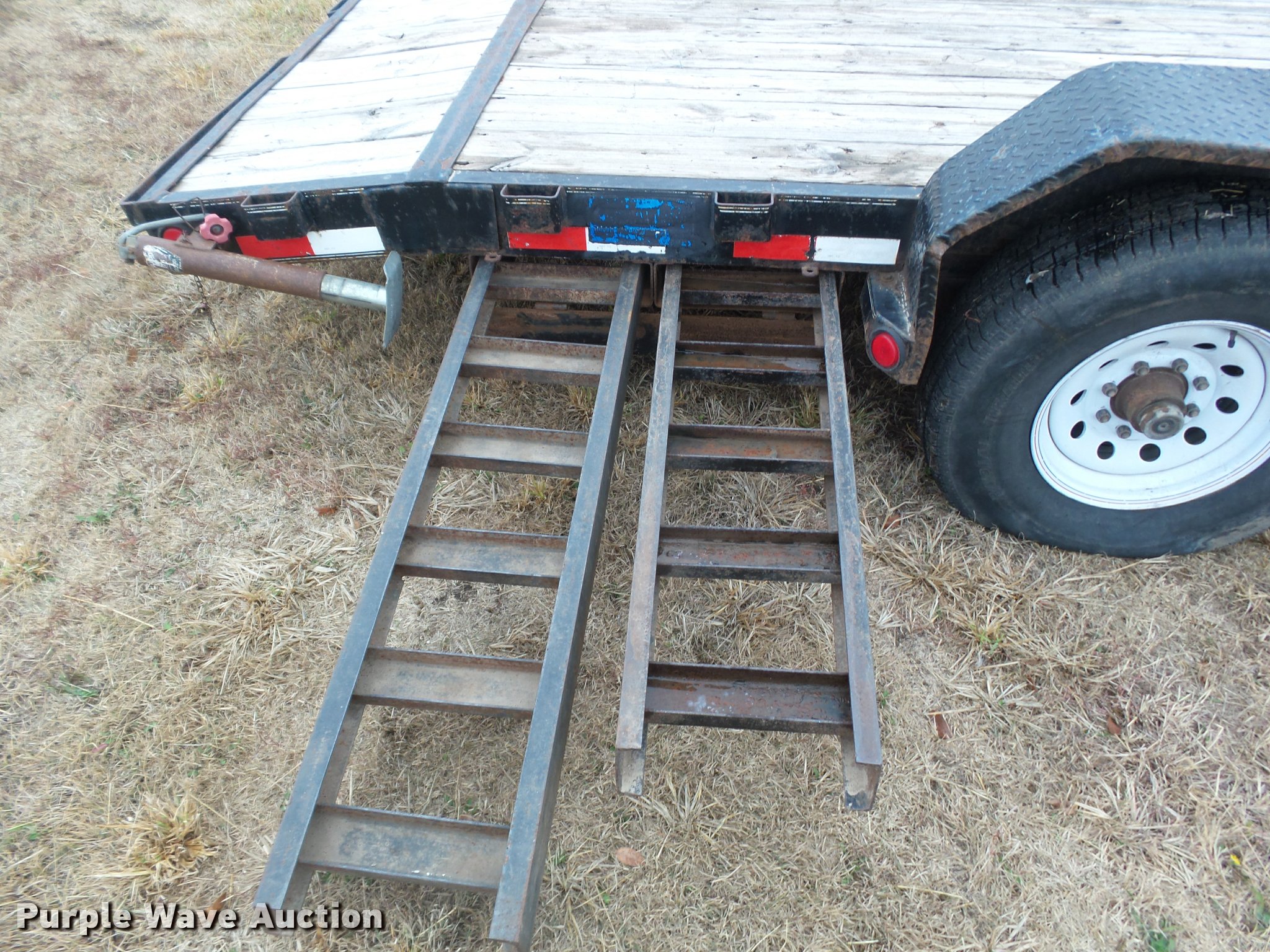 Purple Wave is selling a used Car or Utility Trailer in Kansas. This item is a 2008 PJ utility trailer with the following: 25' overall length, 20'L x 83"W wood deck, 2'L dovetail, 6'L ramps, Stake side pockets, Single leg landing gear, 2 5/16" ball hitch, Tandem axle, Steel wheels, LT235/85R16 tires, GVWR 14,000 lbs, Unit# 2740