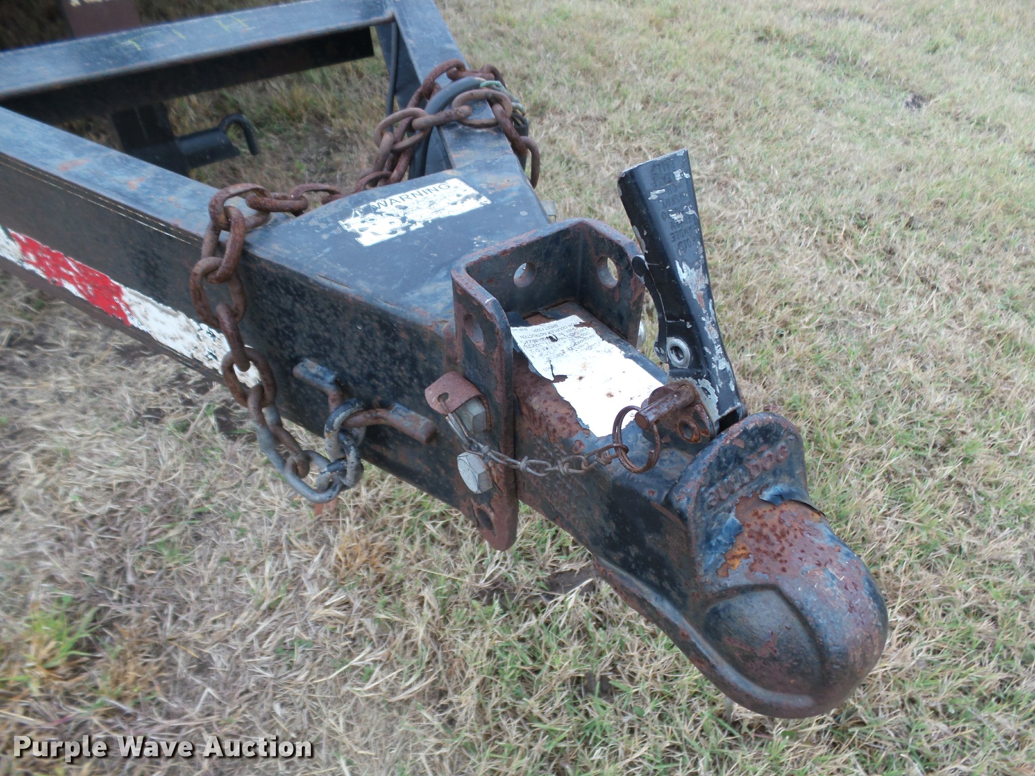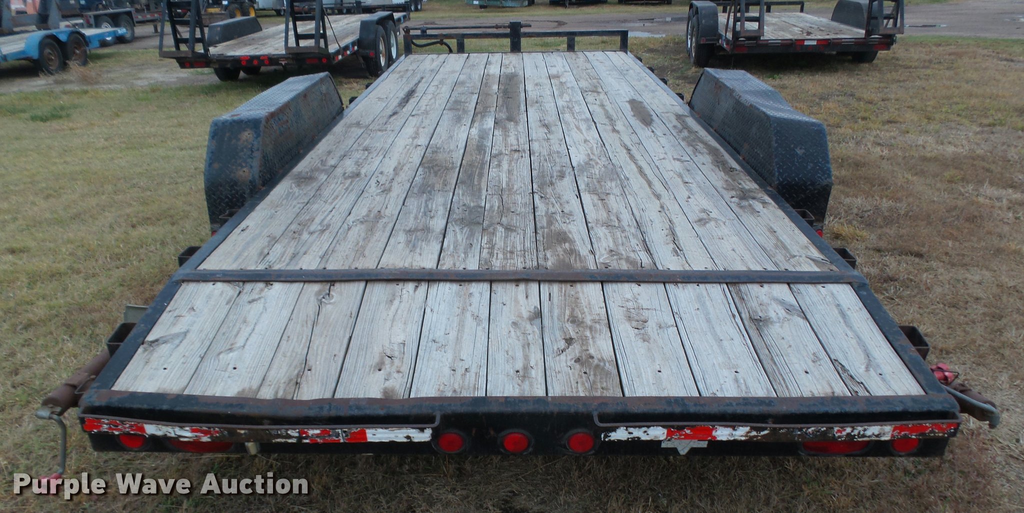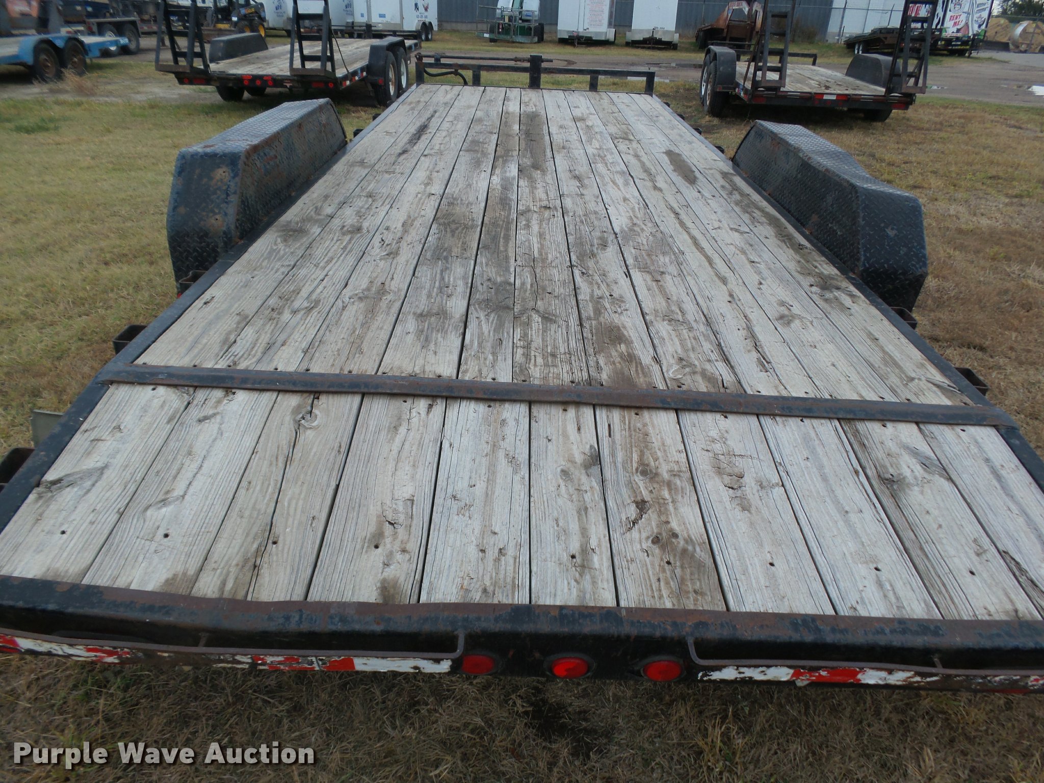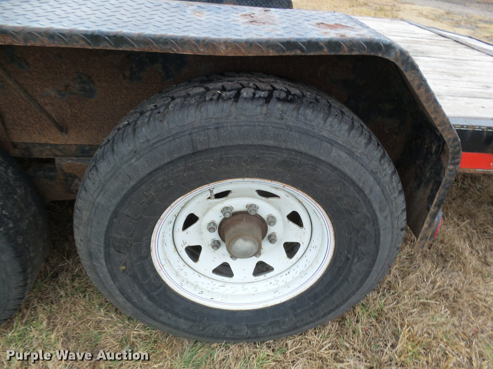 Purple Wave is selling a used Car or Utility Trailer in Kansas. This item is a 2008 PJ utility trailer with the following: 25' overall length, 20'L x 83"W wood deck, 2'L dovetail, 6'L ramps, Stake side pockets, Single leg landing gear, 2 5/16" ball hitch, Tandem axle, Steel wheels, LT235/85R16 tires, GVWR 14,000 lbs, Unit# 2740