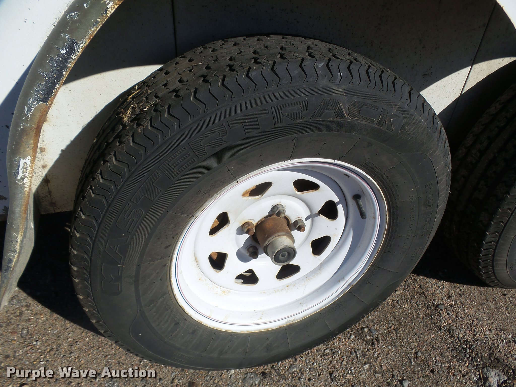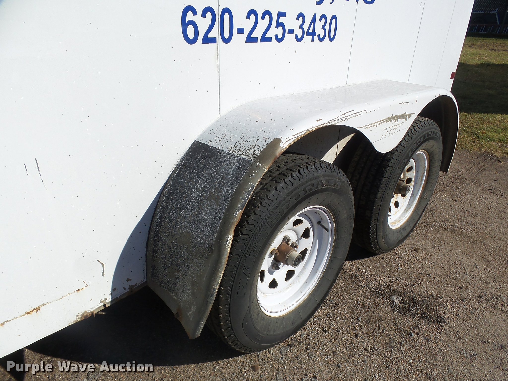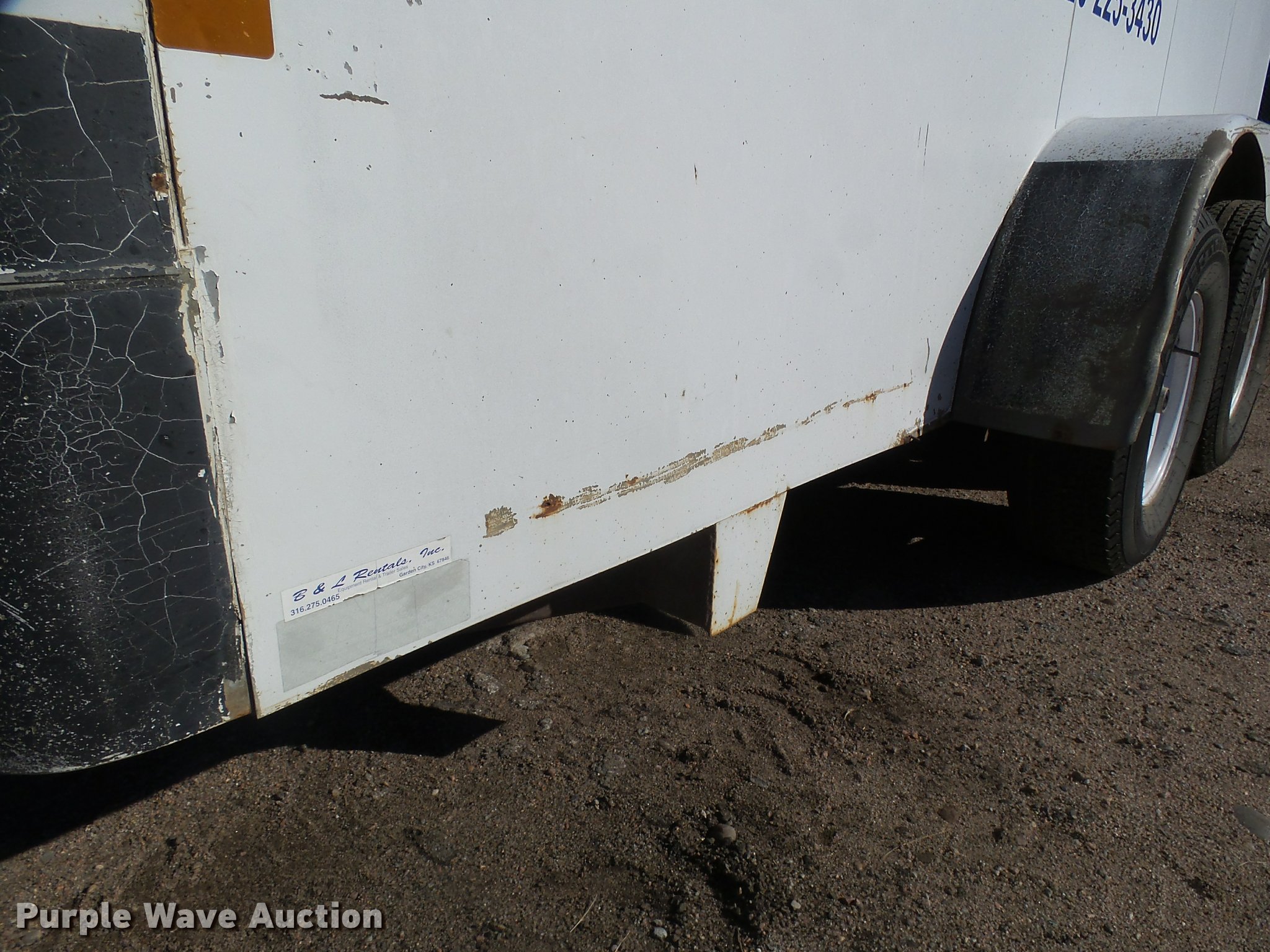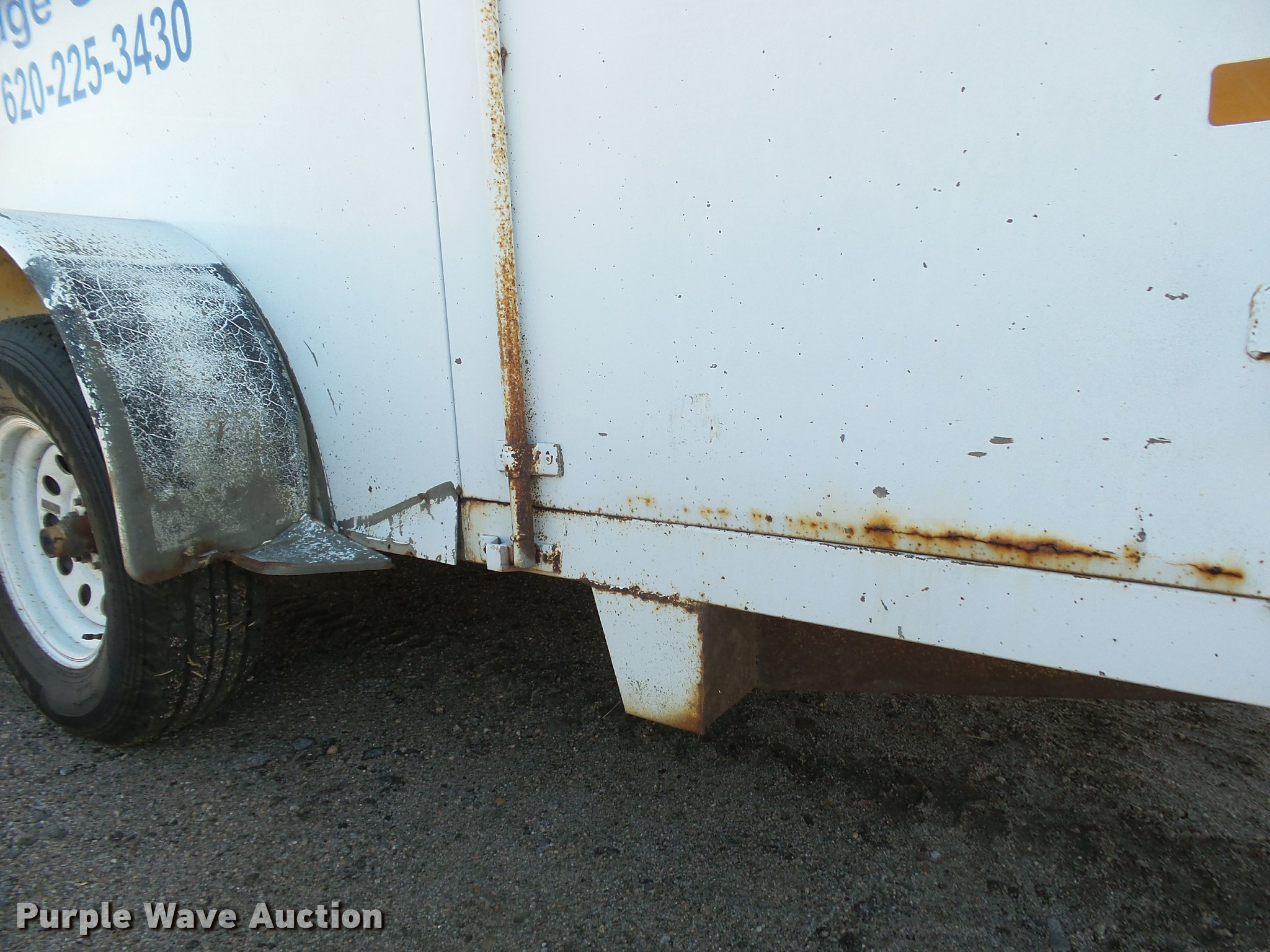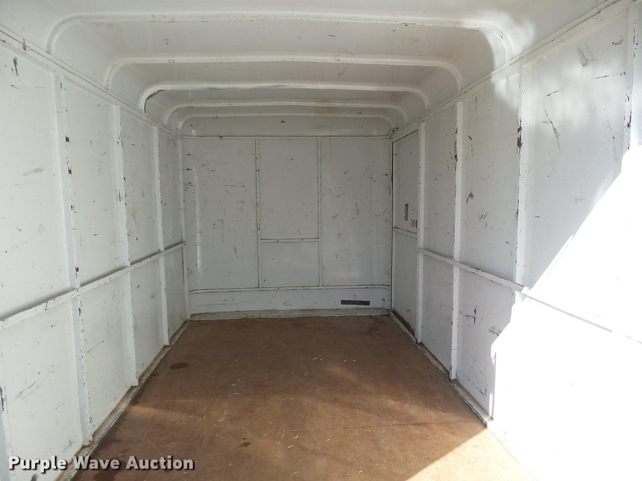 Purple Wave is selling a used Enclosed Cargo Trailer in Kansas. This item is a 2002 Titan enclosed cargo trailer with the following: 16' overall length, 12'L x 80"W, Wood floor, Swing-out rear doors, Side entry door, Single leg landing gear, 2" ball hitch, Tandem axle, Spring suspension, Steel wheels, ST225/75R15 tires, Unit# 2400
