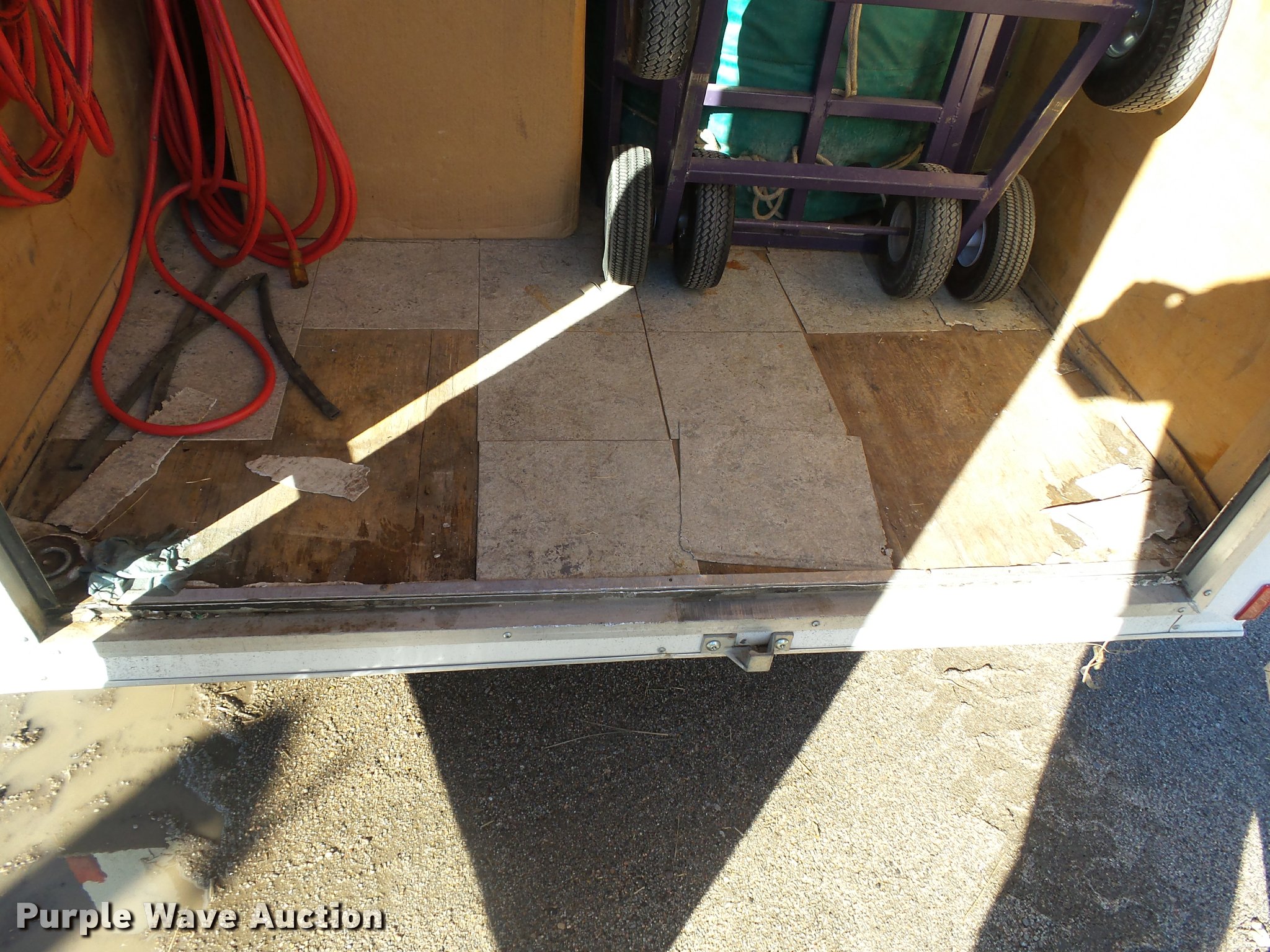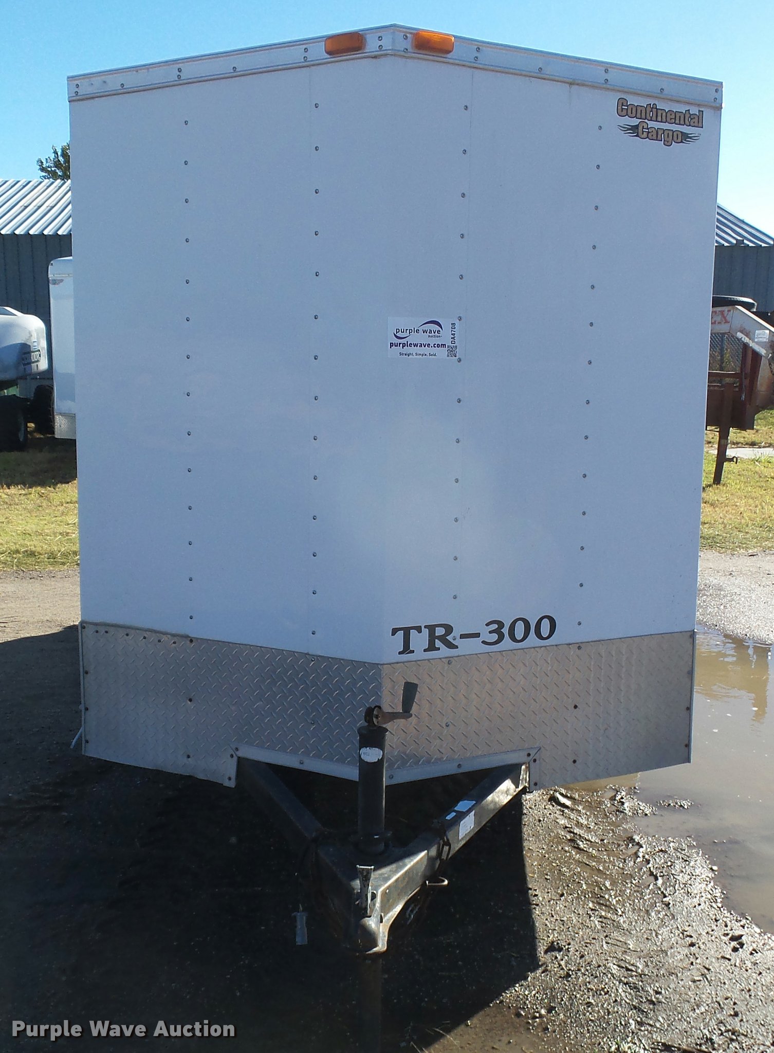 Purple Wave is selling a used Enclosed Cargo Trailer in Kansas. This item is a 2006 Continental enclosed cargo trailer with the following: 16' overall length, 14'L x 72"W, Wood floor, Swing-out rear doors, Side entry door, Interior lighting, Single leg landing gear, 2" ball hitch, Single axle, Spring suspension, Steel wheels, ST205/75D14 tires, Contents are not included, Unit# TR-300