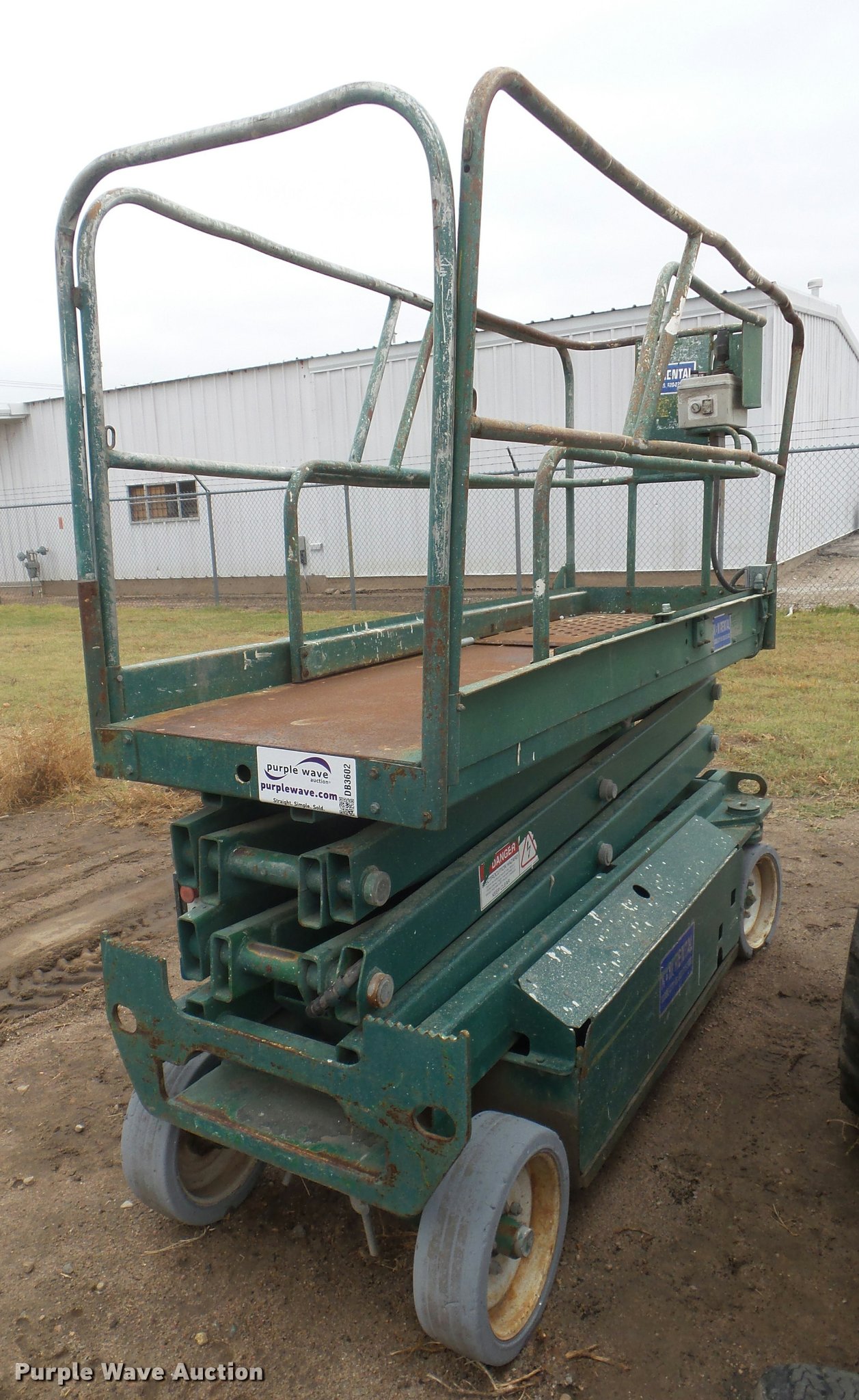 Condor V2033 scissor lift. Unknown hours on meter, 24V operation, 750 lbs maximum lift capacity, 20' maximum lift height, 92"L x 30"W platform Manual platform extensions, Platform and ground controls, AC power outlet, 4 x 8 non-marking tires, Possible electrical issues, Serial X31597156. K & M Rental. 1203 W. McArtor Road. Dodge City, KS 67801
