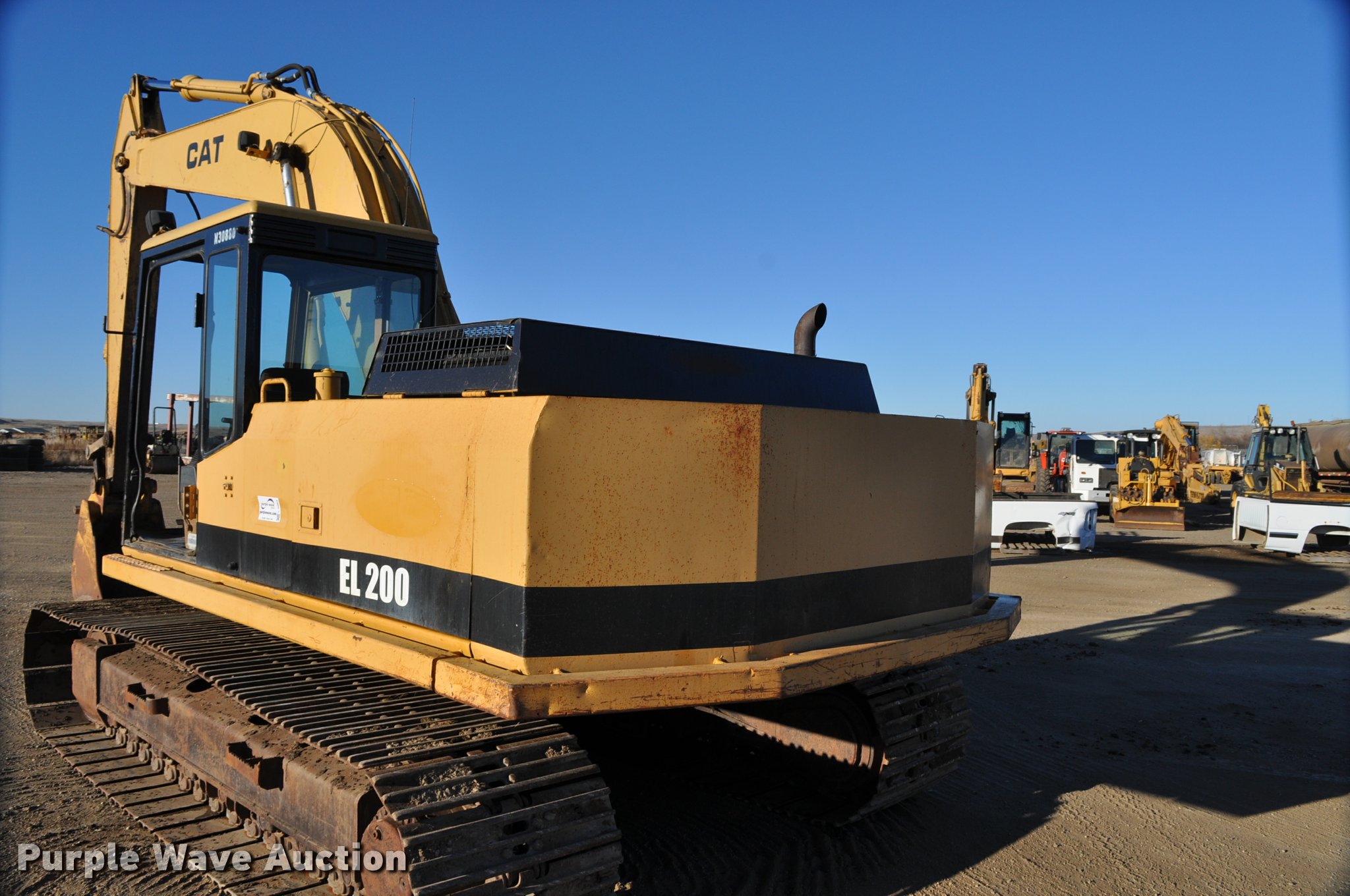 Purple Wave is selling a used Hydraulic Excavator in South Dakota. This item is a 1990 Caterpillar EL200B excavator with the following: Caterpillar 3116 6.6L turbo diesel engine, 118 HP, Two speed hydrostatic transmission, EROPS, Suspension seat, Front work lights, Standard boom, 9'9" stick length, 30"W bucket, (4) bolt-on teeth, 31.5"W steel triple grouser track pads, Door and windows missing, Serial 7DF01031, Unit# 473