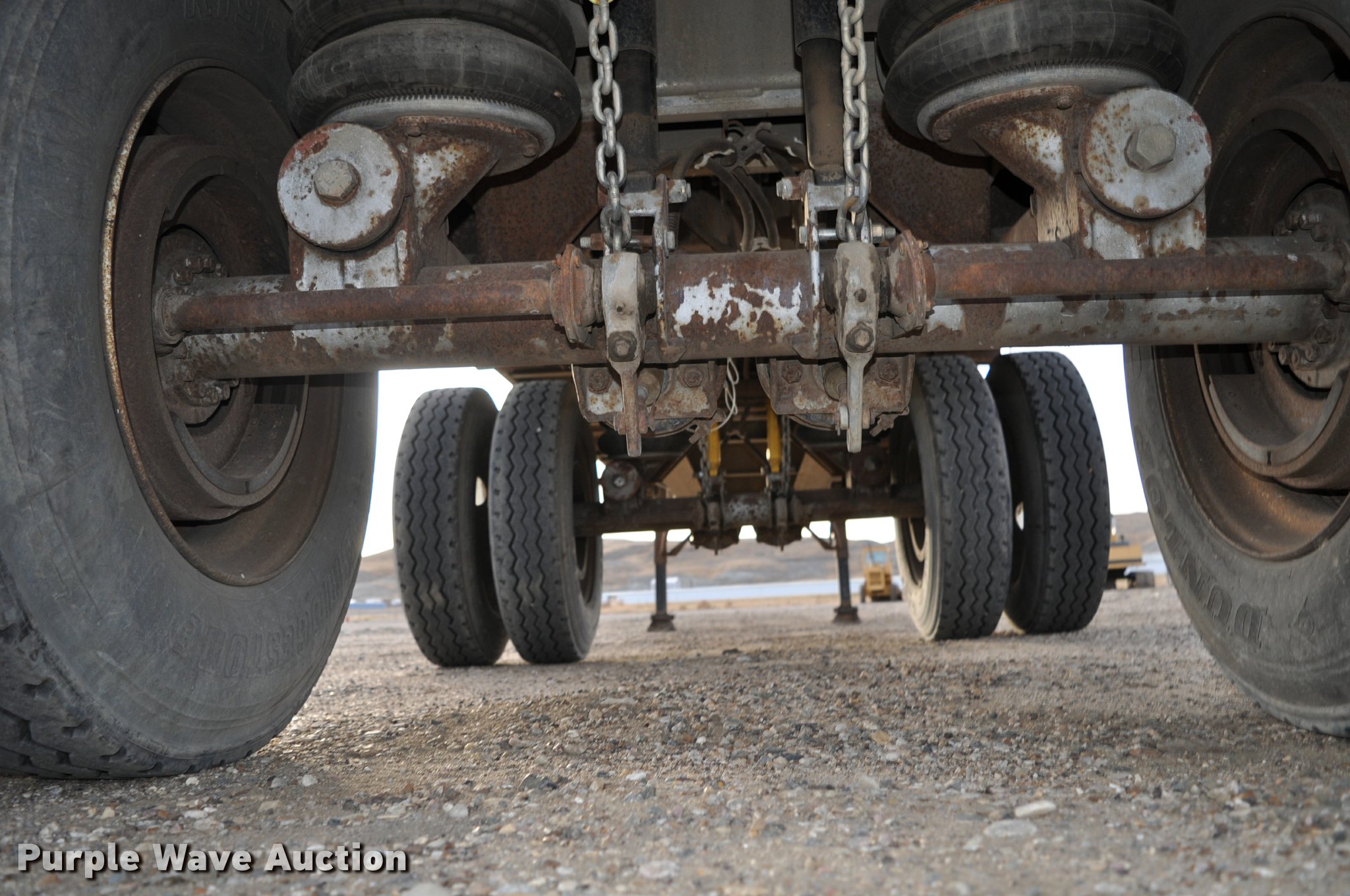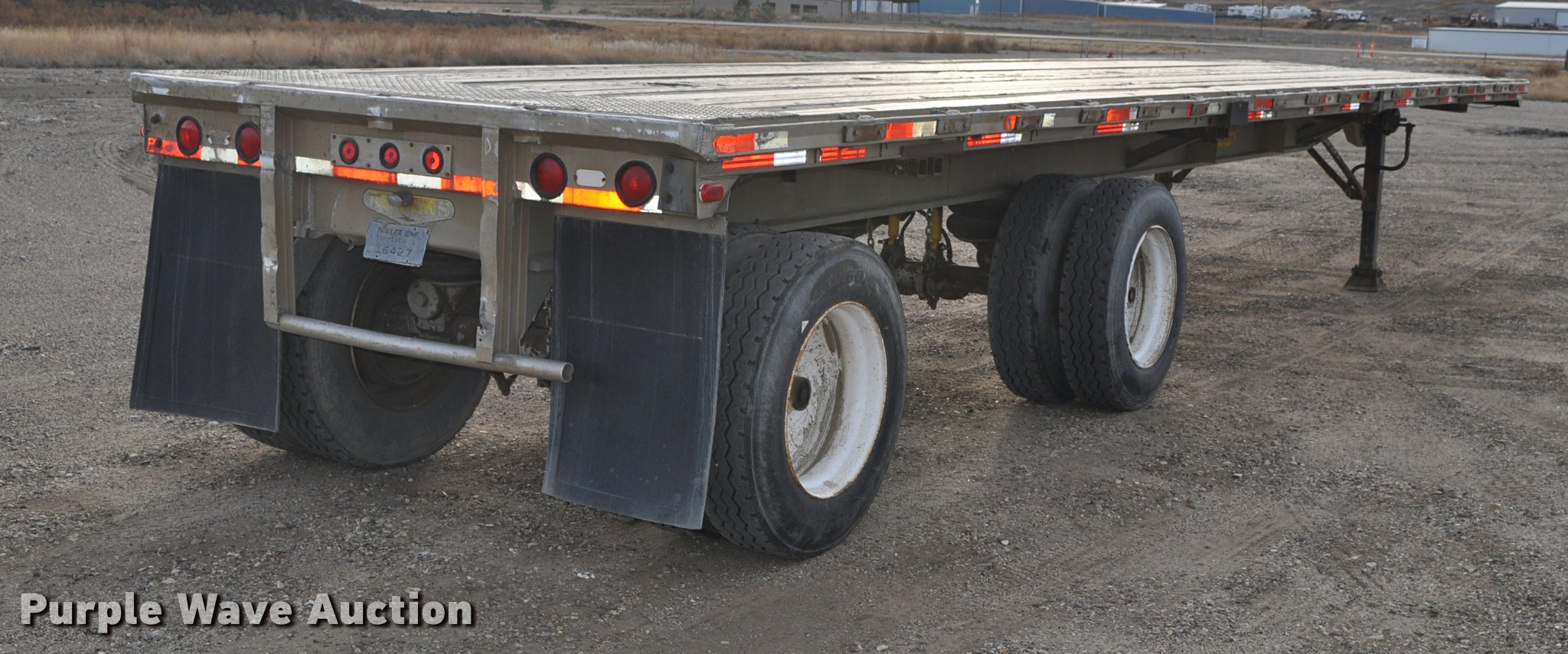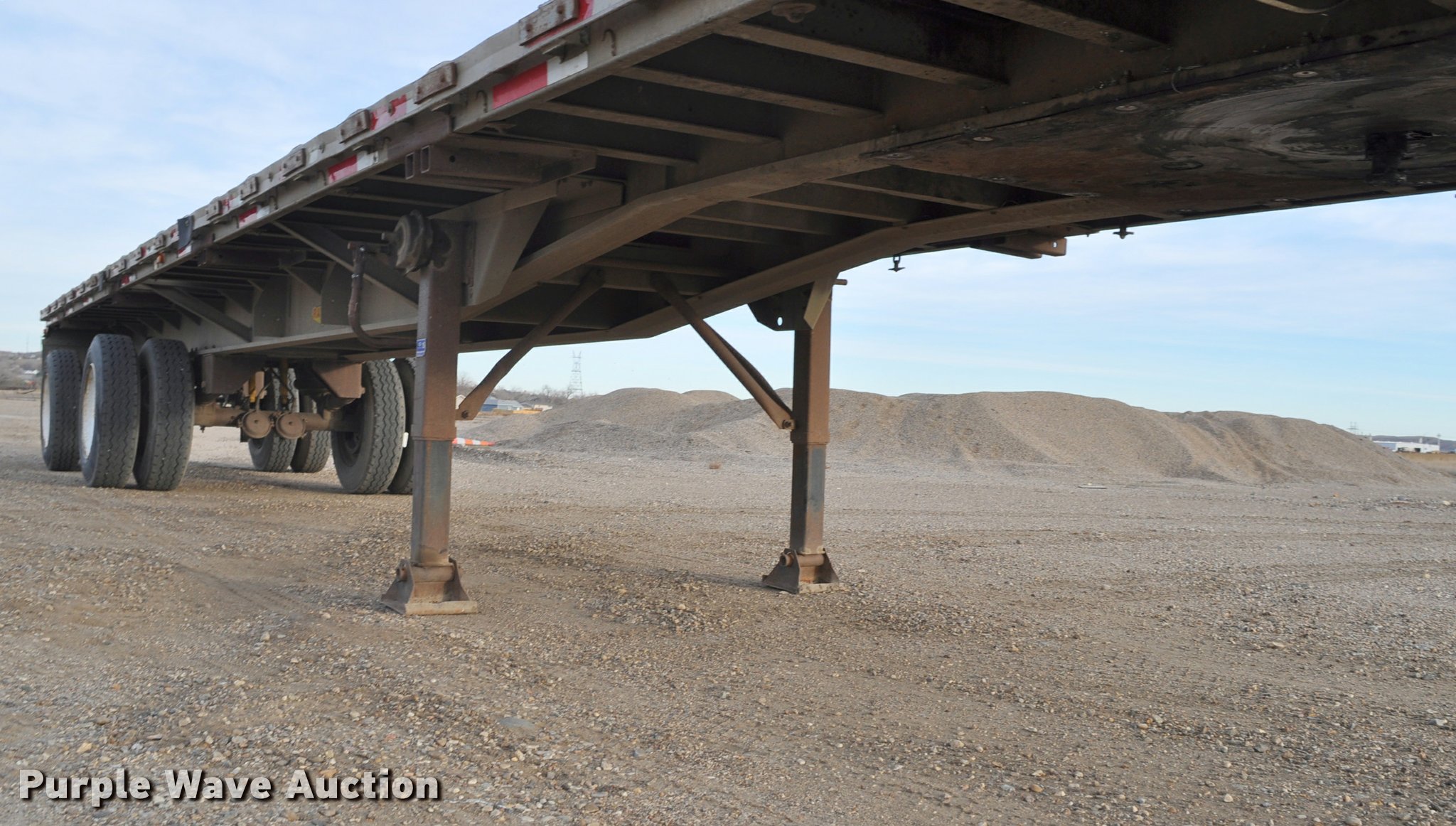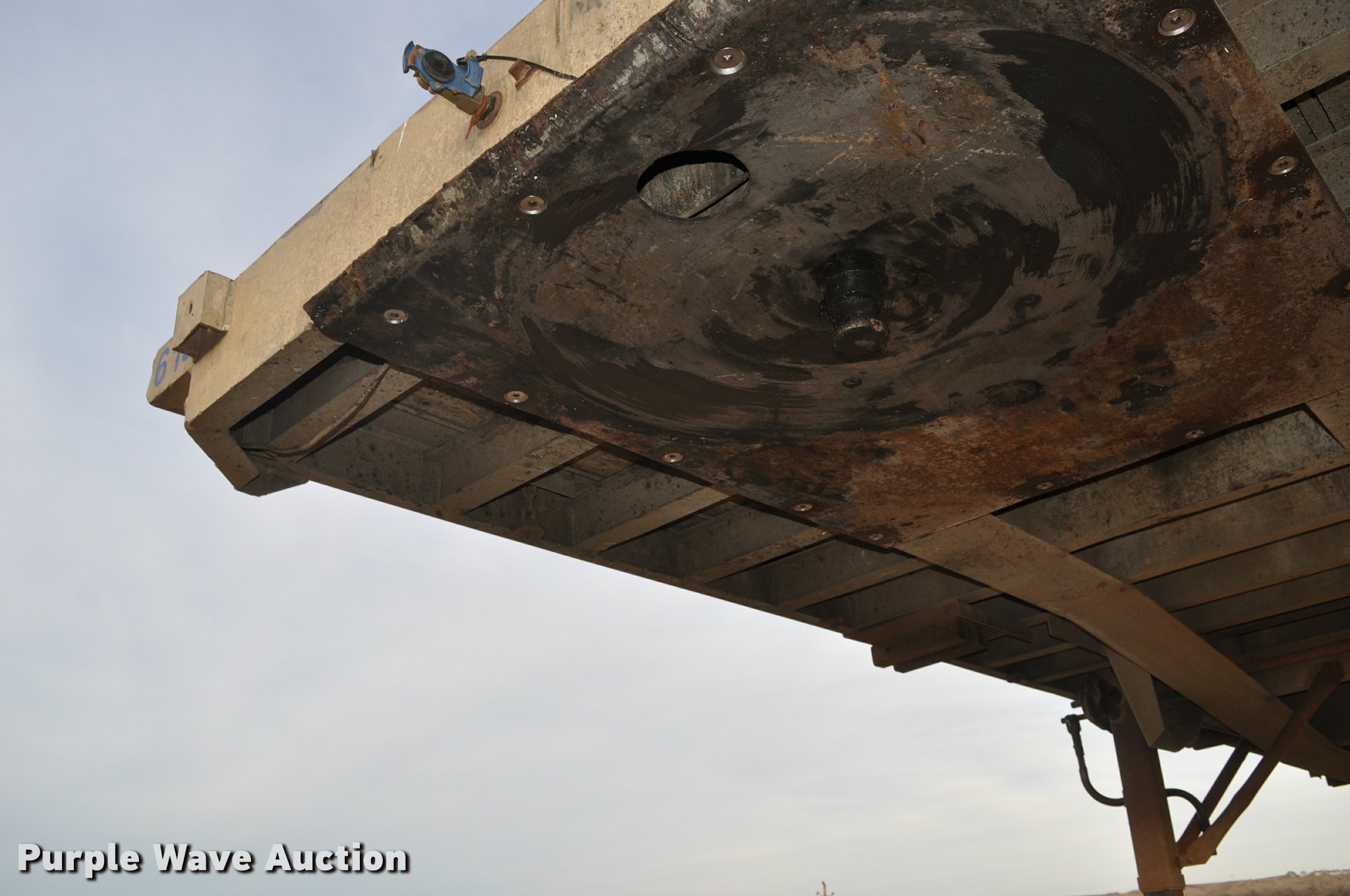 Purple Wave is selling a used Flat or Drop Deck Trailer in South Dakota. This item is a 1977 Raven 54028 flatbed trailer with the following: 40'L x 96"W wood deck, Stake side pockets, Dual leg two speed landing gear, Fifth wheel plate, Spread axle, Air suspension, Air brakes, 24.5 tires, Unit# 619