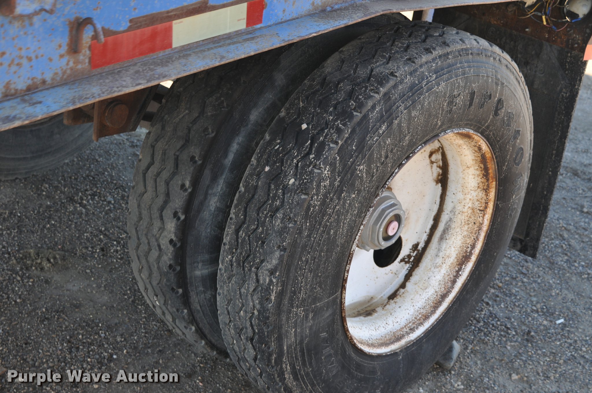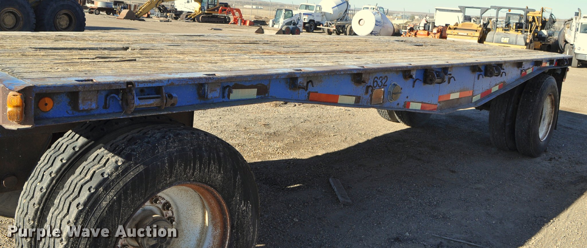 Purple Wave is selling a used Flat or Drop Deck Trailer in South Dakota. This item is a 1979 Freuhauf flatbed trailer with the following: 37' overall length, 24'L x 96"W wood deck, Stake side pockets, Strap ratchets, Dual leg two speed landing gear, Pintle hitch, Spring suspension, Air brakes, Steel wheels, 11R24.5 tires, Wood damage, Unit# 632