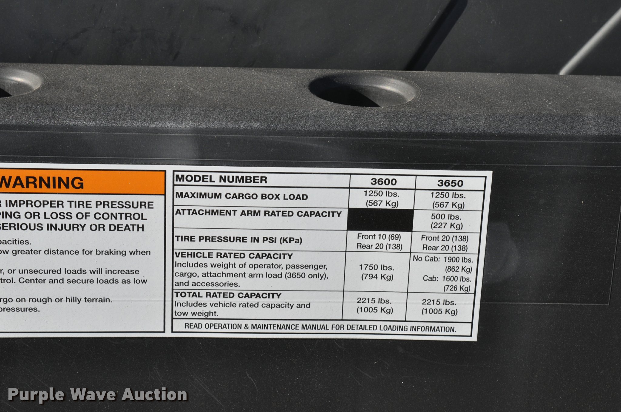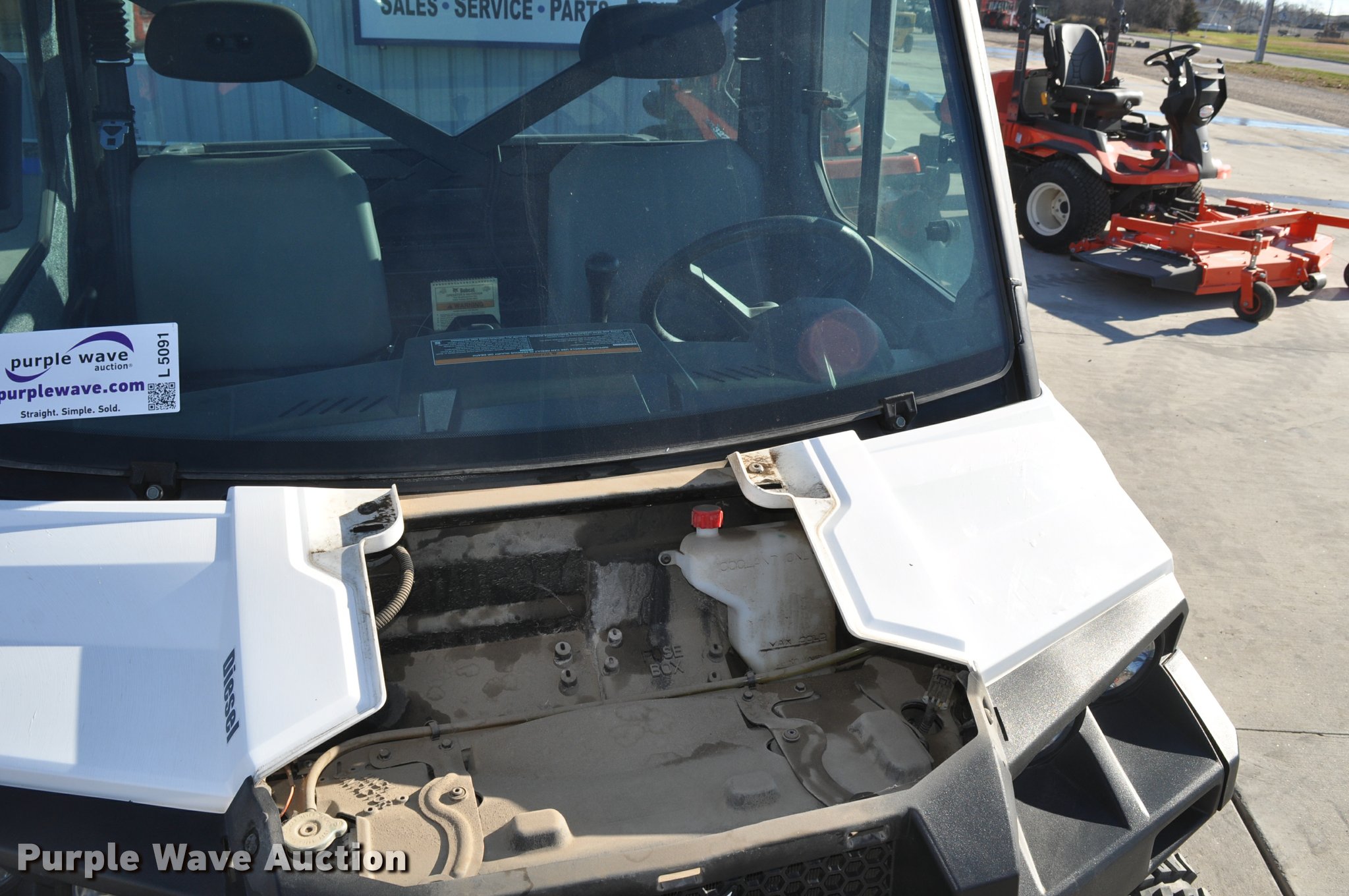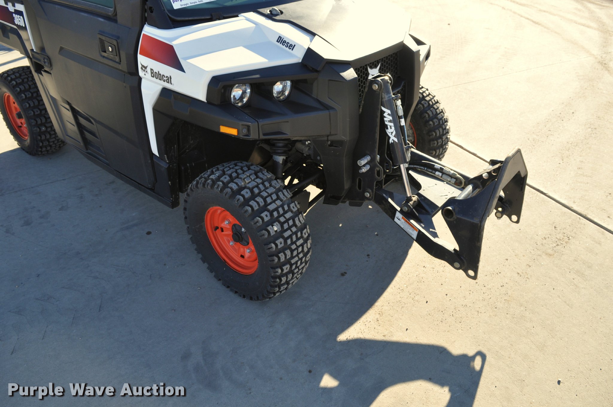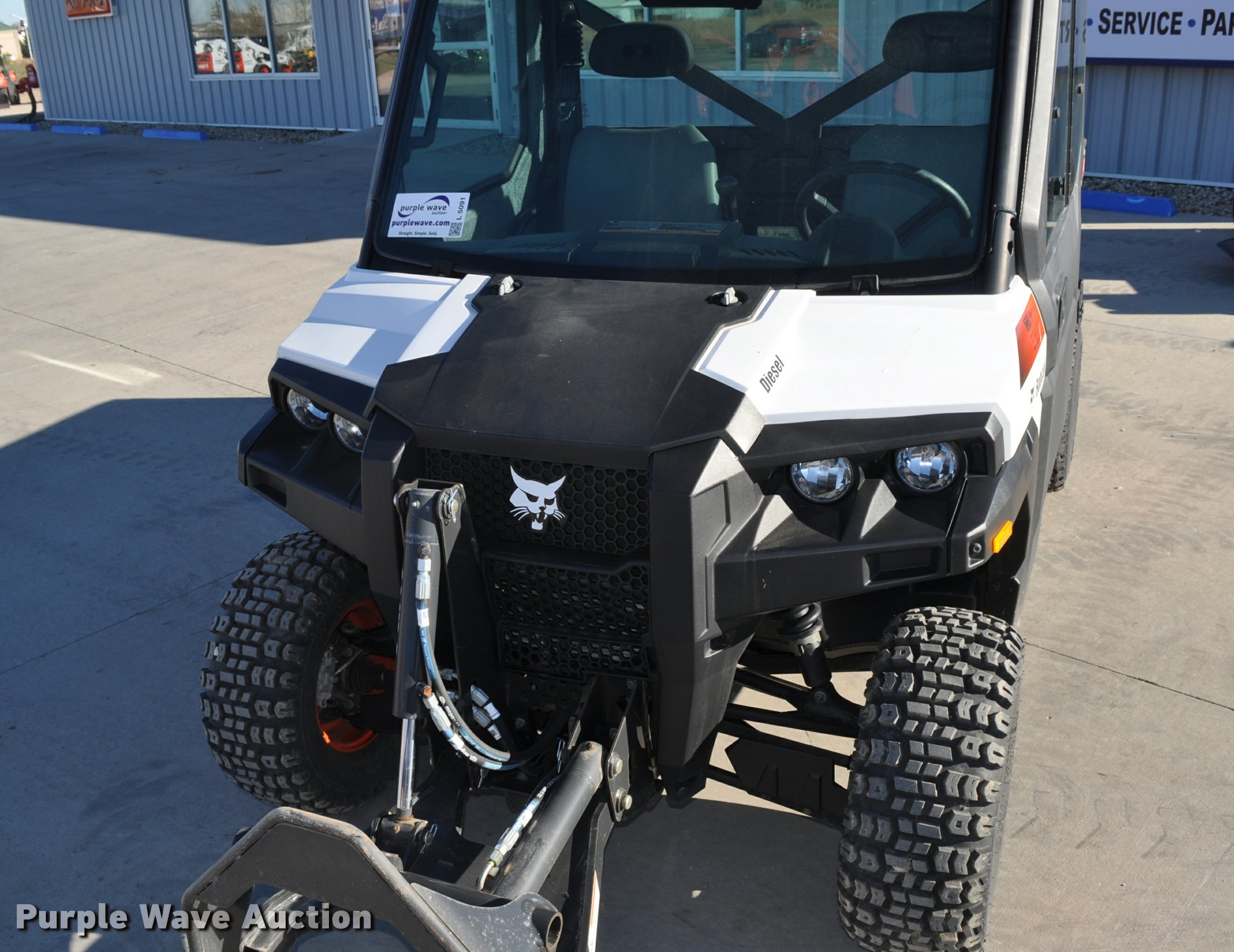 Purple Wave is selling a used Utility Vehicle in South Dakota. This item is a 2013 Bobcat 3650 utility vehicle with the following: 12 hours on meter, 21 miles on odometer, Yanmar 0.904L diesel engine, 25 HP, Two speed hydrostatic transmission, Four wheel drive, Enclosed cab, AC and heat, Wipers, Tool carrier, Auxiliary hydraulics, Electric over hydraulic dump bed, Receiver hitch, 25 x 10-12 tires, Serial 4XAAVW4A5D7011186, Unit# 000819
