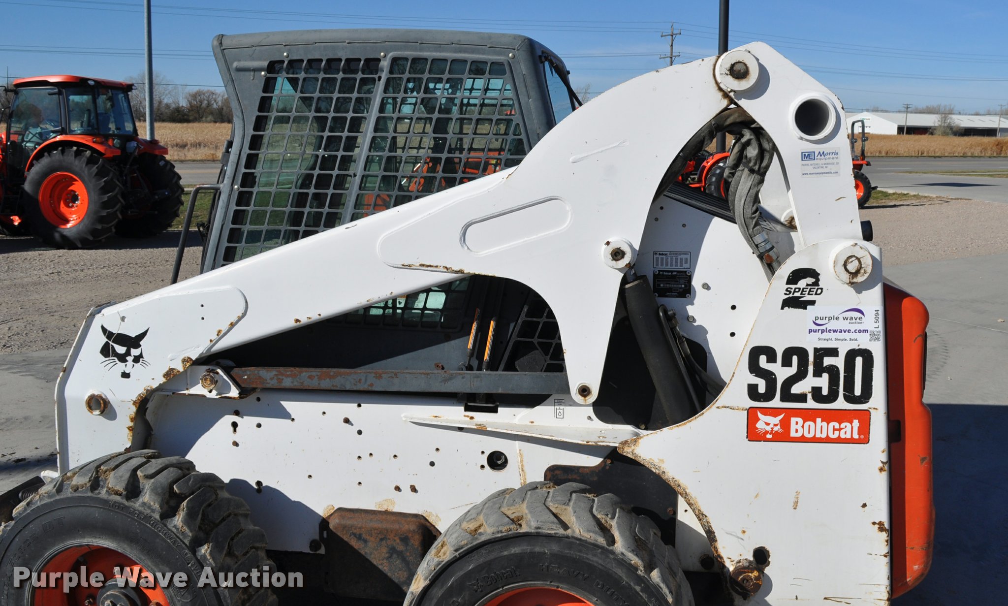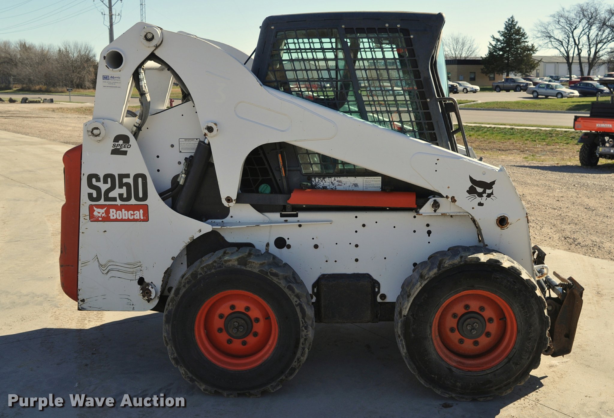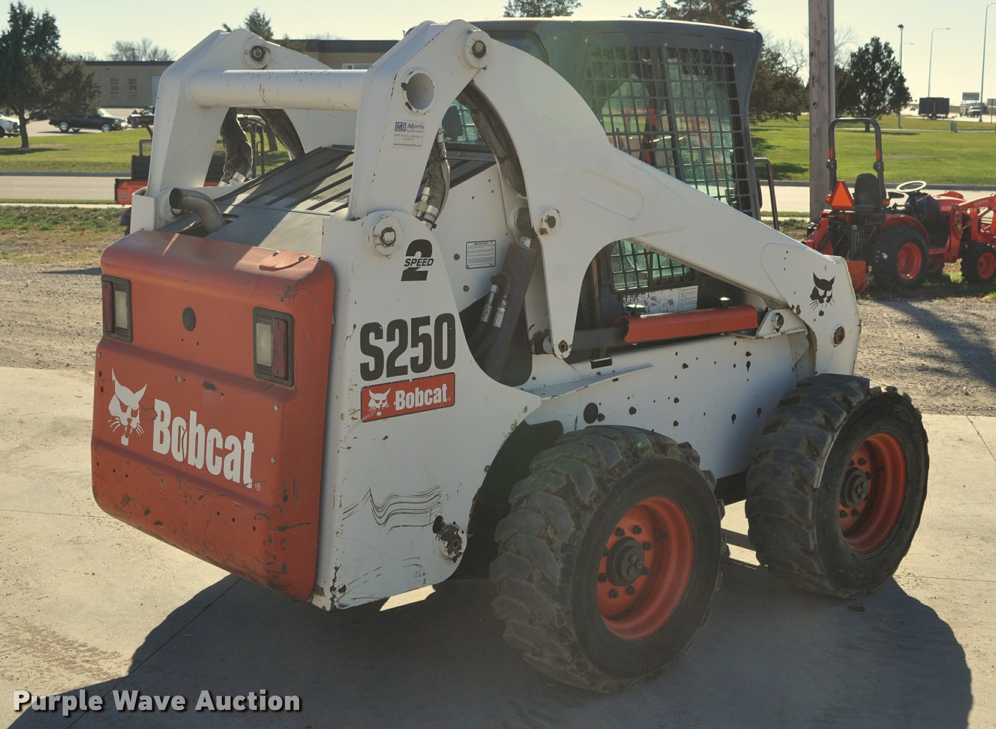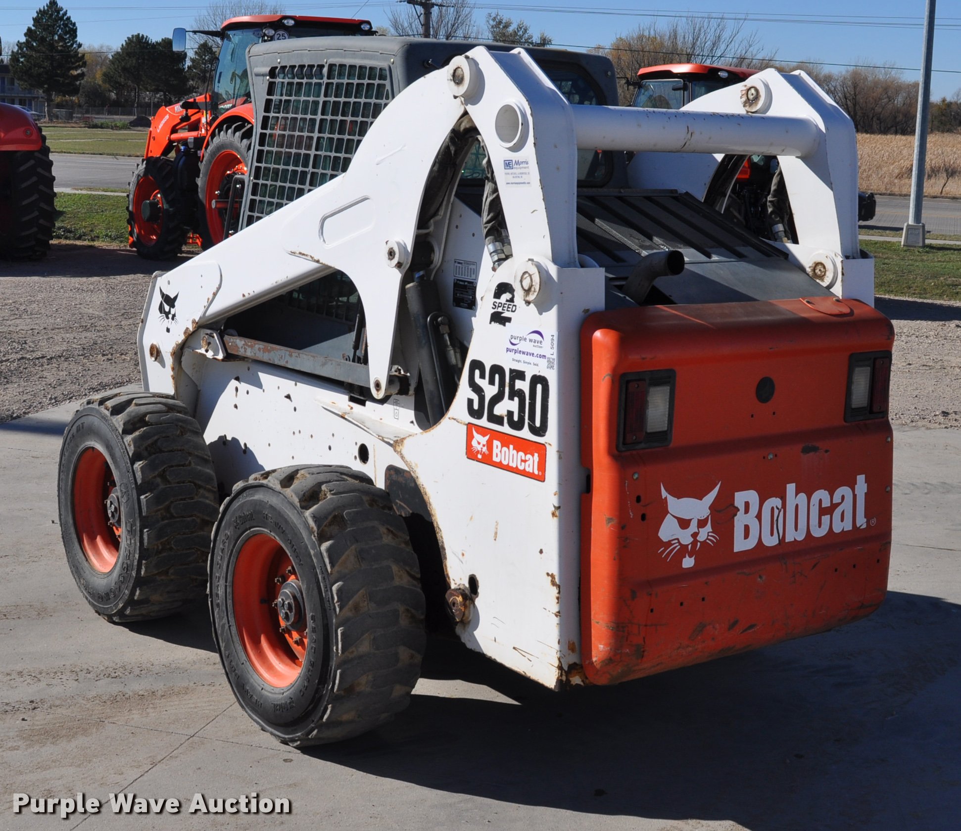Purple Wave is selling a used Skid Steer Loader in South Dakota. This item is a 2006 Bobcat S250 skid steer with the following: 4,031 hours on meter, Kubota four cylinder diesel engine, Two speed hydrostatic transmission, Enclosed cab, Heat, AM/FM, Hand and foot controls, Spring suspension seat, Wipers, Front and rear work lights, Power Bobtach, Auxiliary hydraulics, 12-16.5 tires, Serial 530915263, Unit# 004750