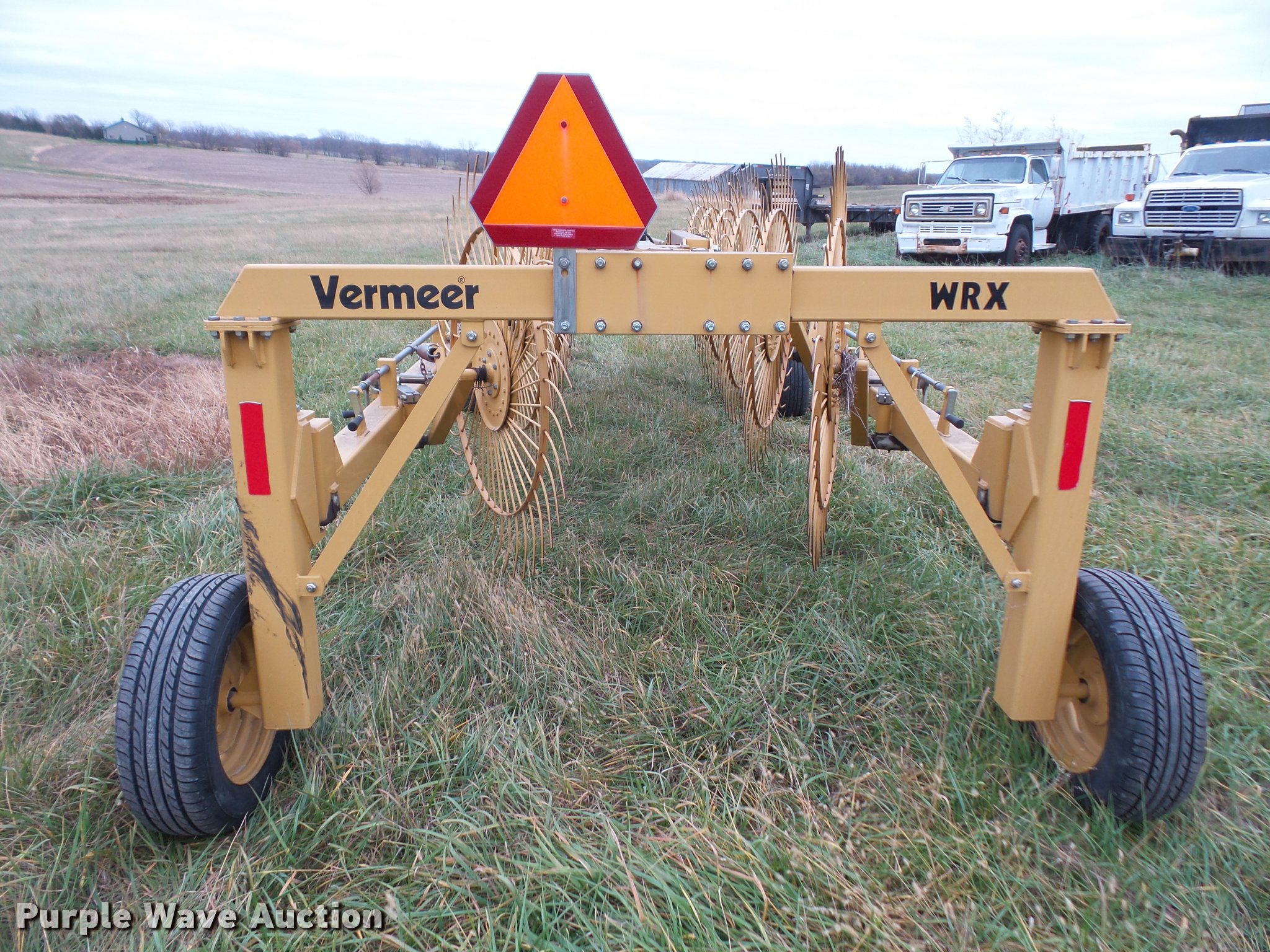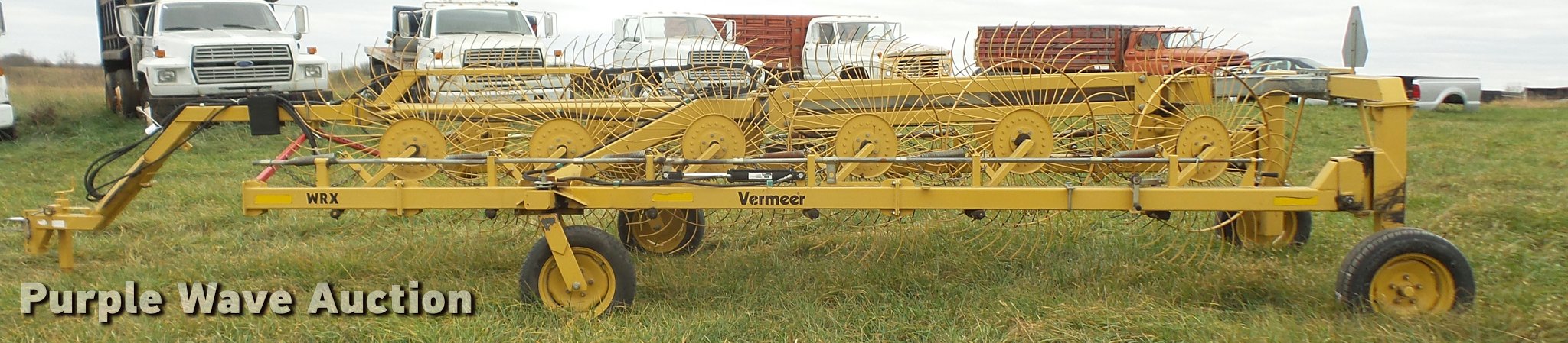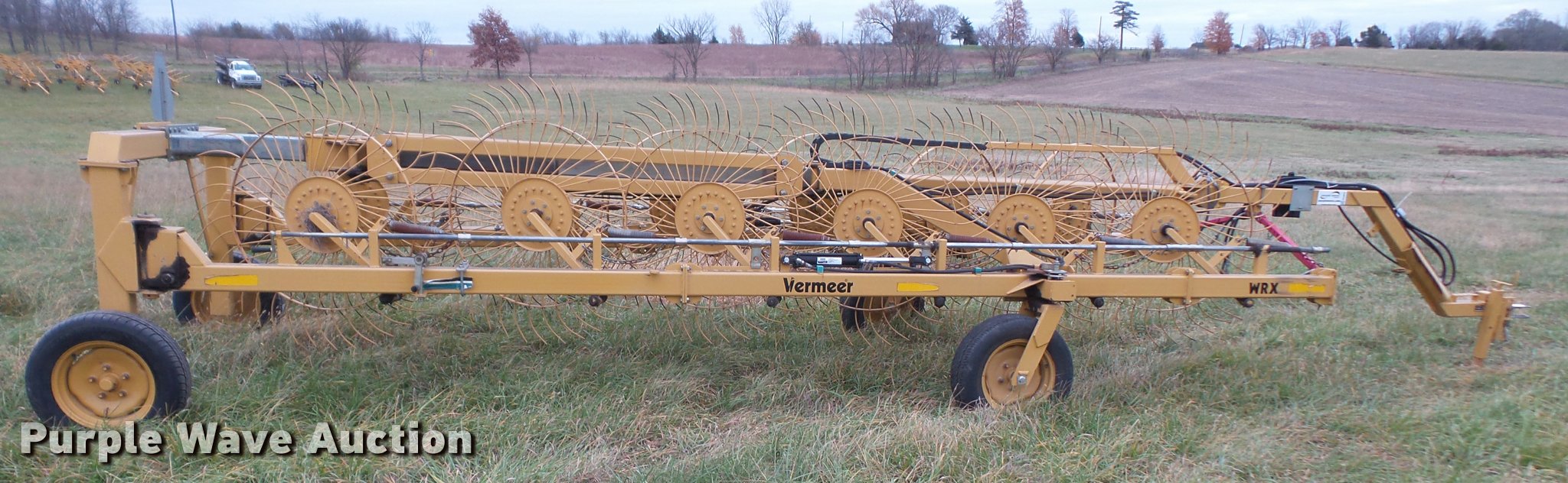Purple Wave is selling a used Hay Rake in Kansas. This item is a 2006 Vermeer WRX12 wheel rake with the following: (12) wheels, Hydraulic lift and fold, Pin hitch, 205/65R15 tires, Serial 1VRV302156300490