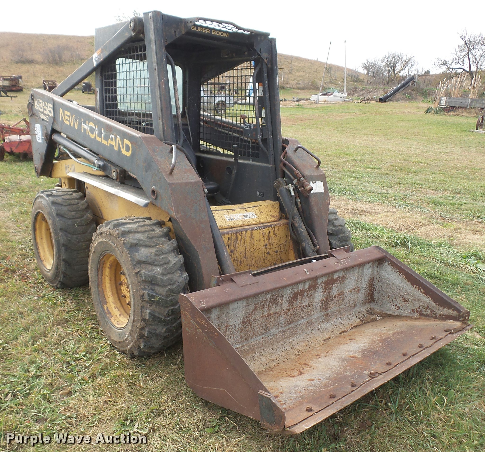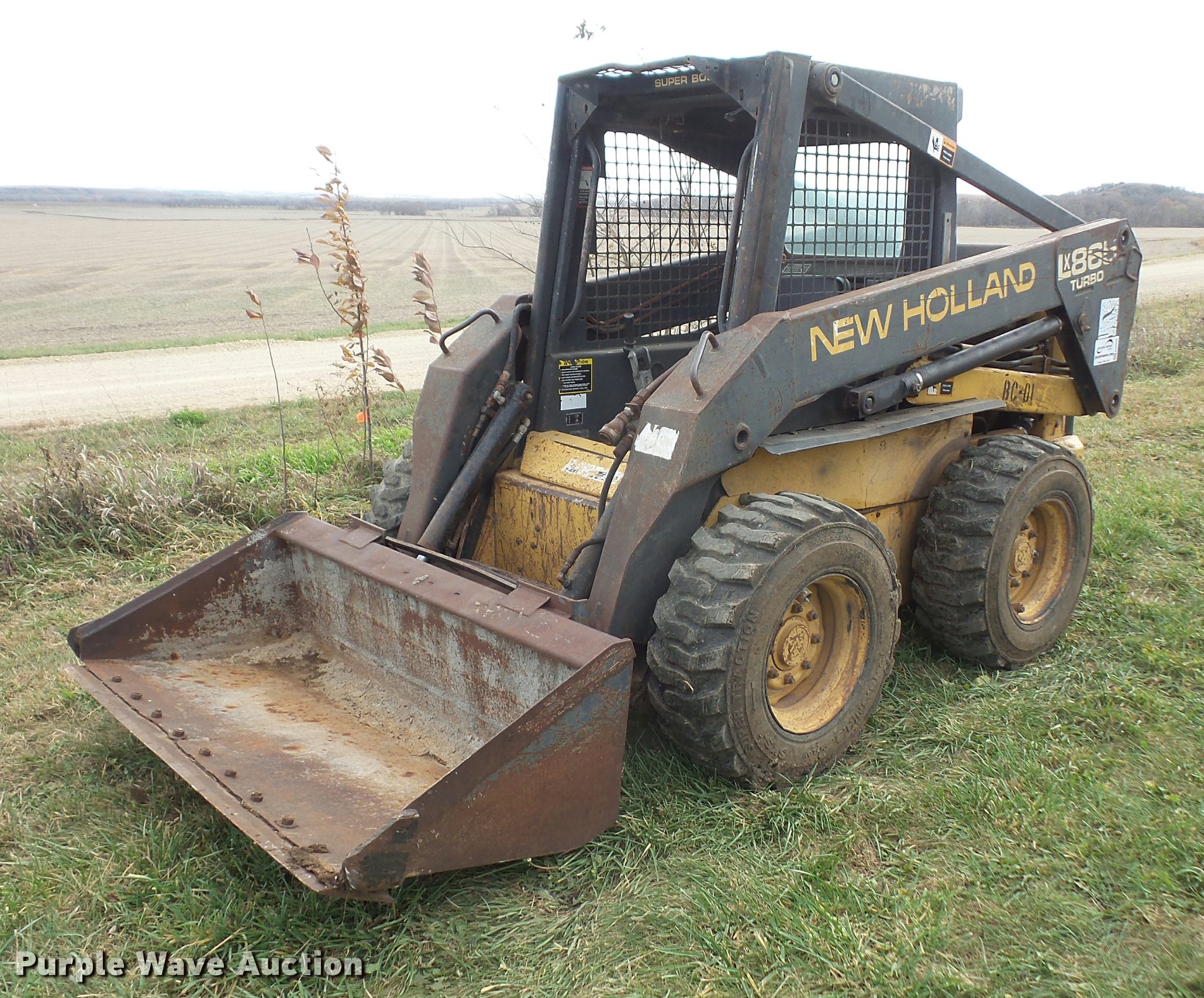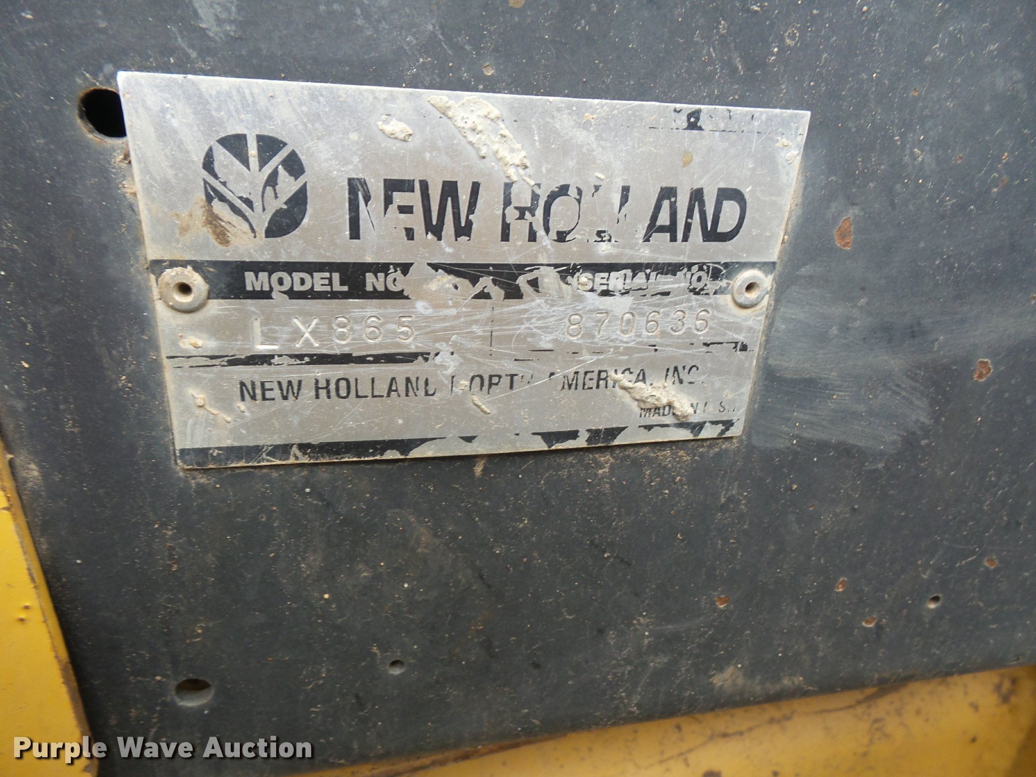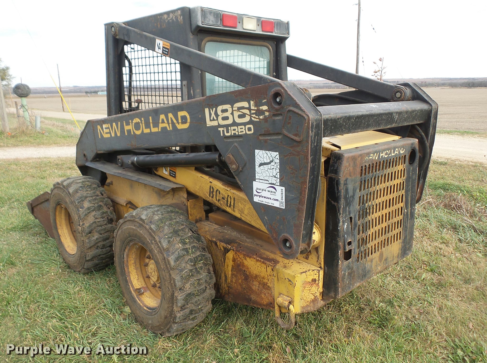 Purple Wave is selling a used Skid Steer Loader in Kansas. This item is a 1995 New Holland LX865 skid steer with the following: Unknown hours on meter, New Holland three cylinder turbo diesel engine, Hydrostatic transmission, OROPS, Hand and foot controls, Auxiliary hydraulics, Manual quick coupler, 64"W bucket, Bolt-on cutting edge, 12-16.5 tires, Low compression on one cylinder, Display inoperable, Serial 870636