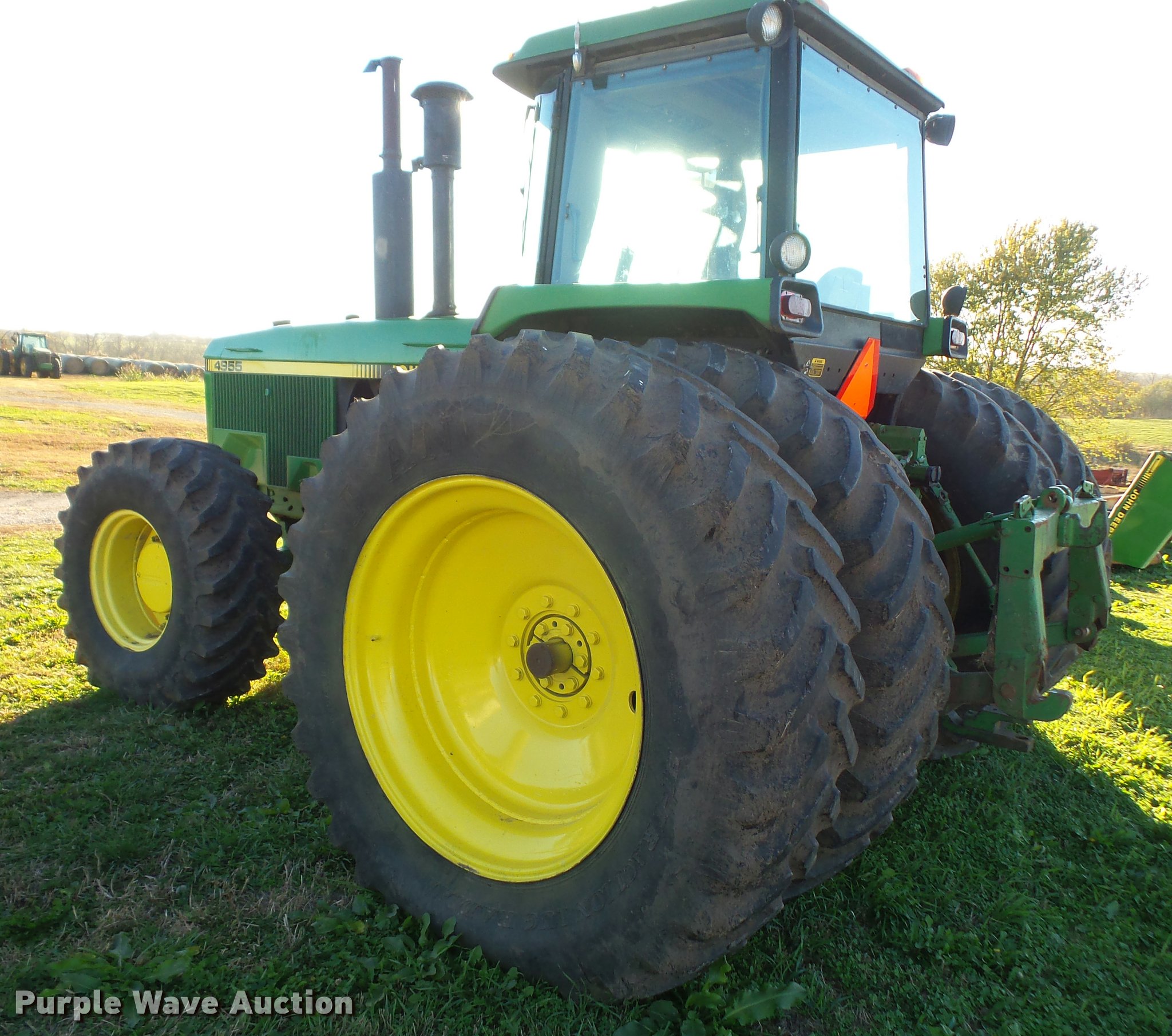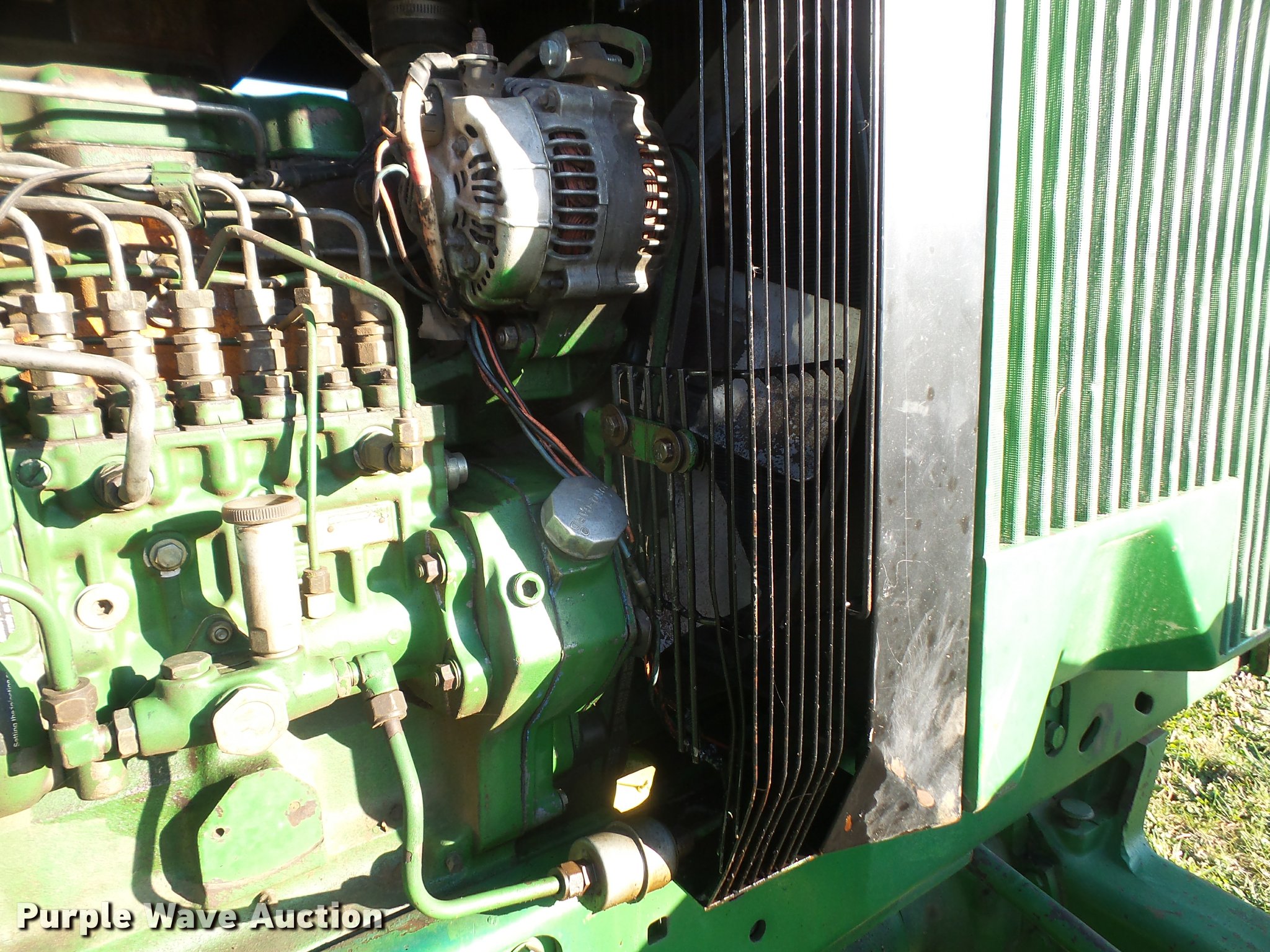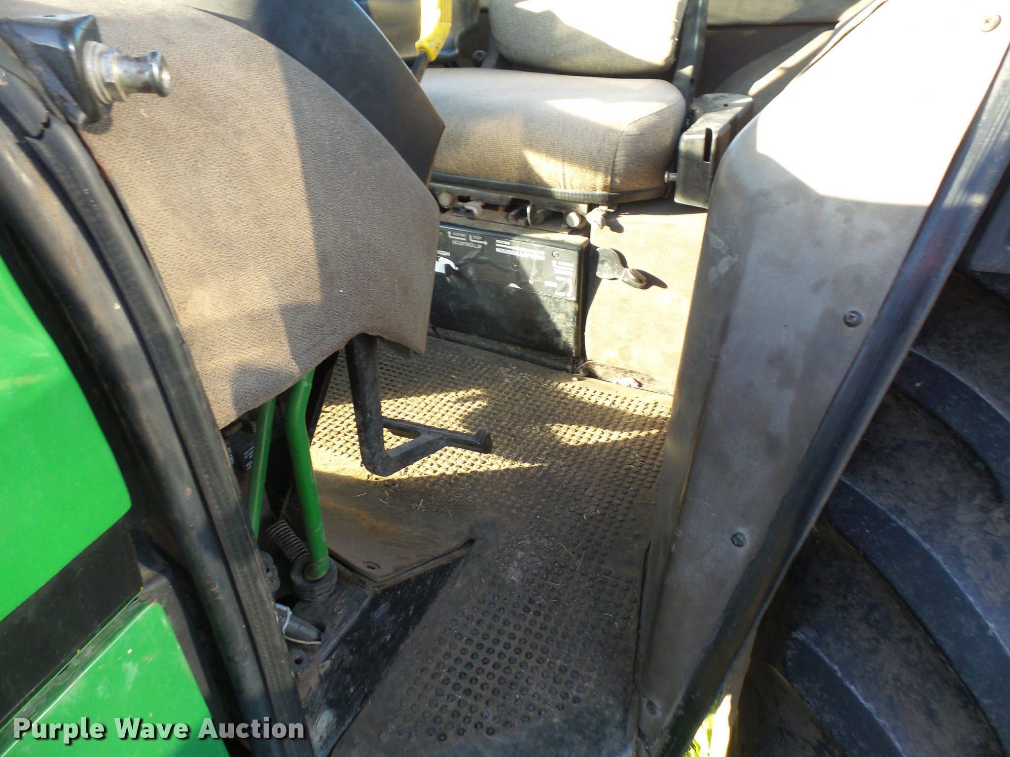 Purple Wave is selling a used Tractor in Kansas. This item is a 1989 John Deere 4955 MFWD tractor with the following: 8,054 hours on meter, John Deere 6076 7.6L six cylinder turbo diesel engine, 200 HP, Serial RG6076A117375, Powershift transmission, 15F-4R gears, AC and heat, Tilt steering wheel, AM/FM, Suspension seat, Three point, Top link, Quick attach, Seven pin outlet, Large 1000 PTO, (3) rear hydraulic remote sets, 18.4R28 front tires, 520/85R42 dual rear tires, Fenders included, In-frame overhaul, Serial RW4955P002961