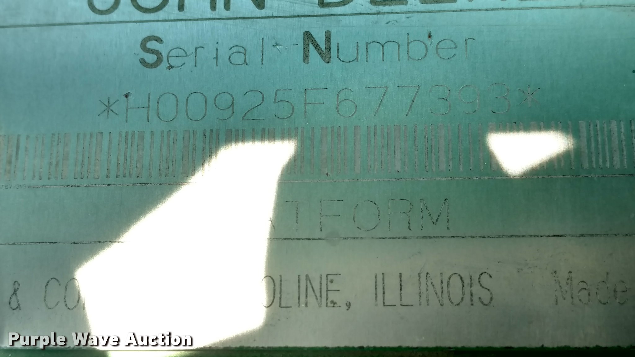 Purple Wave is selling a used Platform or Stripper Head in Kansas. This item is a 1998 John Deere 925 flex platform head with the following: 25'W, Bat reel, Hydraulic fore/aft, Unit is out of time, Some fingers have been cut, Serial H00925F677393