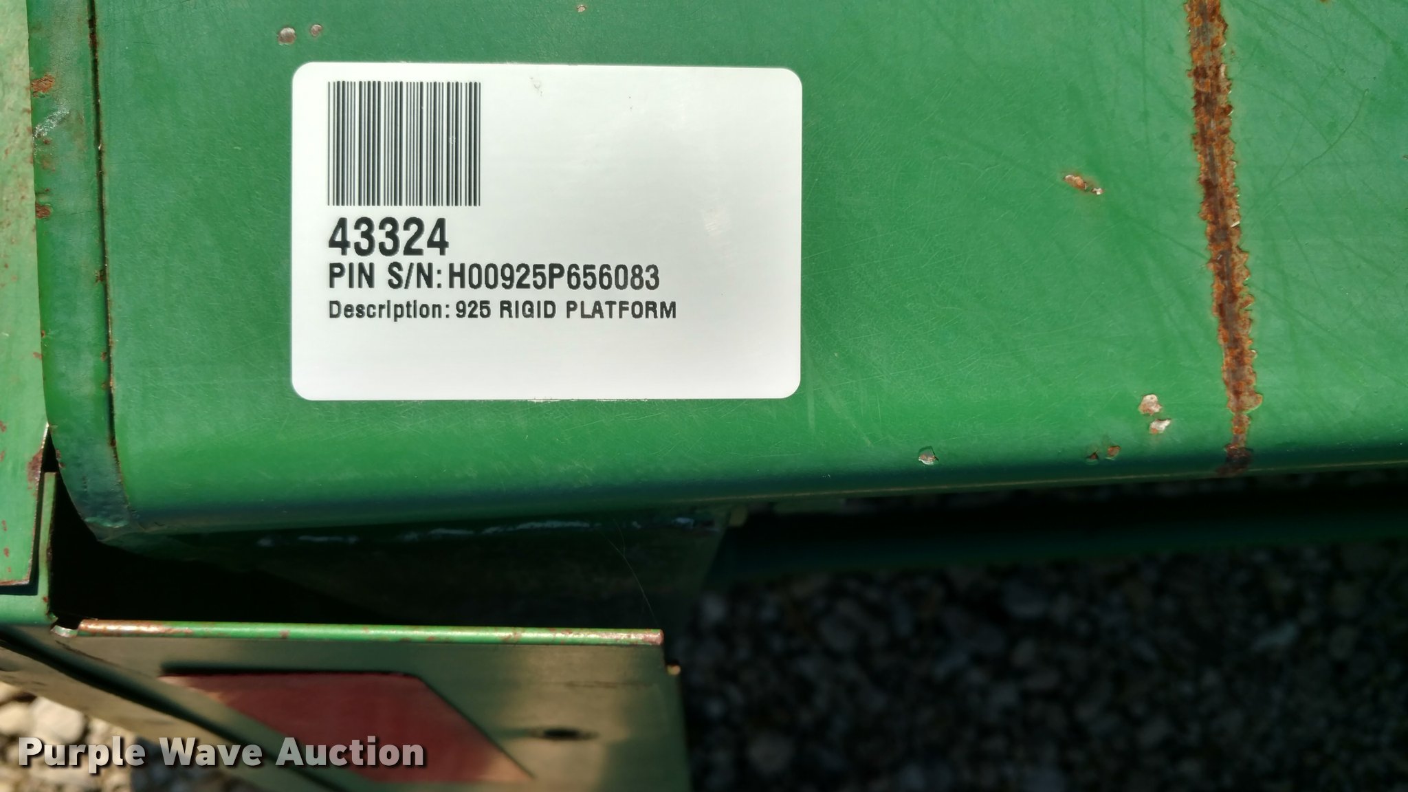 1994 John Deere 925 rigid platform head. 25'W, Hydraulic fore/aft, Dial-a-speed reel control, Serial H00925P656083, Unit# 43324. Concordia Tractor, Inc.. Abilene, KS 67410