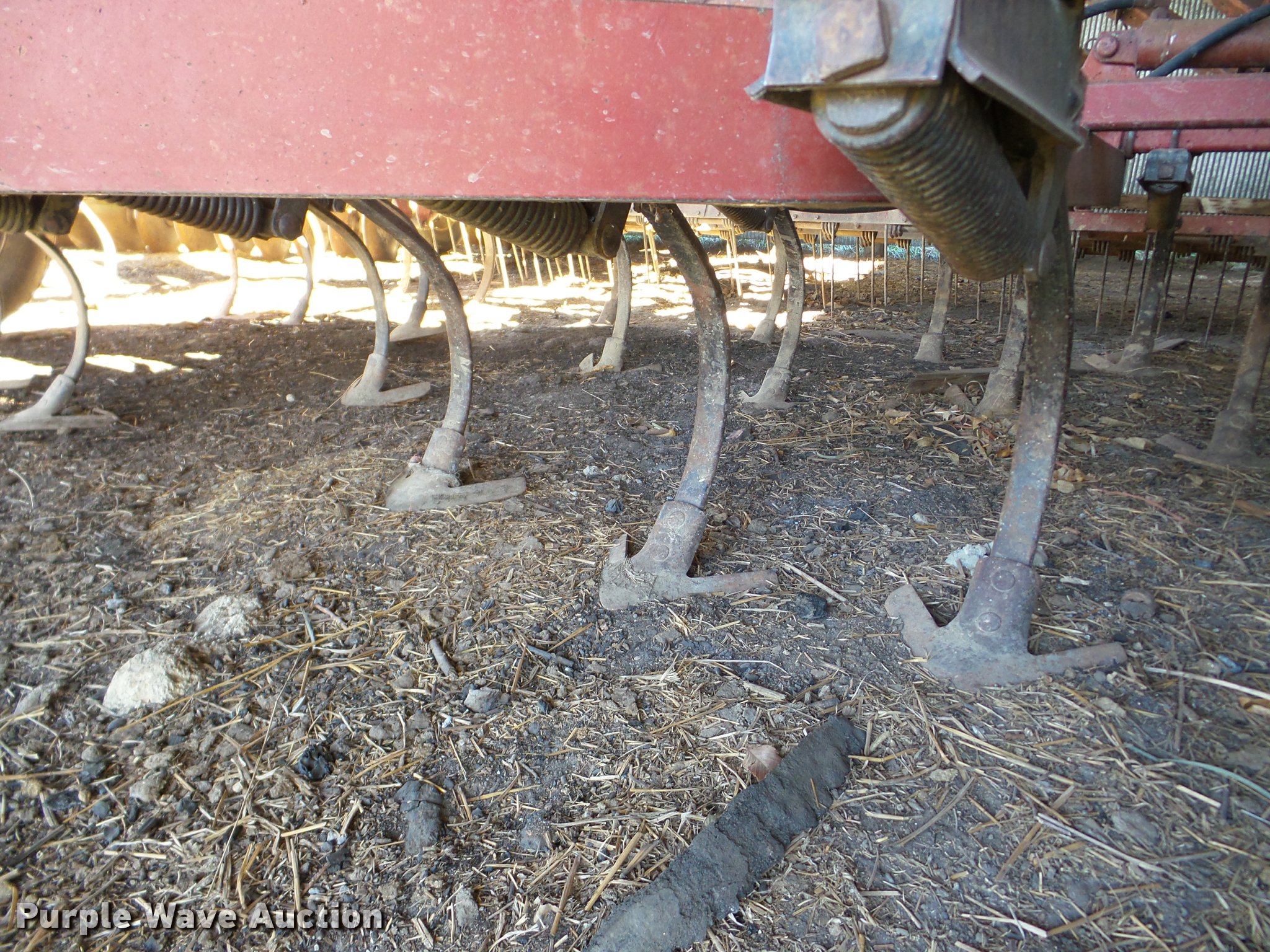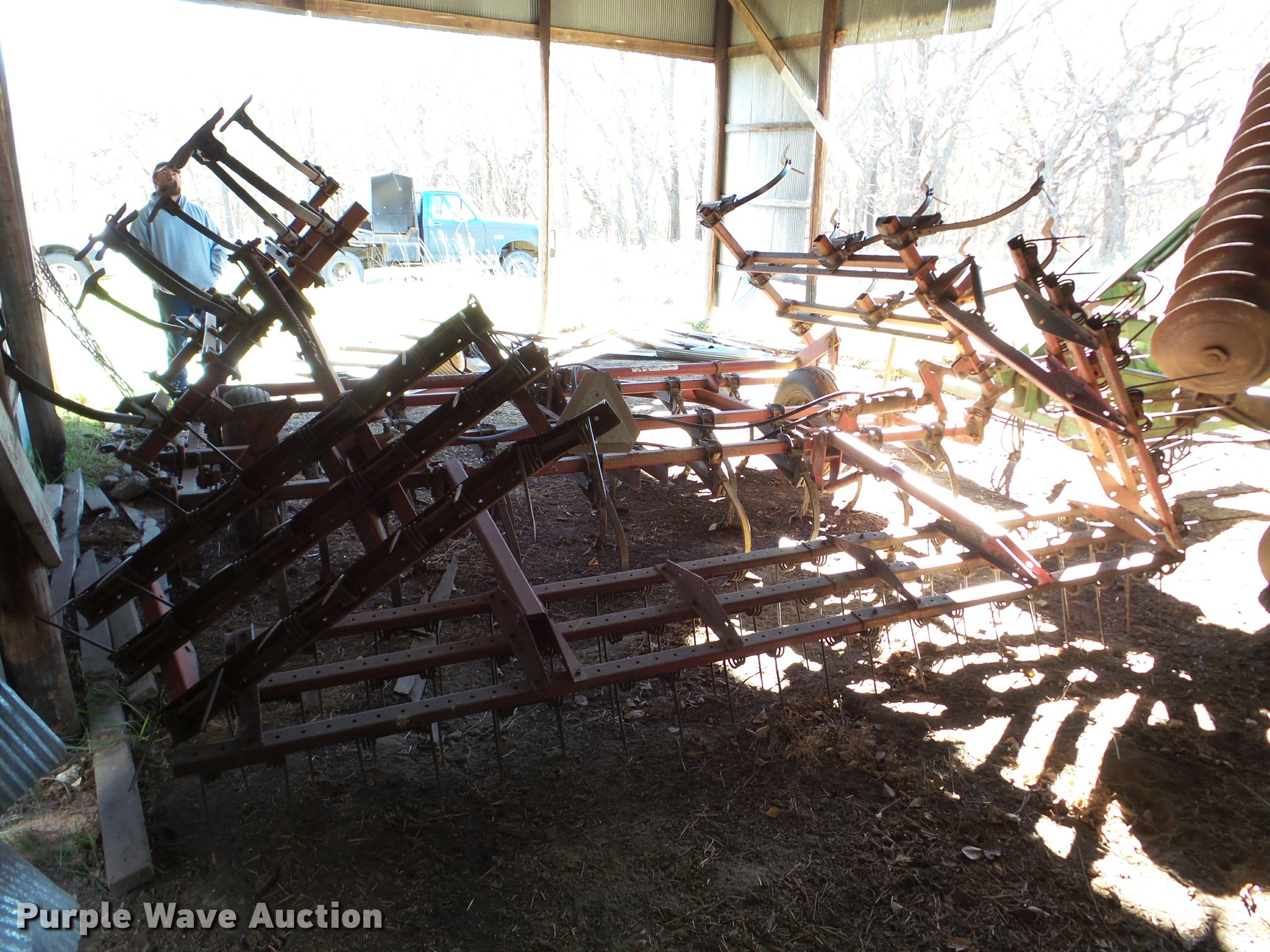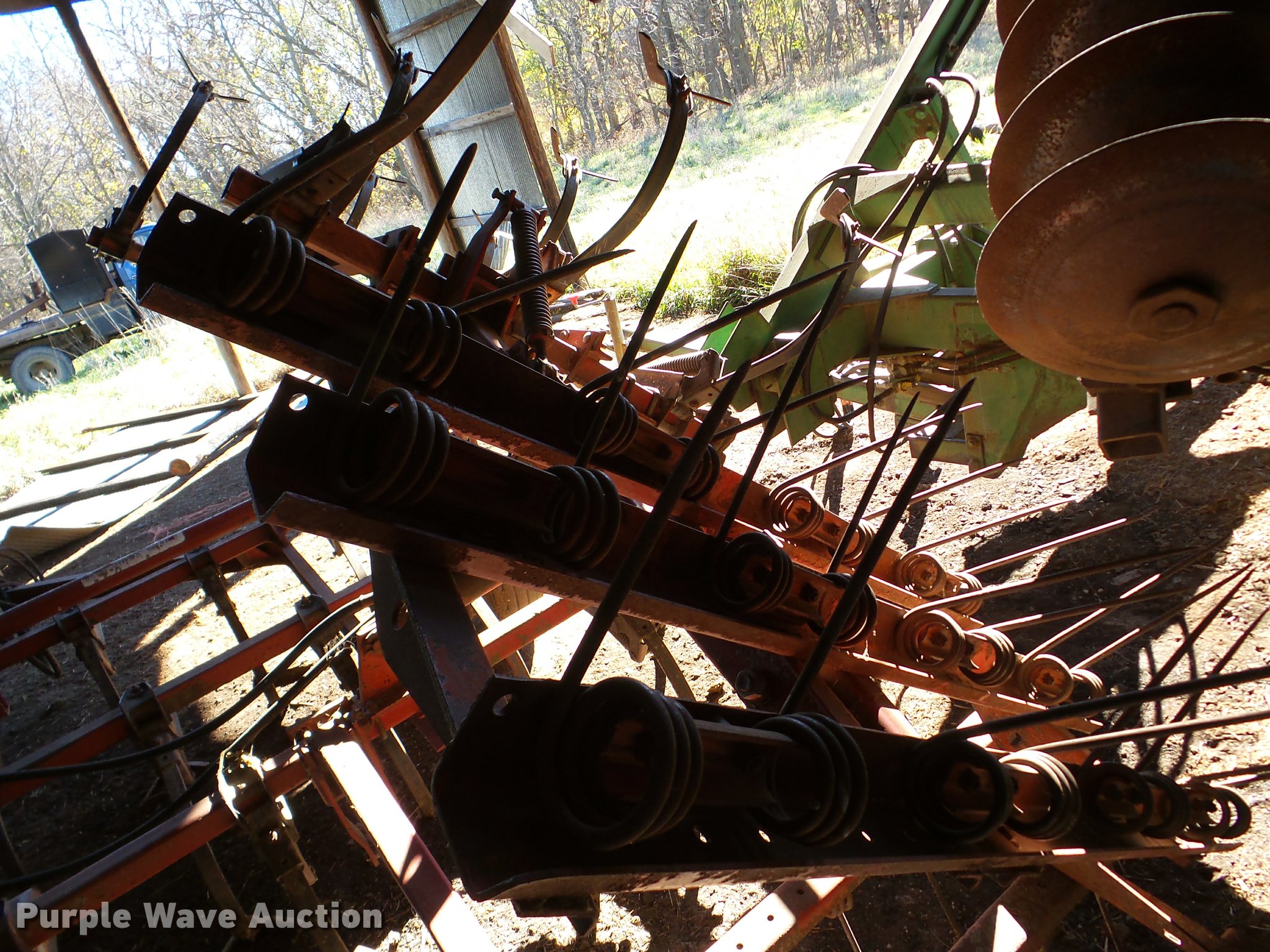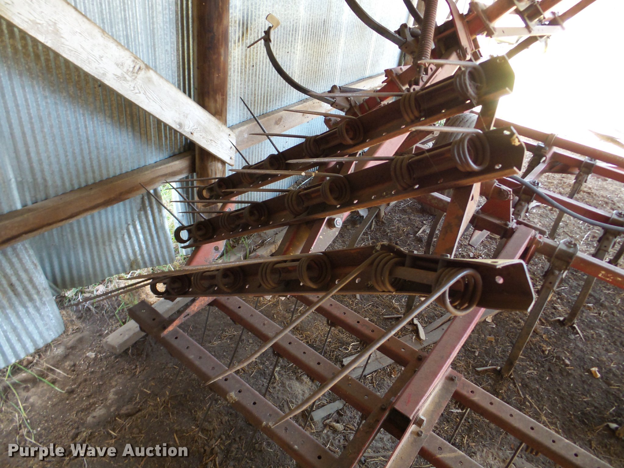 Purple Wave is selling a used Field Cultivator or Sweep Plow in Kansas. This item is a International Vibrashank field cultivator with the following: 20'W, Spring tooth harrow, Hydraulic lift, Hydraulic wings, Pin hitch, 9.5L-15 tires