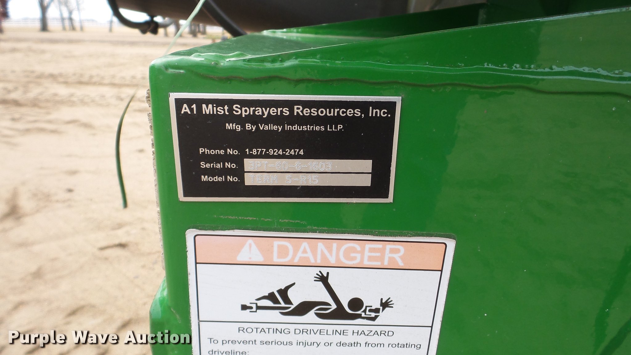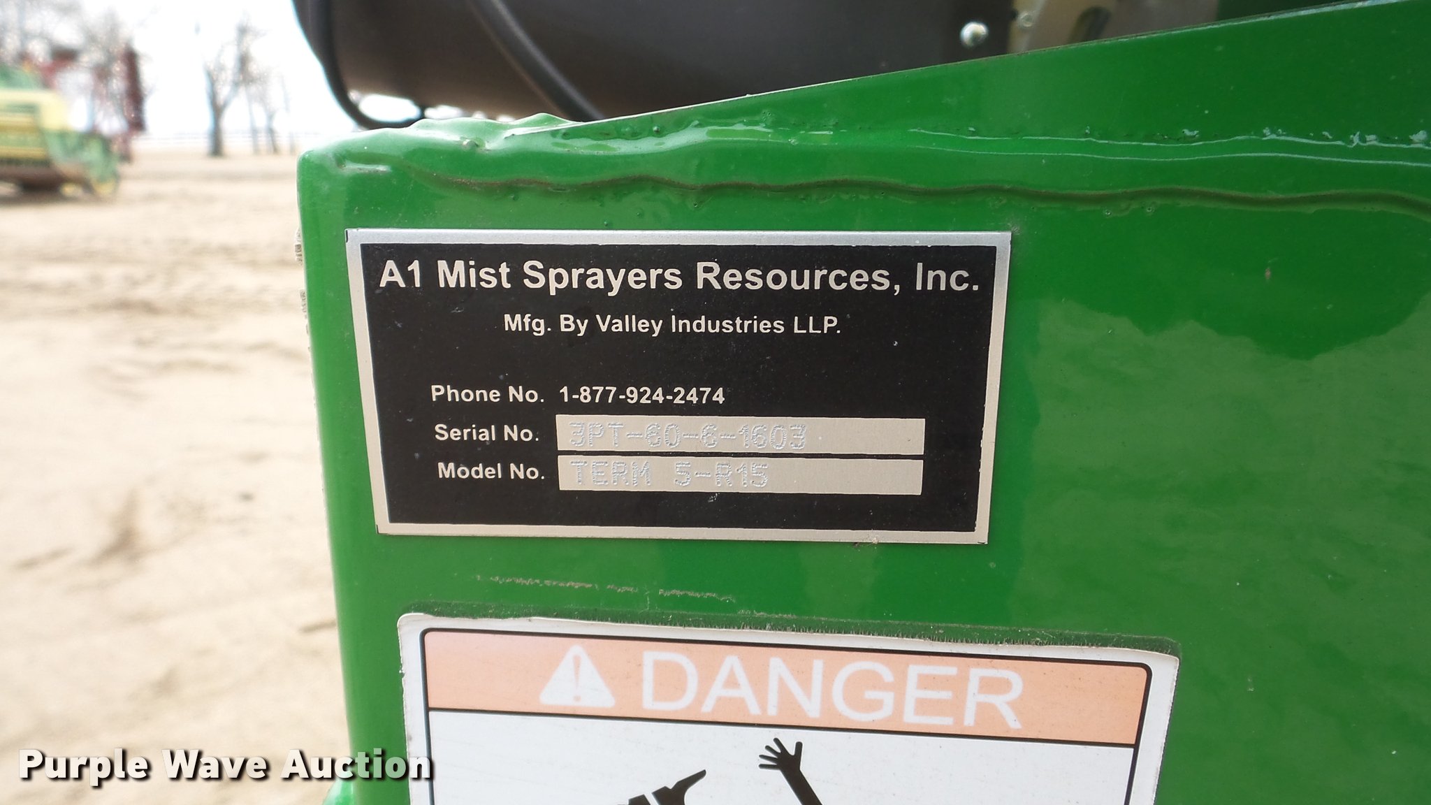 A1 mist sprayer. Model Term 5-R15, 60 gallon tank, Hydraulics, 540 PTO, Three point, Unused, Serial 3PT-60-6-1603. Kinsley, KS 67547
