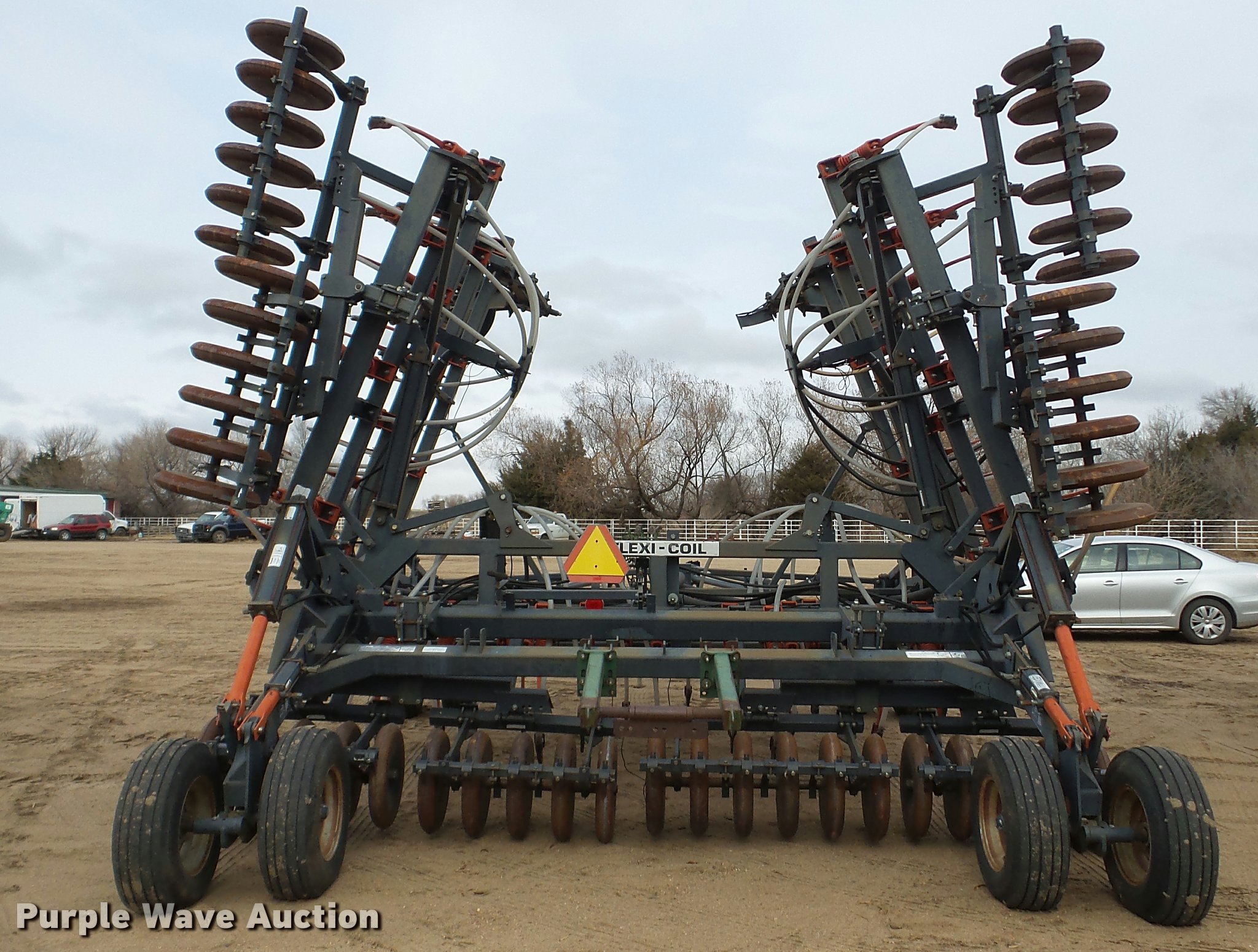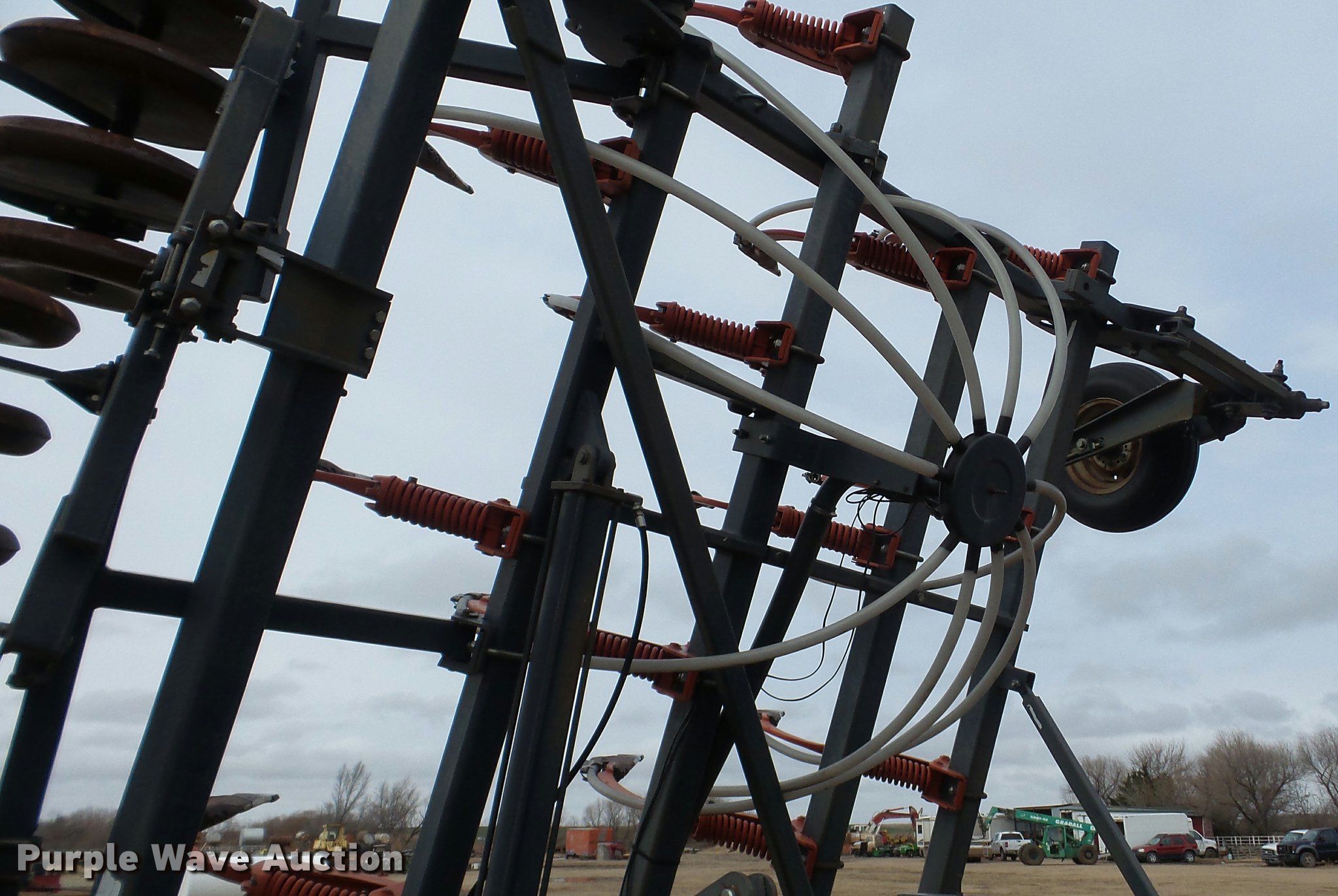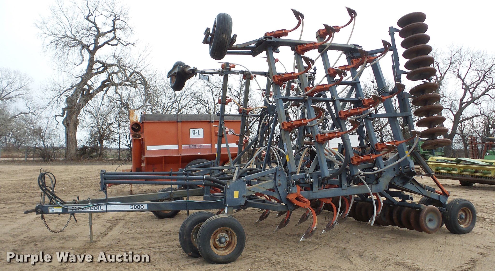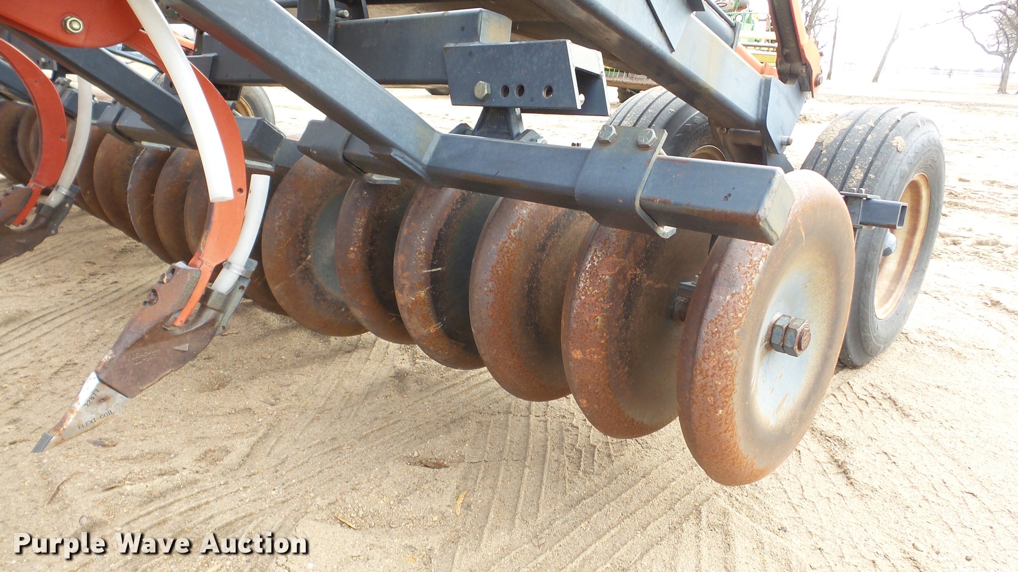 Purple Wave is selling a used Air Seeder in Kansas. This item is a 1997 Flexi-Coil 5000 air seeder with the following: 30'W, Hydraulic lift and fold, Pin/clevis hitch, 9.5L-15 transport tires, Serial T076320