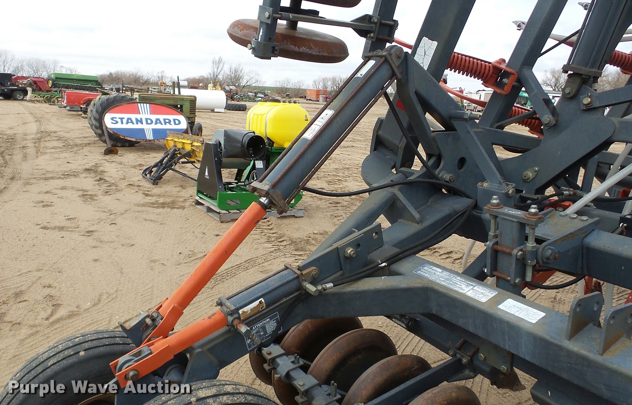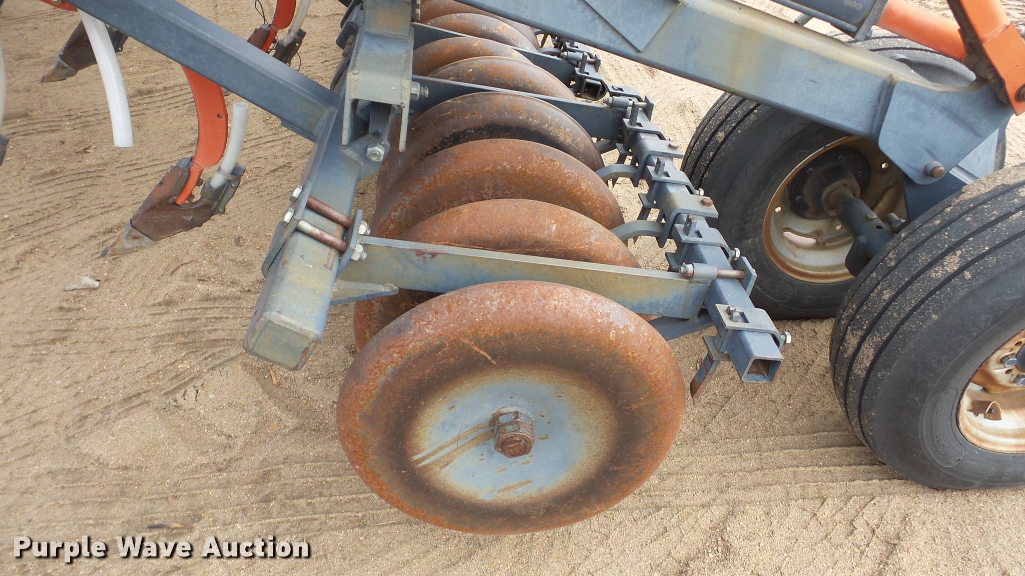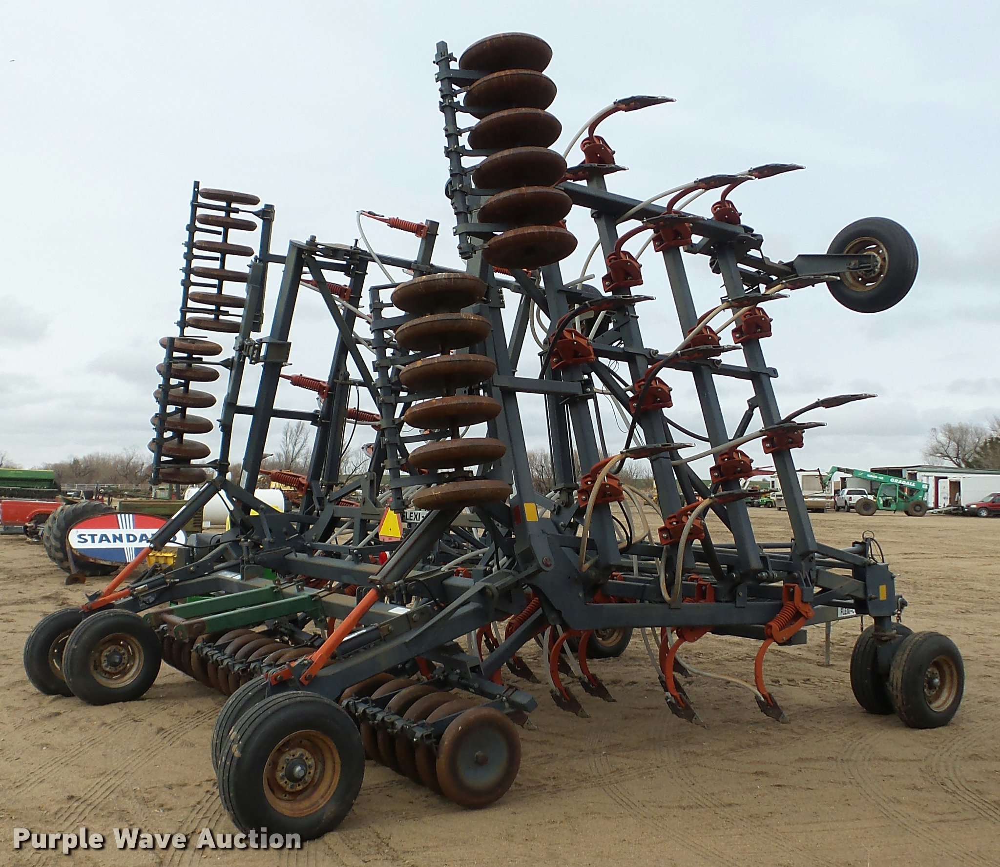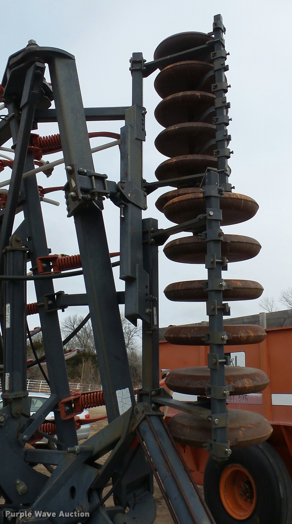 Purple Wave is selling a used Air Seeder in Kansas. This item is a 1997 Flexi-Coil 5000 air seeder with the following: 30'W, Hydraulic lift and fold, Pin/clevis hitch, 9.5L-15 transport tires, Serial T076320