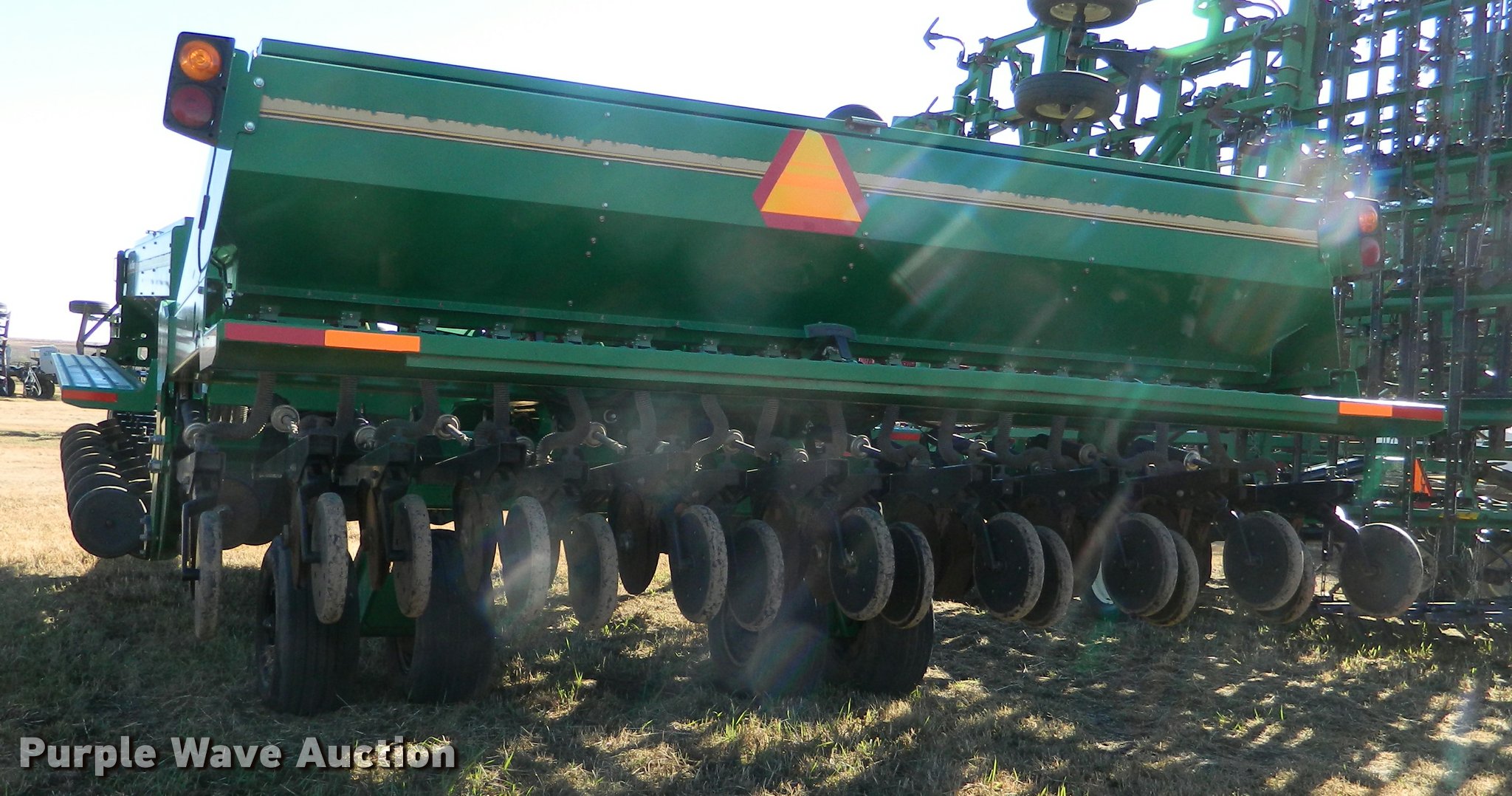 Purple Wave is selling a used Grain Drill or Seeder in Kansas. This item is a 2004 Great Plains 4000 3S grain drill with the following: 40'W, 10" row spacing, Marker arm, Front fold, Bulk fill system, 13" average double disk openers, Rubber press wheels, Pin hitch, 11L-15 tires, Serial 441199