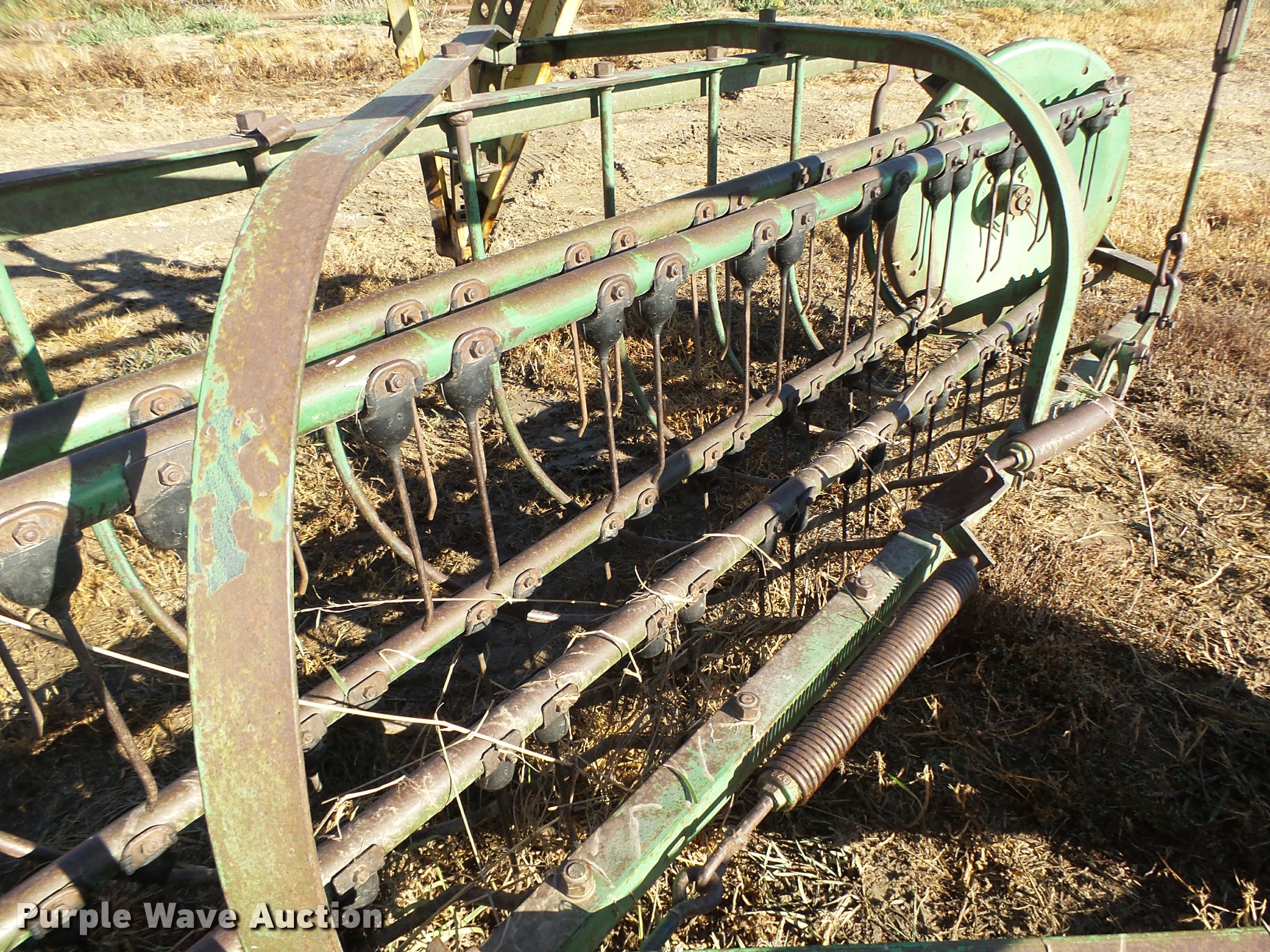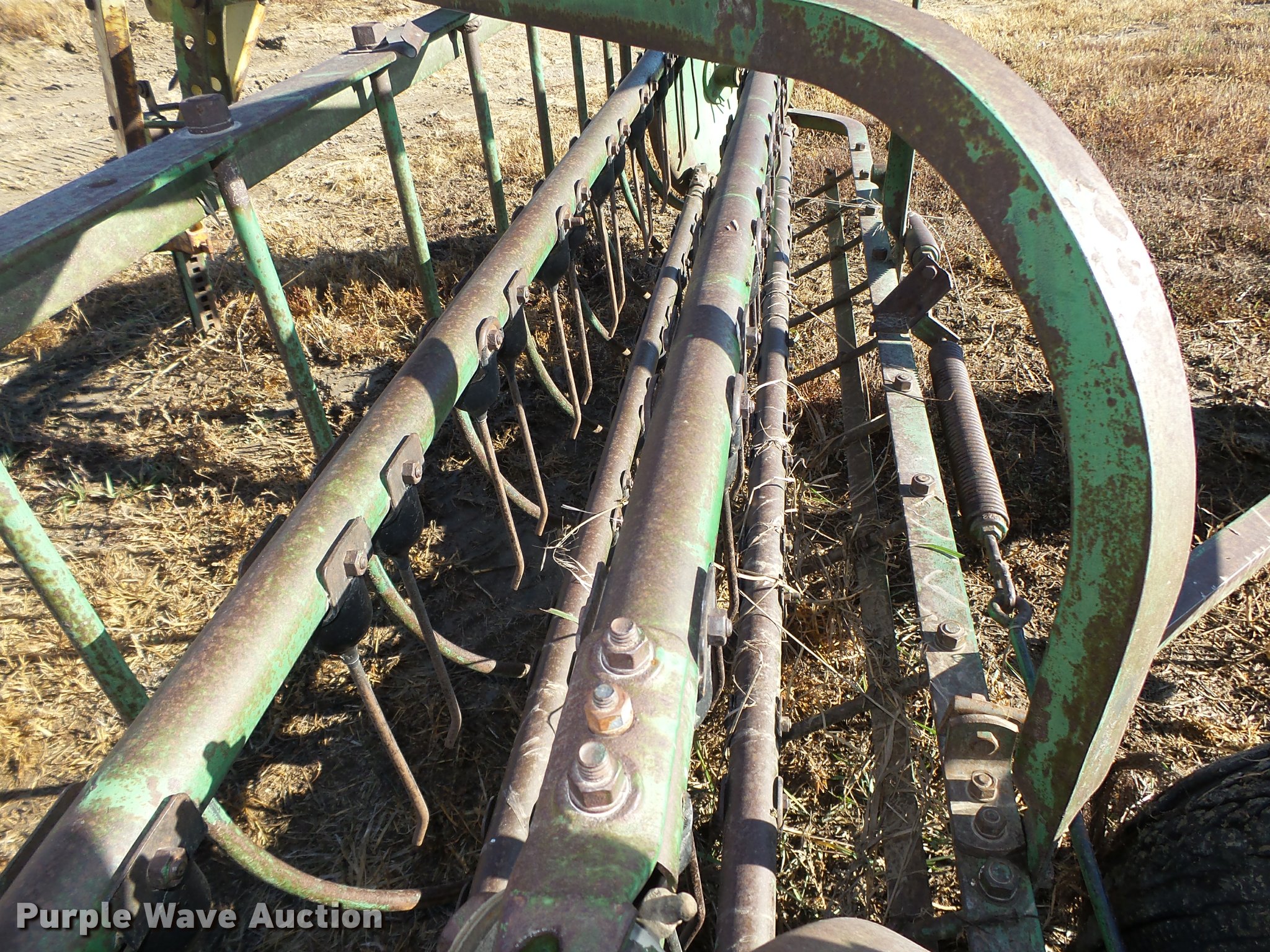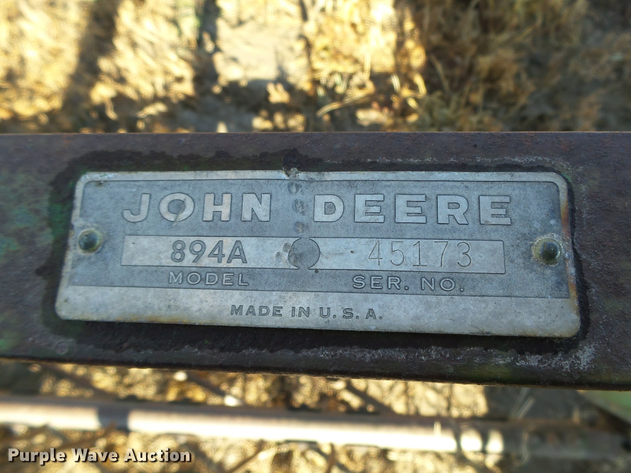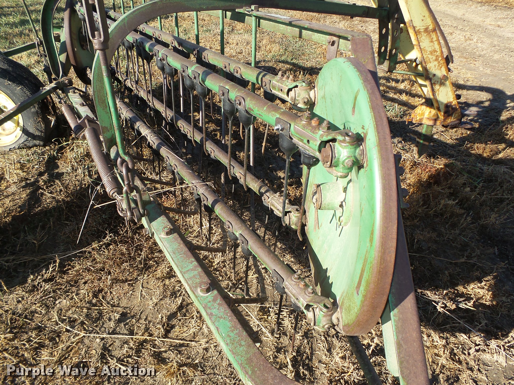 Purple Wave is selling a used Hay Rake in Nebraska. This item is a John Deere 894A hay rake with the following: Adjustable height, Pin hitch, 14" tires, Serial 45173