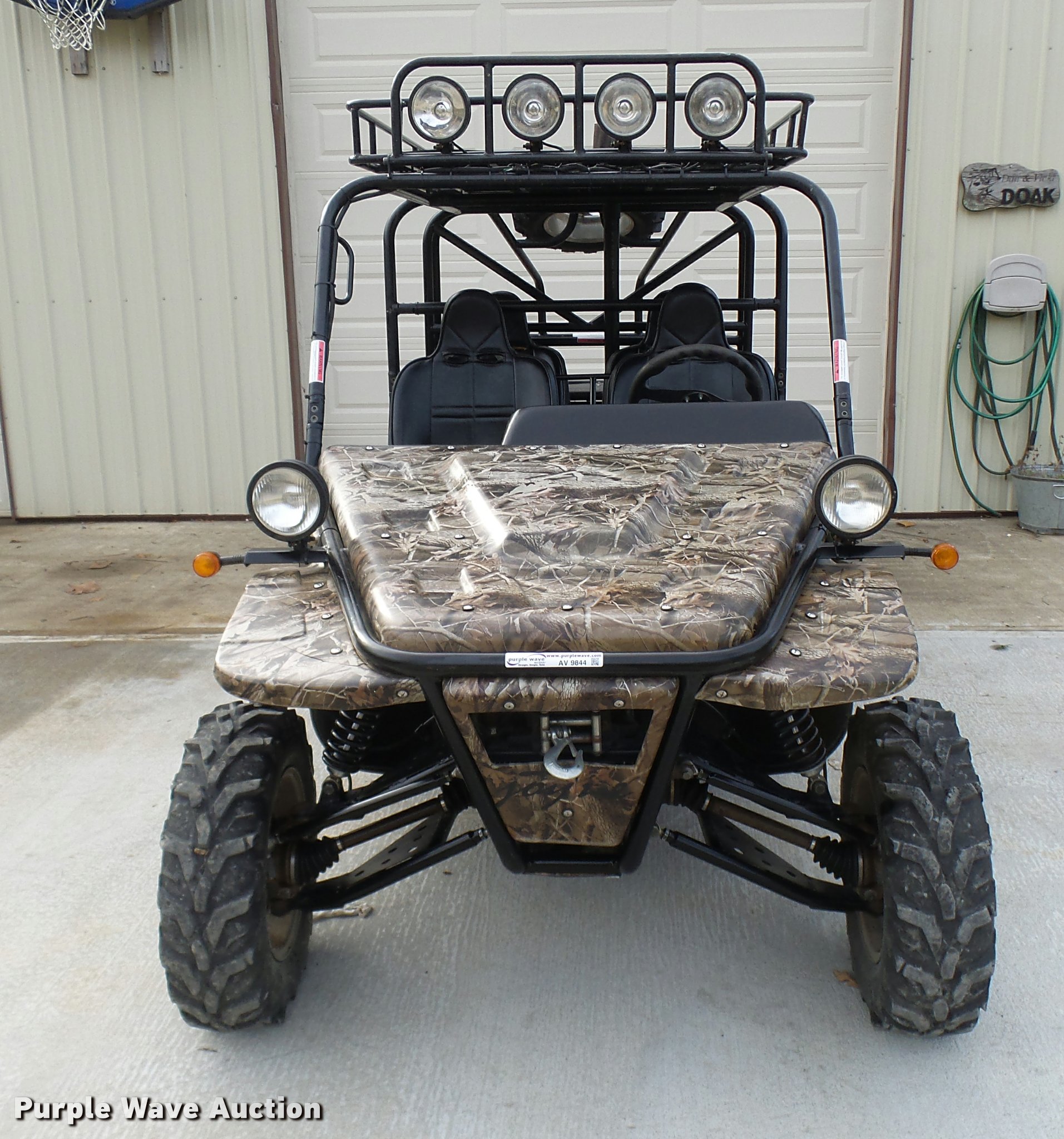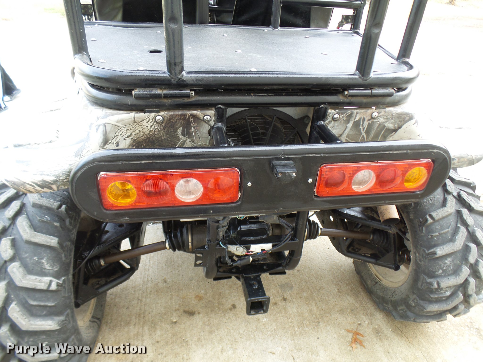 2012 Joyner Trooper T4 utility vehicle. 694 miles on odometer, 1100 cc four cylinder 16V DOHC gas engine Water cooled, Five speed manual transmission Hydraulic clutch, Four wheel drive, Front and rear differential locks, Four person capacity Five point seat belts, Tachometer, Vinyl interior, Winch 5,000 lbs capacity, In-cab controls, Roof rack 400 lbs capacity, Under seat storage, Headlights High and low beams, Taillights, Turn signals, 6.8 gallon fuel tank, Receiver hitch 2,000 lbs towing capacity, Independent front and rear suspension, Hydraulic disk brakes, Aluminum wheels, 27 x 8 x 14 front tires, 27 x 11 x 14 rear tires. Transfer of ownership documentation will be a bill of sale. L5BG2MV6191021396. Centerview, MO 64019