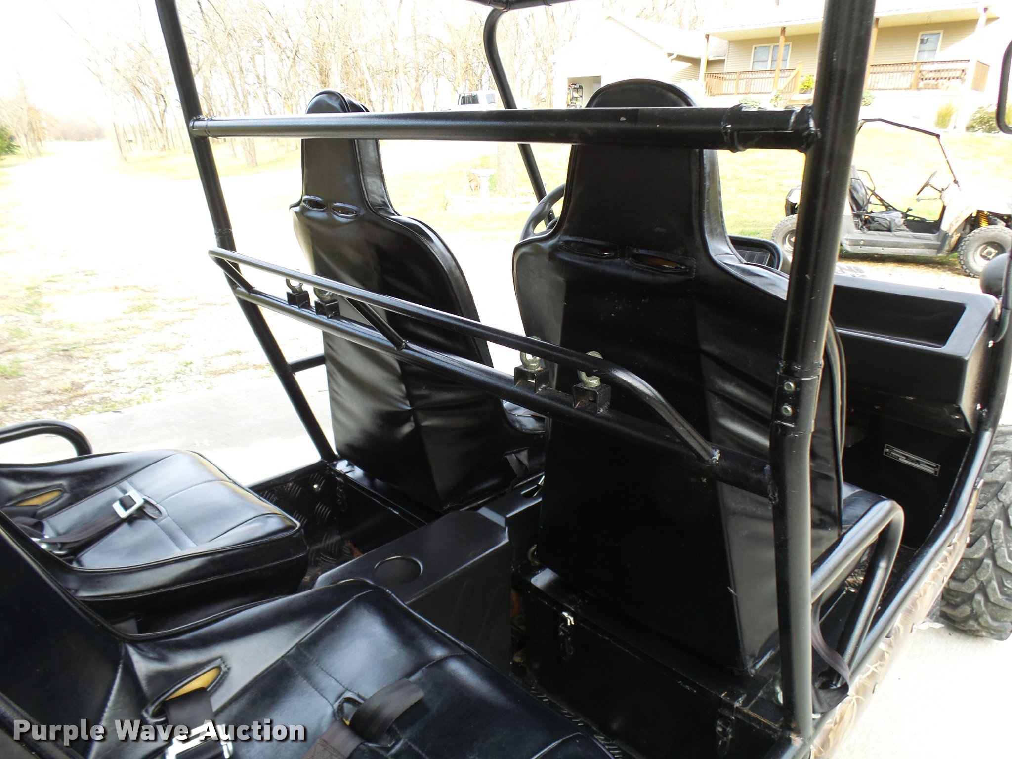 Purple Wave is selling a used Utility Vehicle in Missouri. This item is a 2012 Joyner Trooper T4 utility vehicle with the following: 694 miles on odometer, 1100 cc four cylinder 16V DOHC gas engine, Water cooled, Five speed manual transmission, Hydraulic clutch, Four wheel drive, Front and rear differential locks, Four person capacity, Five point seat belts, Tachometer, Vinyl interior, Winch, 5,000 lbs capacity, In-cab controls, Roof rack, 400 lbs capacity, Under seat storage, Headlights, High and low beams, Taillights, Turn signals, 6.8 gallon fuel tank, Receiver hitch, 2,000 lbs towing capacity, Independent front and rear suspension, Hydraulic disk brakes, Aluminum wheels, 27 x 8 x 14 front tires, 27 x 11 x 14 rear tires