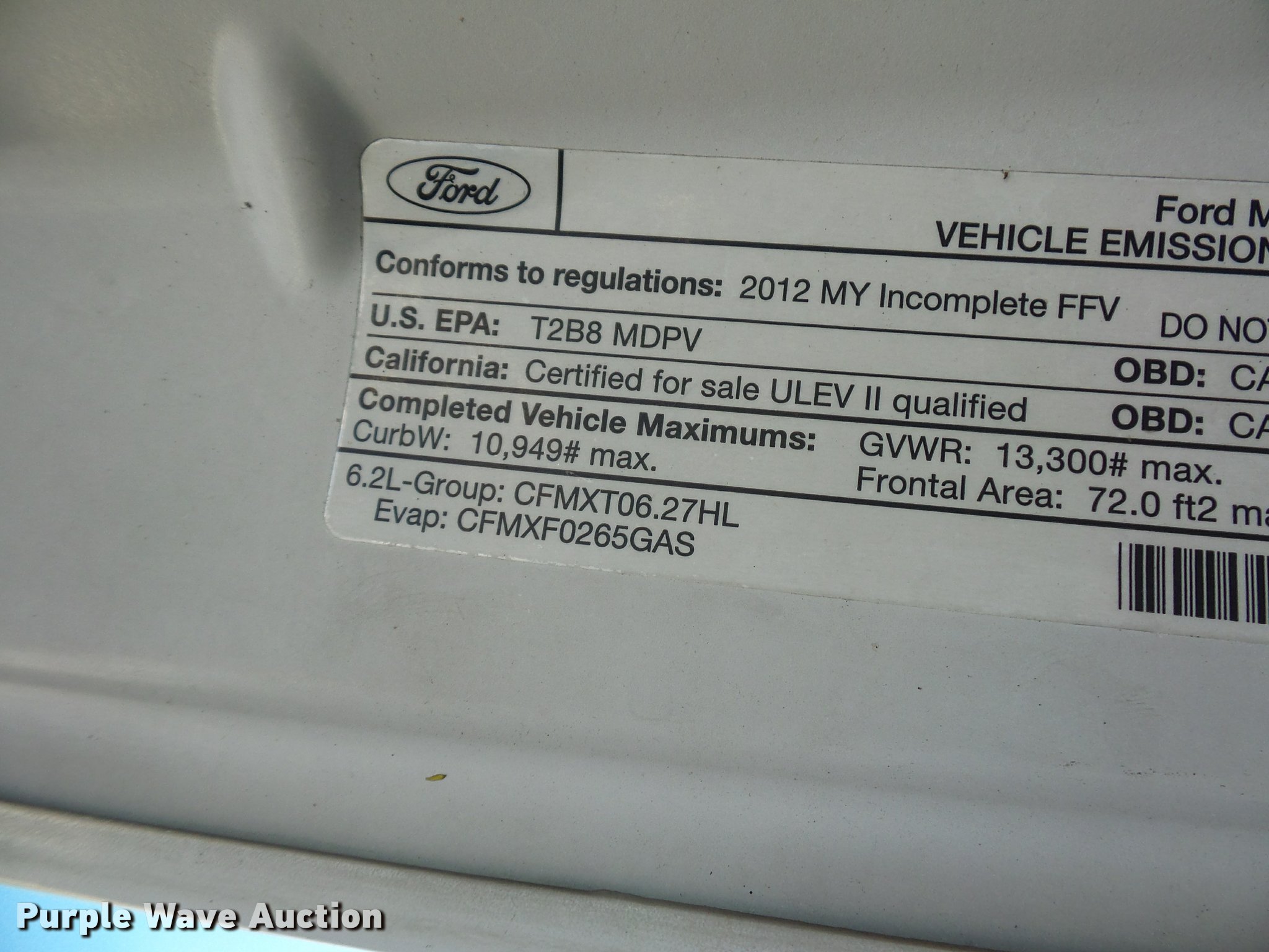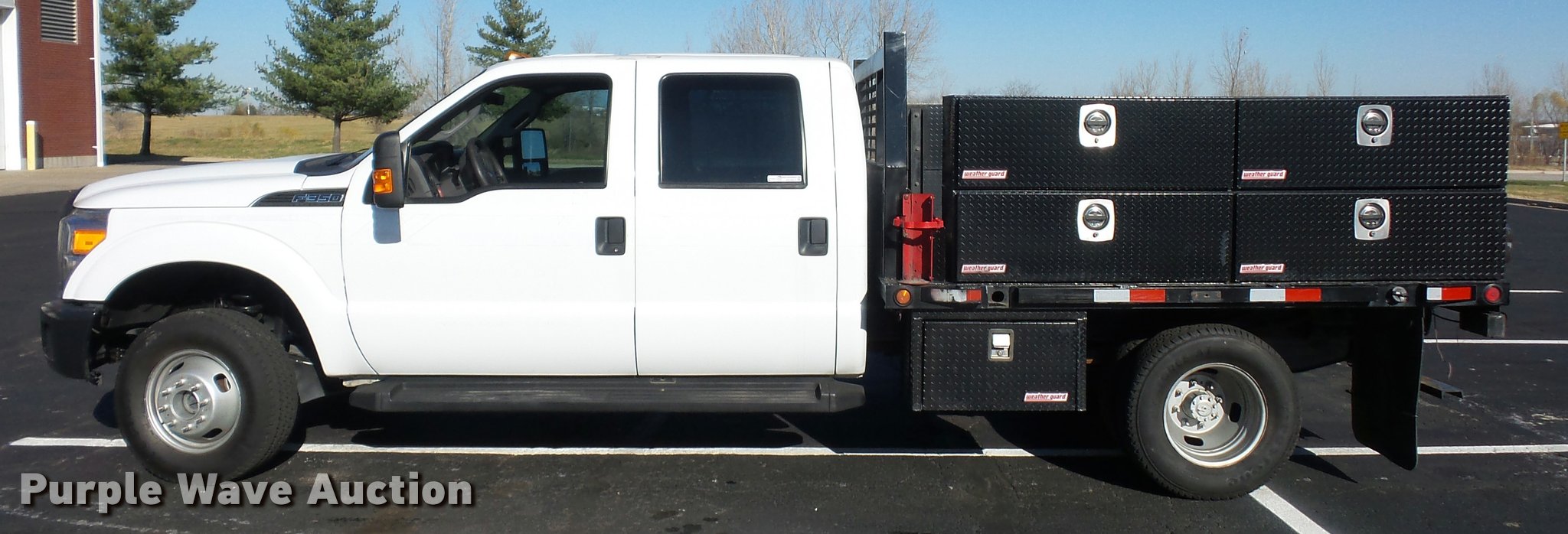 Purple Wave is selling a used 3/4 or 1 Ton Pickup or Van in Missouri. This item is a 2012 Ford F350 Super Duty Crew Cab flatbed pickup truck with the following: 245,870 miles on odometer, 6.2L V8 OHV 16V gas engine, Automatic transmission, Four wheel drive, AC and heat, Tilt, Cruise, AM/FM, Power windows and locks, Vinyl interior, 10'L x 8'W flatbed, Under bed toolboxes, Receiver hitch, 176" wheelbase, 245/75R17 tires, No center console, Bottom end engine noise, Underbed toolboxes locked, Key broken off in locks, No side toolbox keys