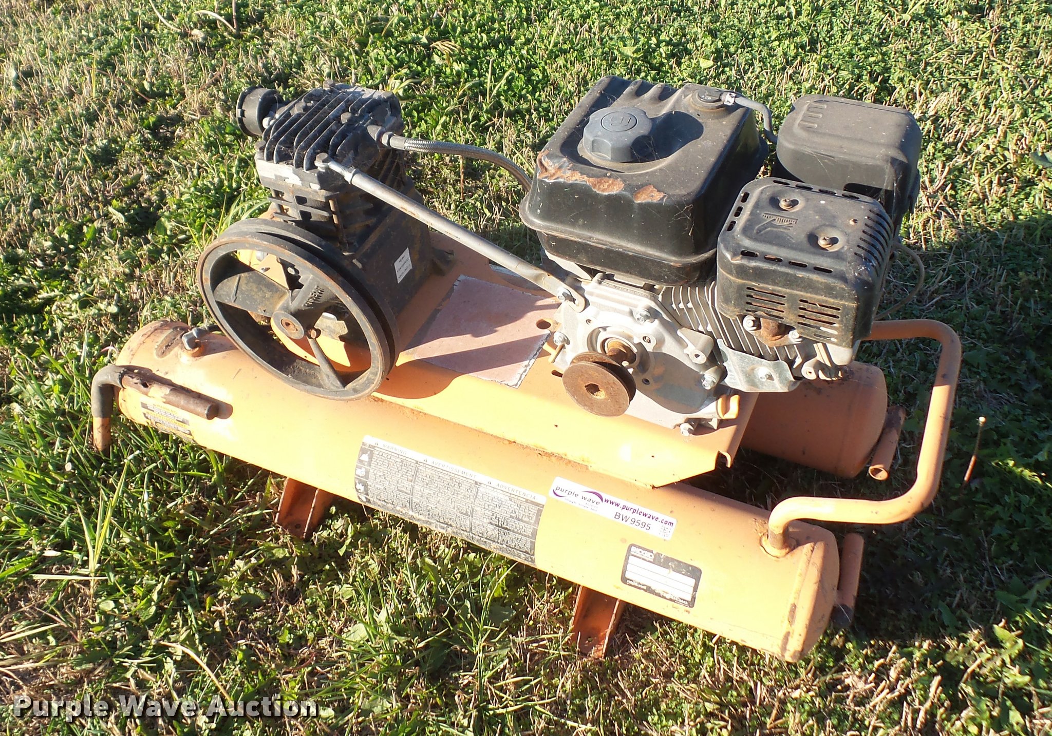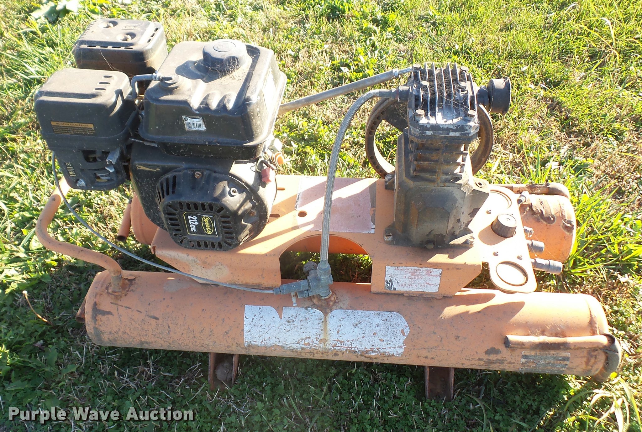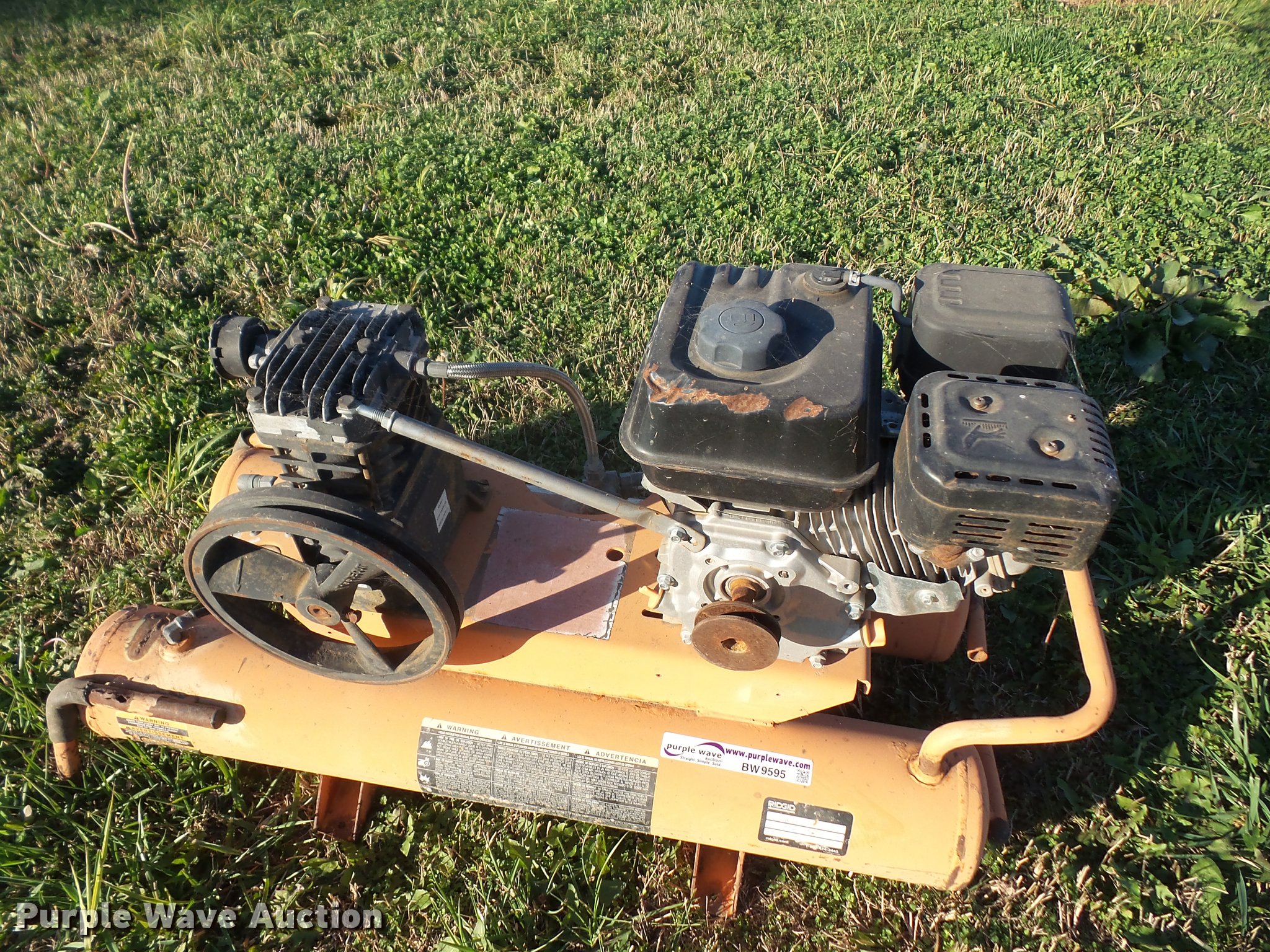 Purple Wave is selling a used Air Compressor in Kansas. This item is a Ridgid air compressor with the following: Speeco 212cc gas engine, Recoil rope and drive belt needs to be replaced