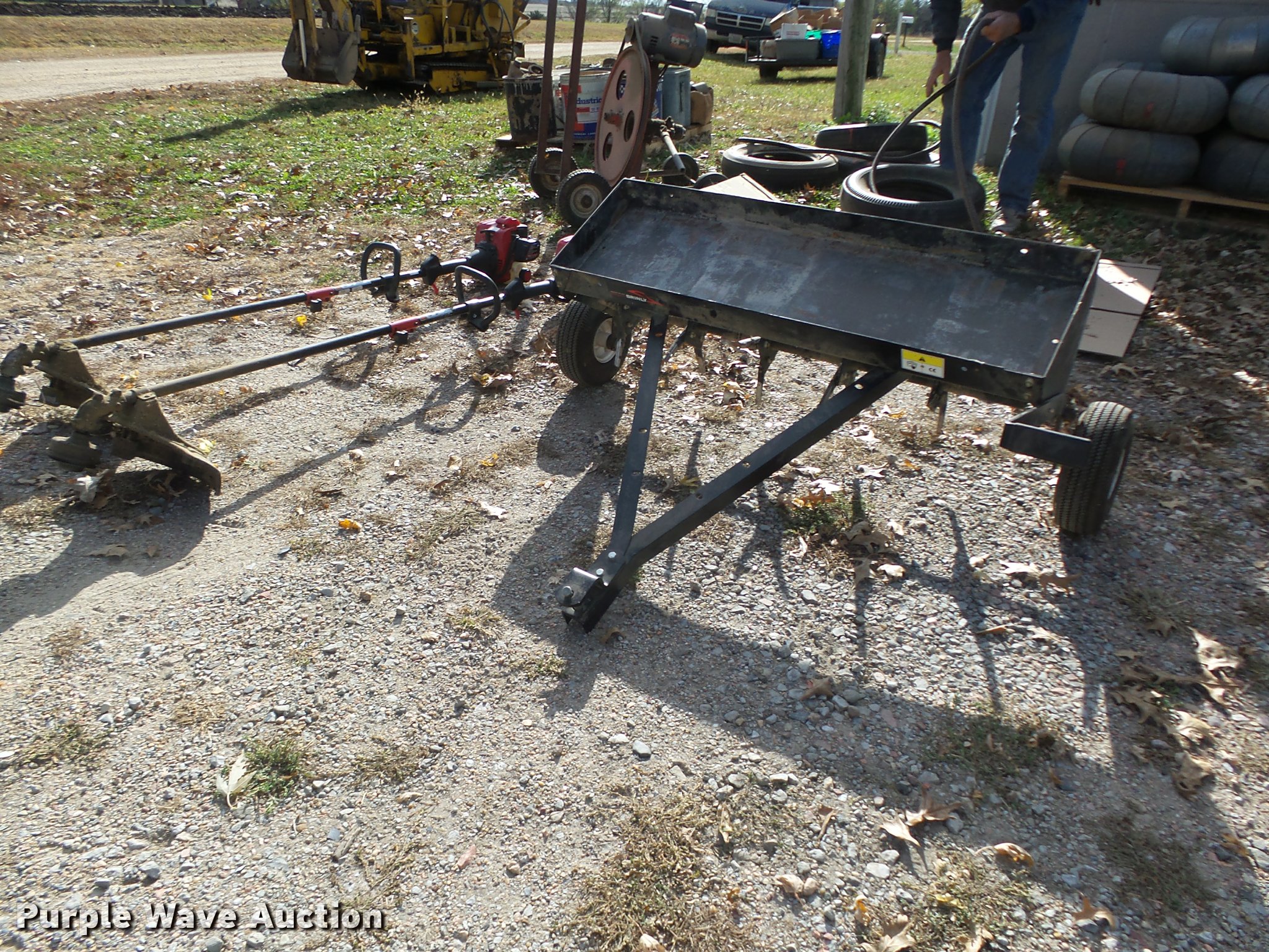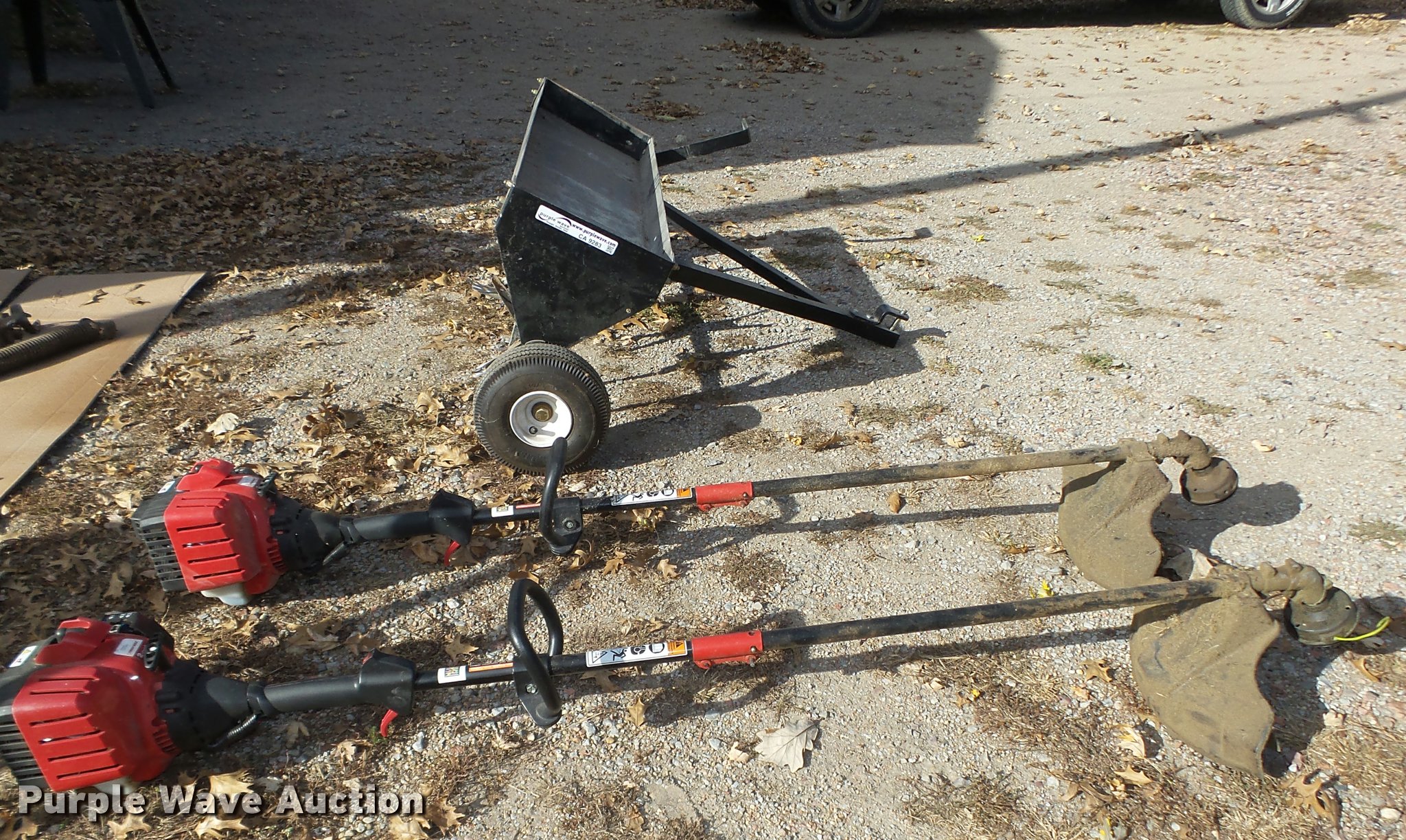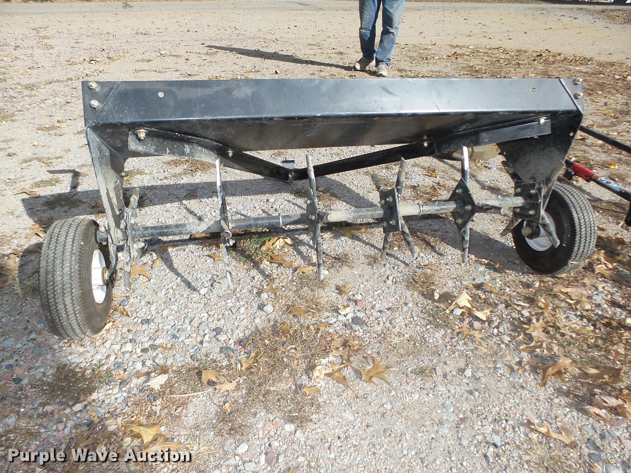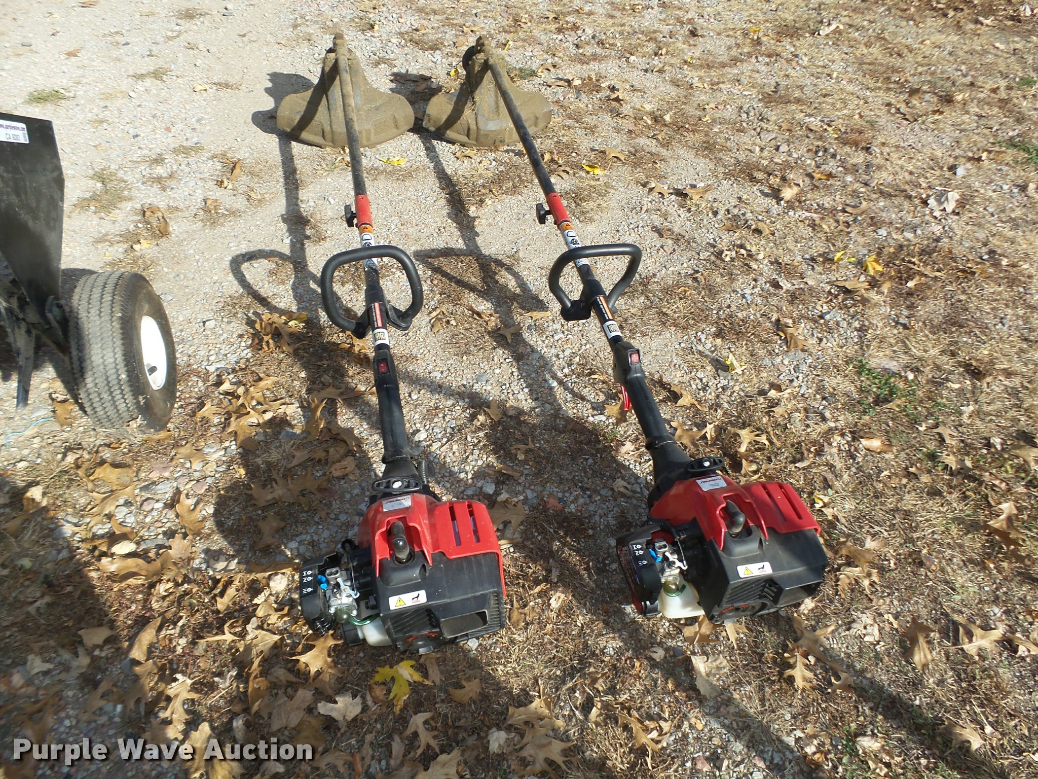 Purple Wave is selling a used Lawn and Garden in Nebraska. This item is a Lawn and garden equipment with the following: Plugger aerator, 41"W, Top tray, Pin hitch, Manual height adjust lever, 4.10/3.50-4 pneumatic tires, (2) 2015 Troy Bilt TB32E string trimmers, Two cycle gas engines, Adapts to fit other heads, Serials, 1C115DG1646, 1C025DG1460