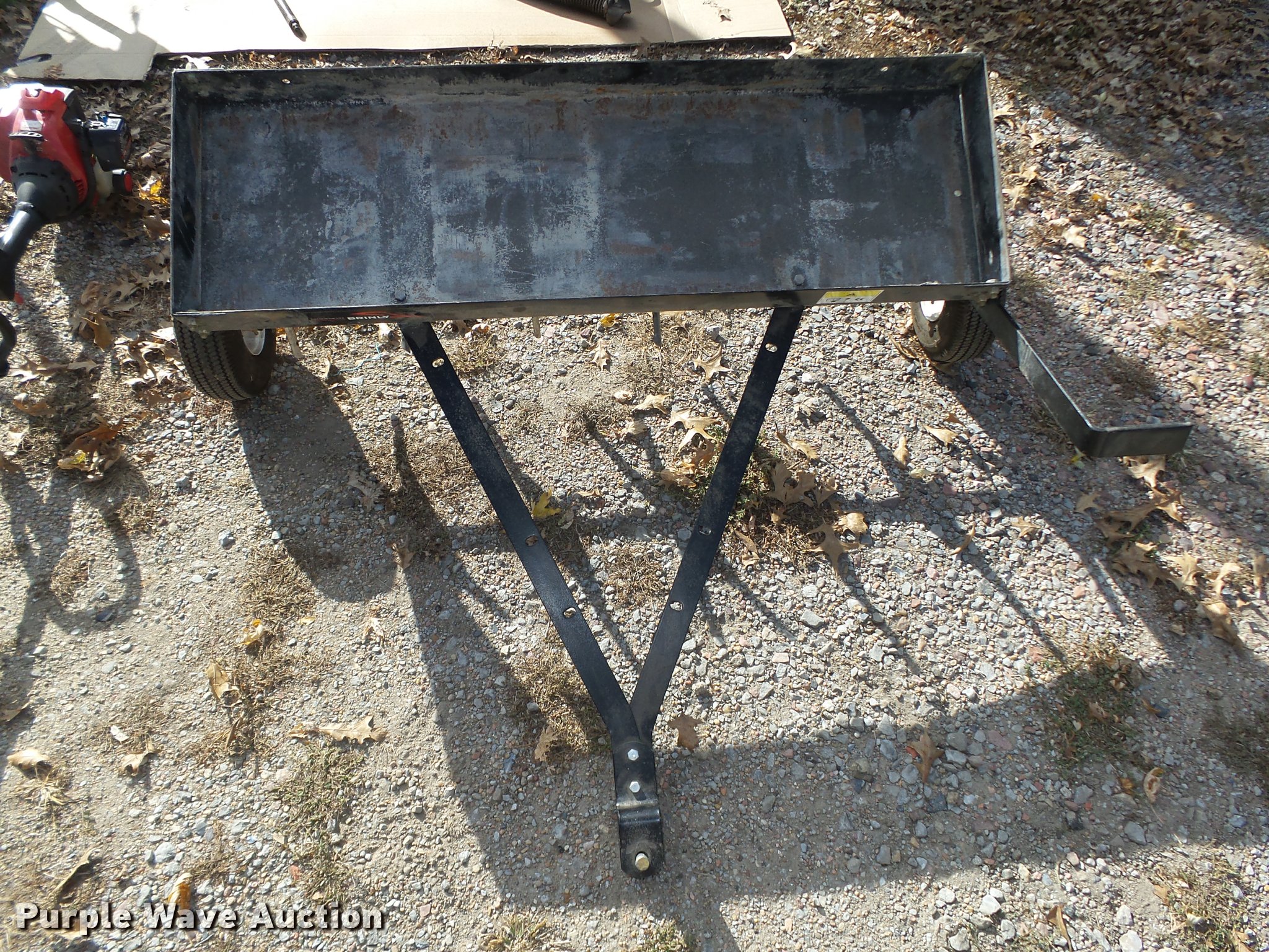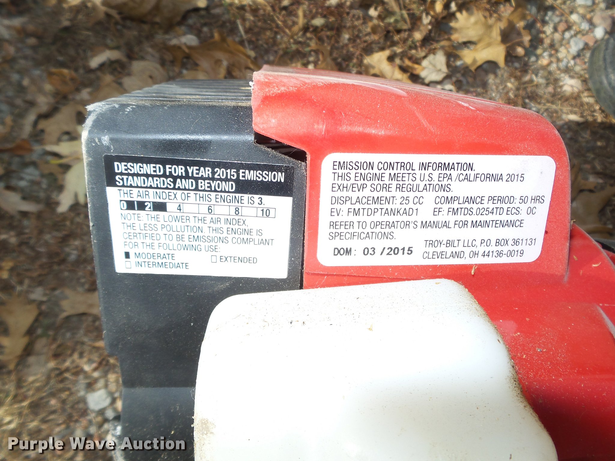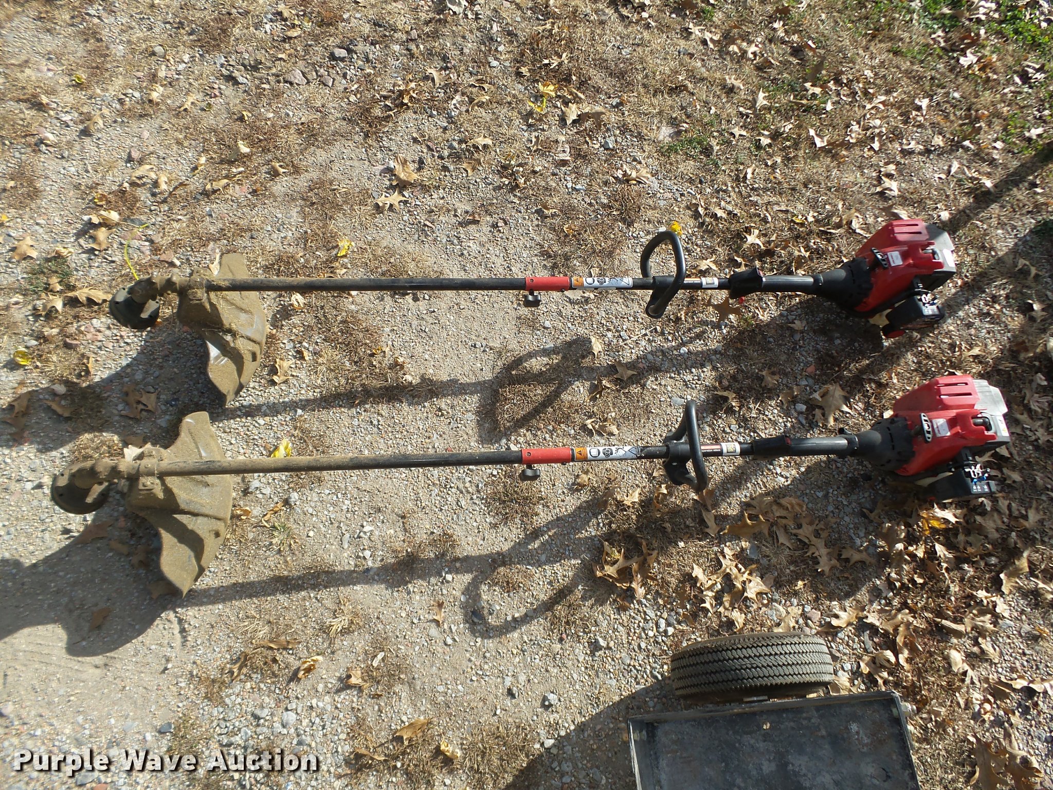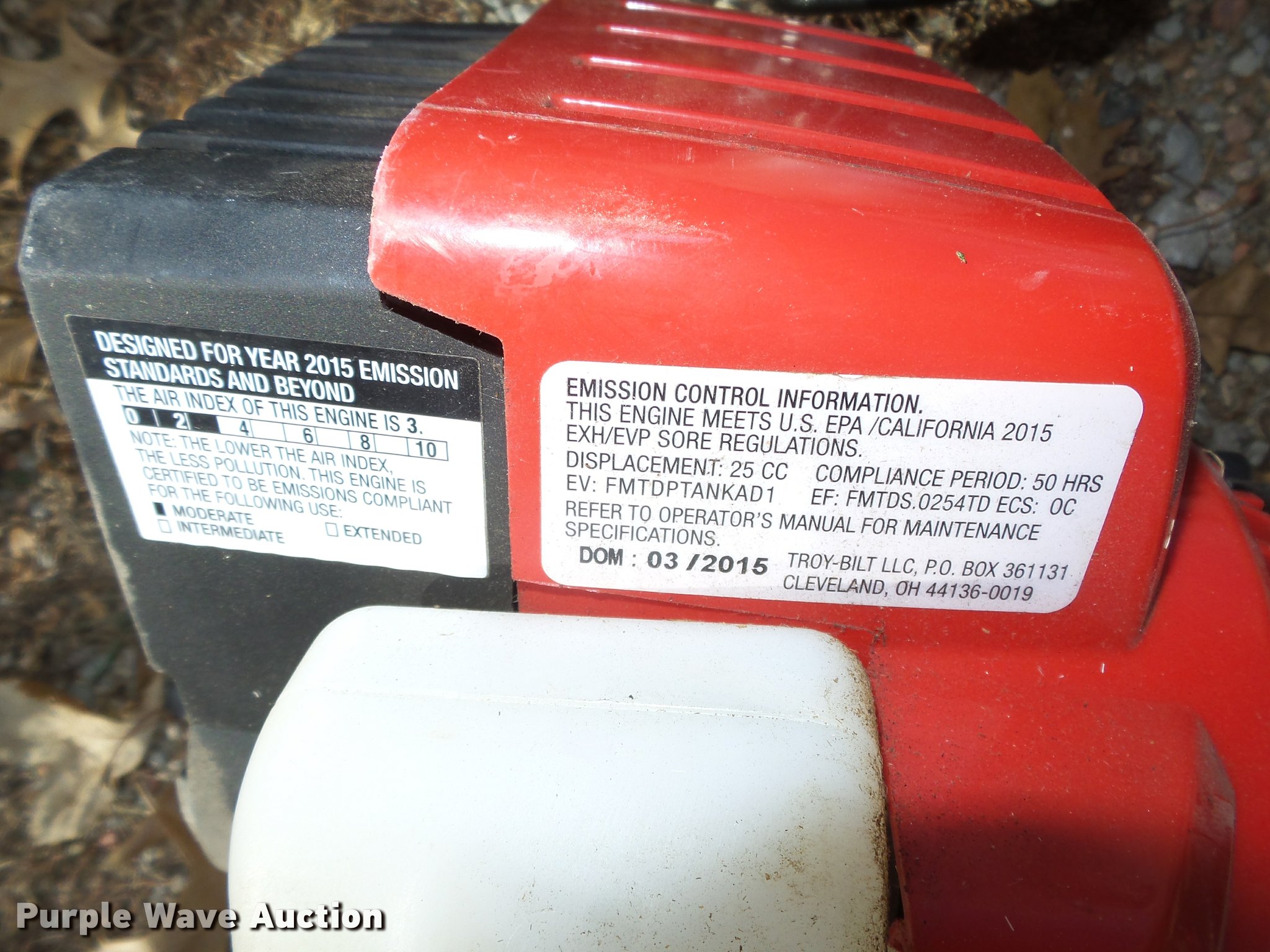 Purple Wave is selling a used Lawn and Garden in Nebraska. This item is a Lawn and garden equipment with the following: Plugger aerator, 41"W, Top tray, Pin hitch, Manual height adjust lever, 4.10/3.50-4 pneumatic tires, (2) 2015 Troy Bilt TB32E string trimmers, Two cycle gas engines, Adapts to fit other heads, Serials, 1C115DG1646, 1C025DG1460