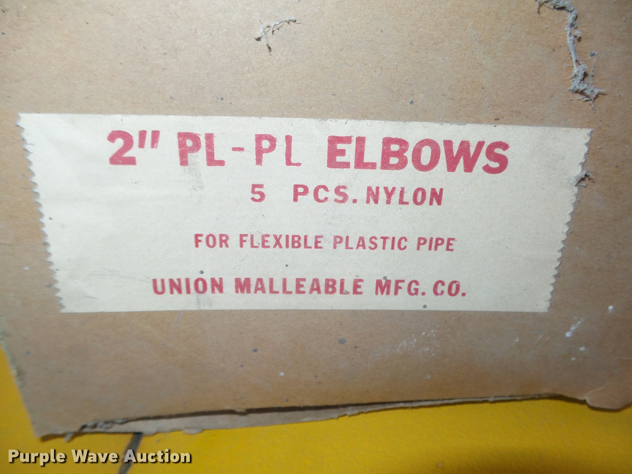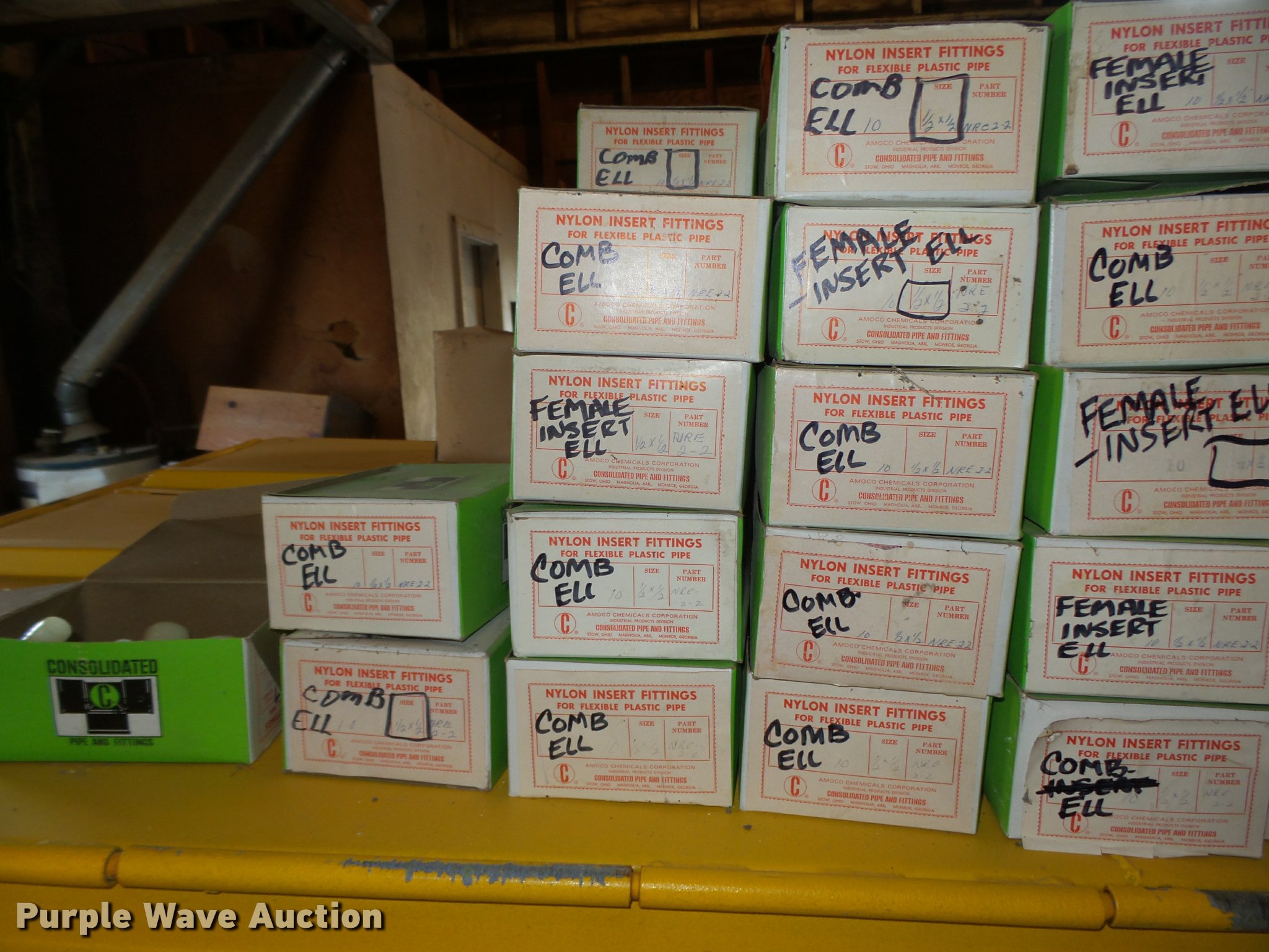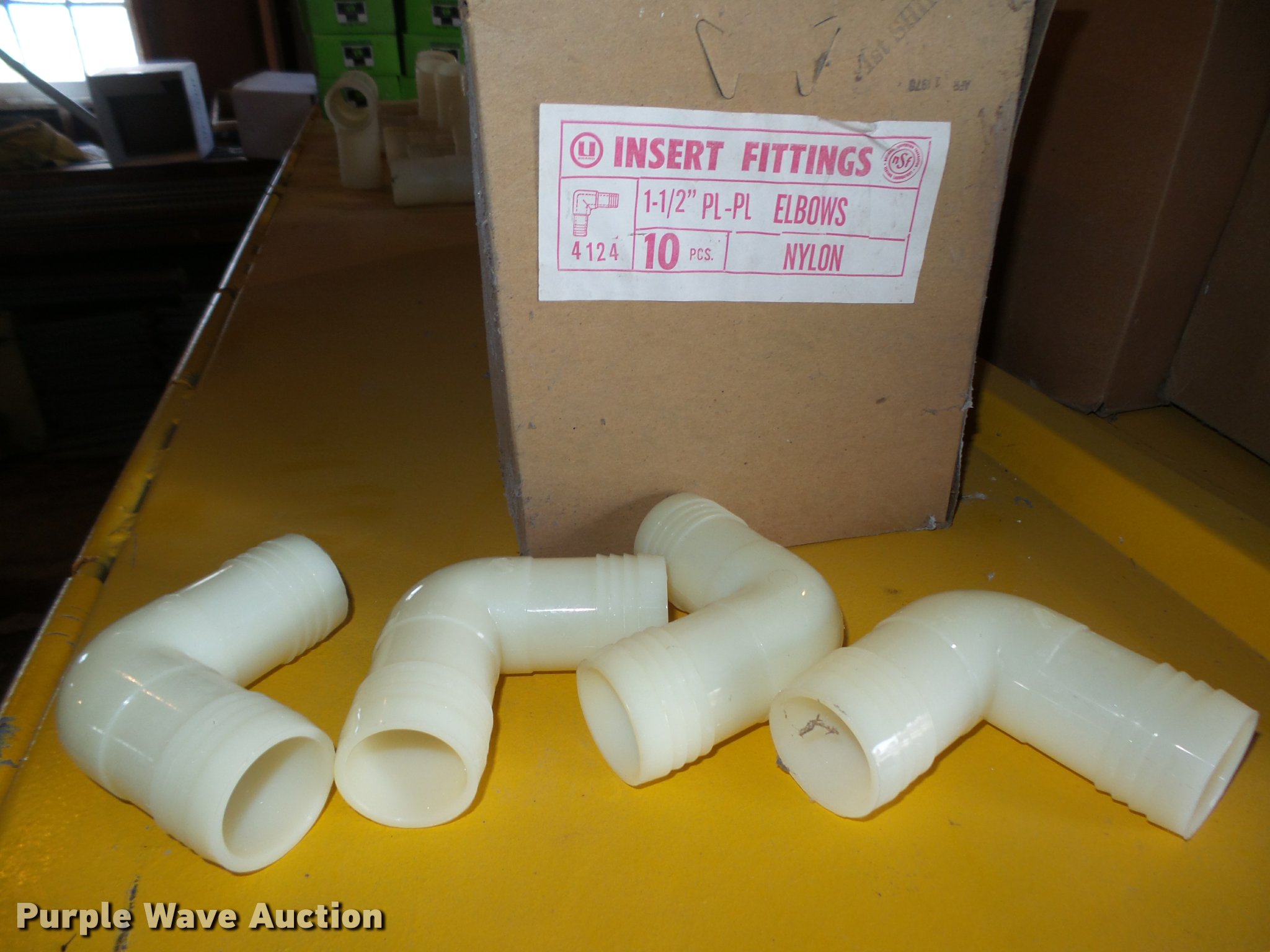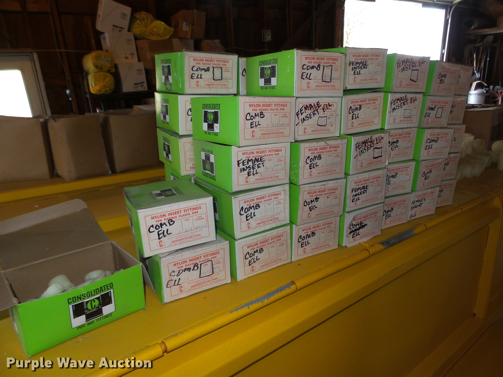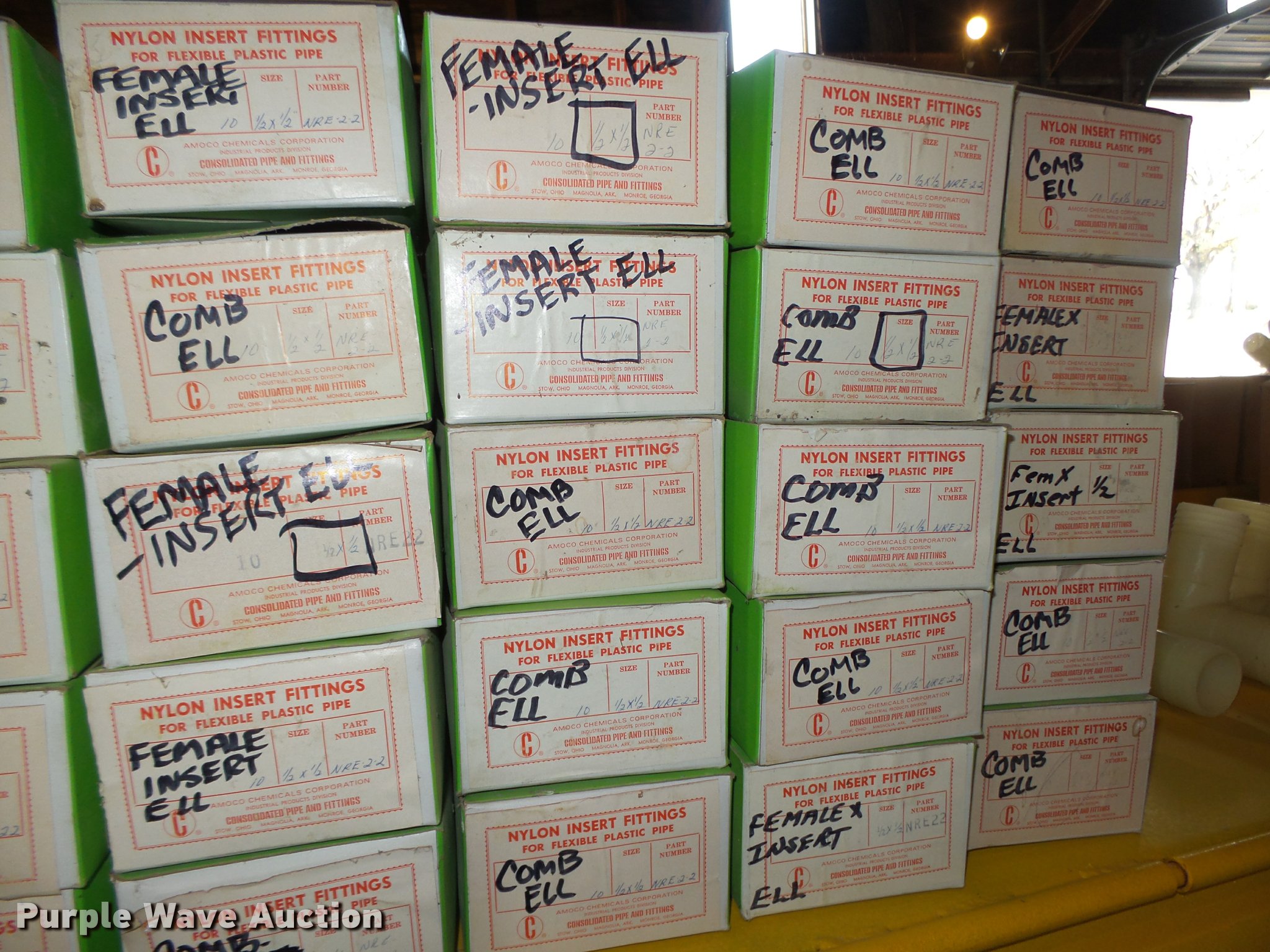 Purple Wave is selling a used Pipe in Nebraska. This item is a Approximately 800 nylon insert fittings with the following: (101) 2" 90 degree elbows, (100) 1.5" 90 degree elbows, (13) 2" ties, (620) 1/2" FIP x 1/2" insert nylon elbows, Trailer not included
