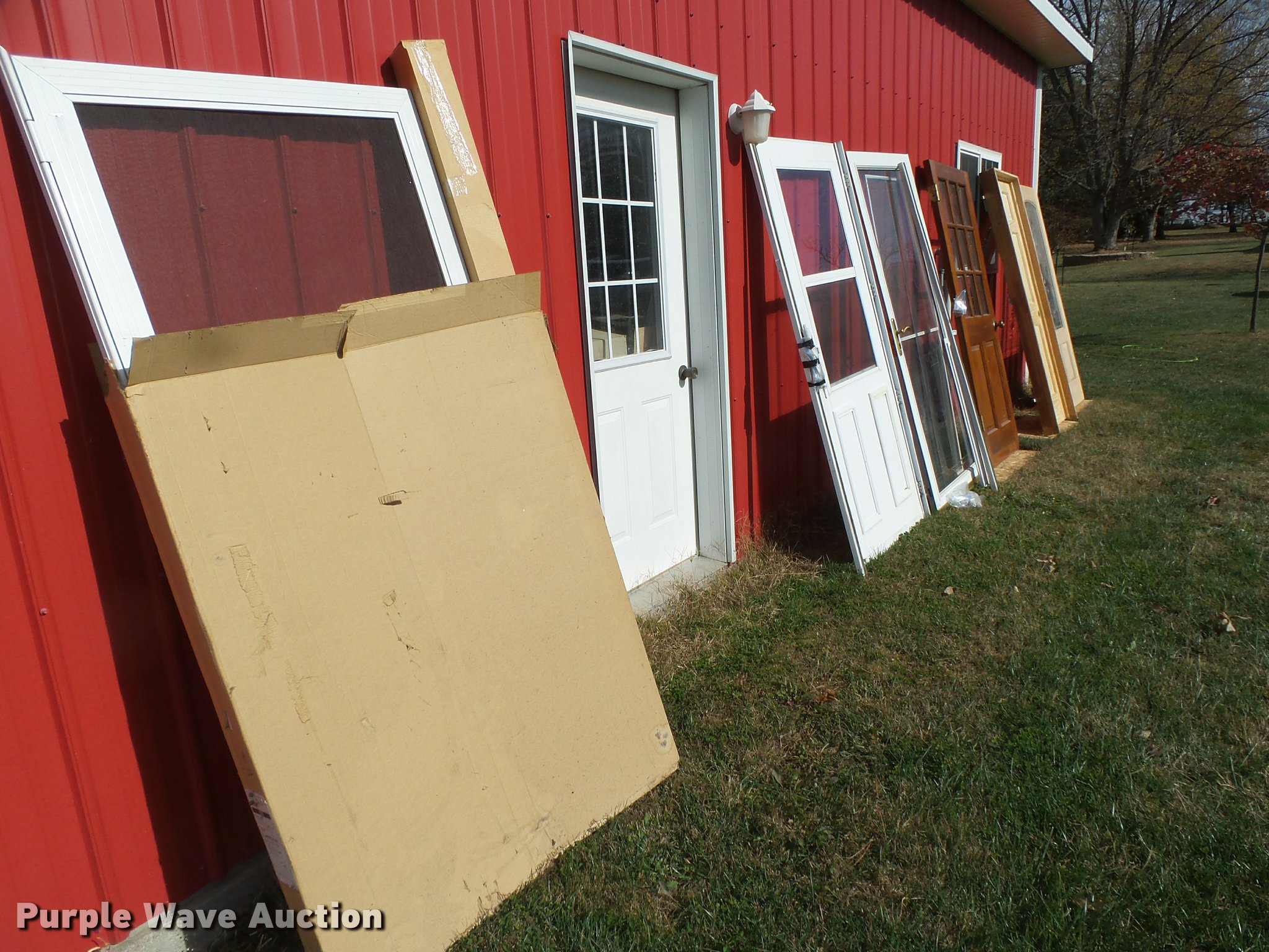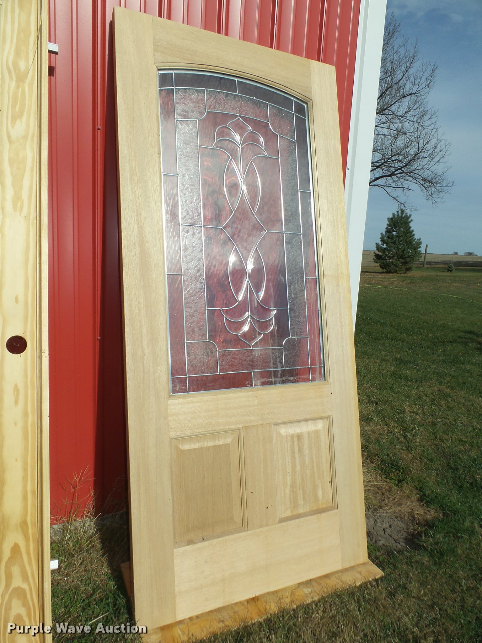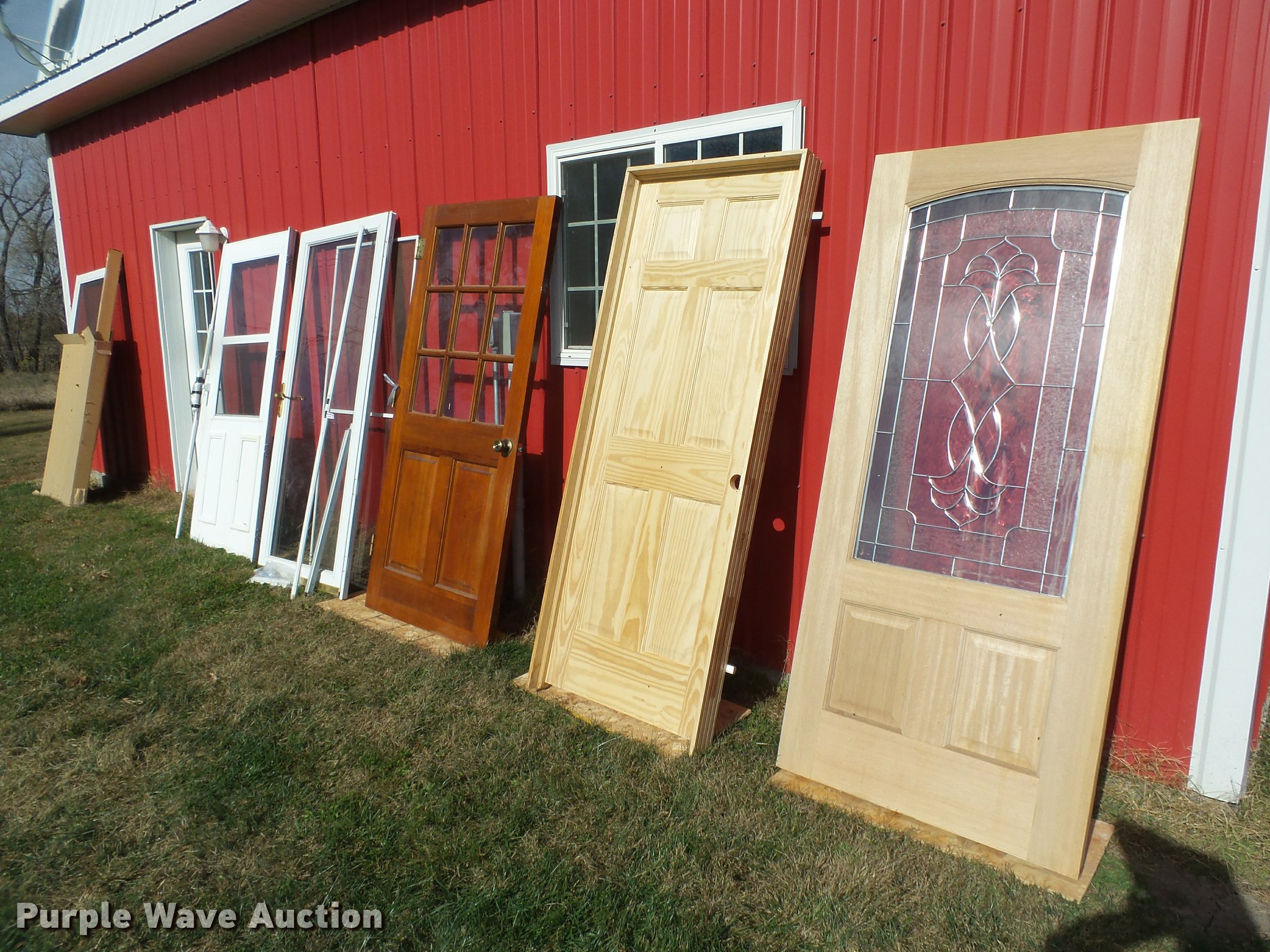 Purple Wave is selling a used Building Materials in Nebraska. This item is a (6) walk-through doors with the following: 3'W x 6'8"H, Leaded glass exterior door, Unused, 2.5'W x 6'8"H interior door, Pre-hung, Unused, 3'W x 6'8"H exterior door, (3) storm doors, (2) 3'W x 6'8"H, 3'W x 6'4"H