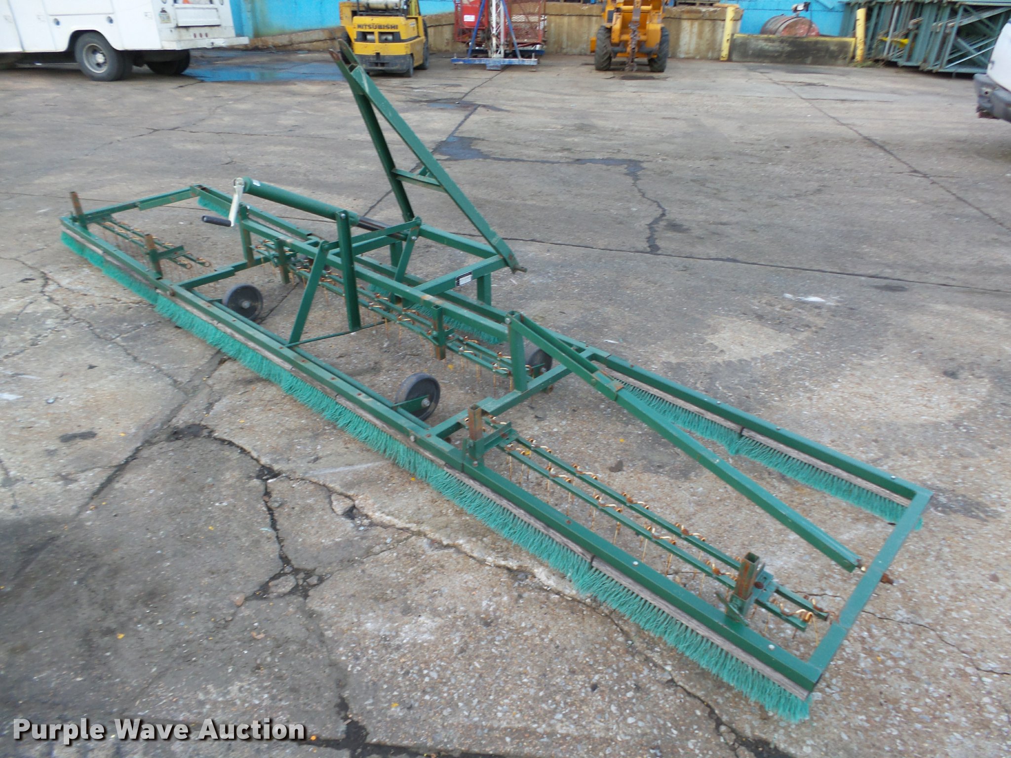 Purple Wave is selling a used Sweeper in Nebraska. This item is a Elk Creek Welding and steel rake/broom with the following: Model TG15, 15'W overall, 7'W transport position, 4' wings, 36"D, Spring tines, Poly bristles, Three point or pull behind, 8" casters, Serial 0704060