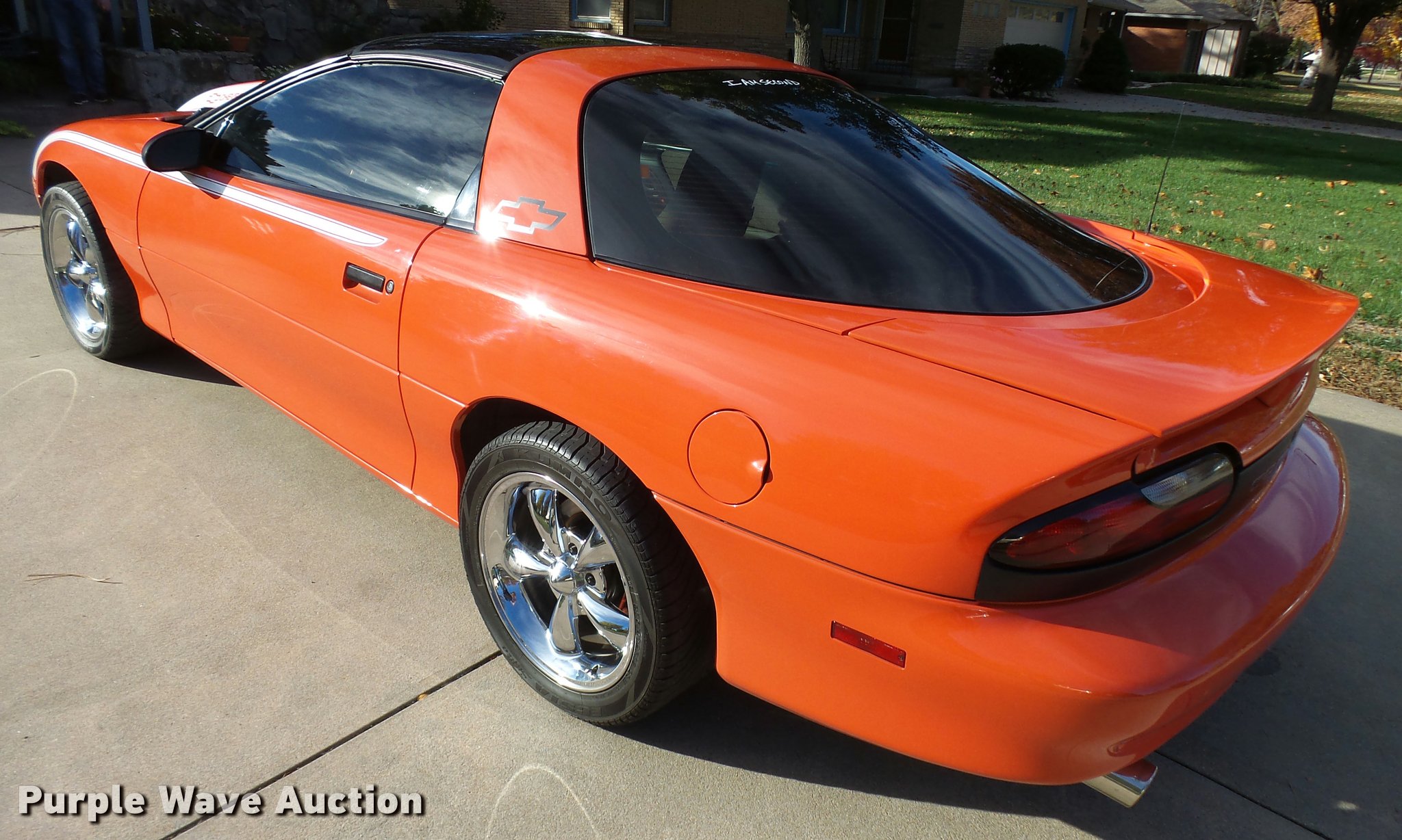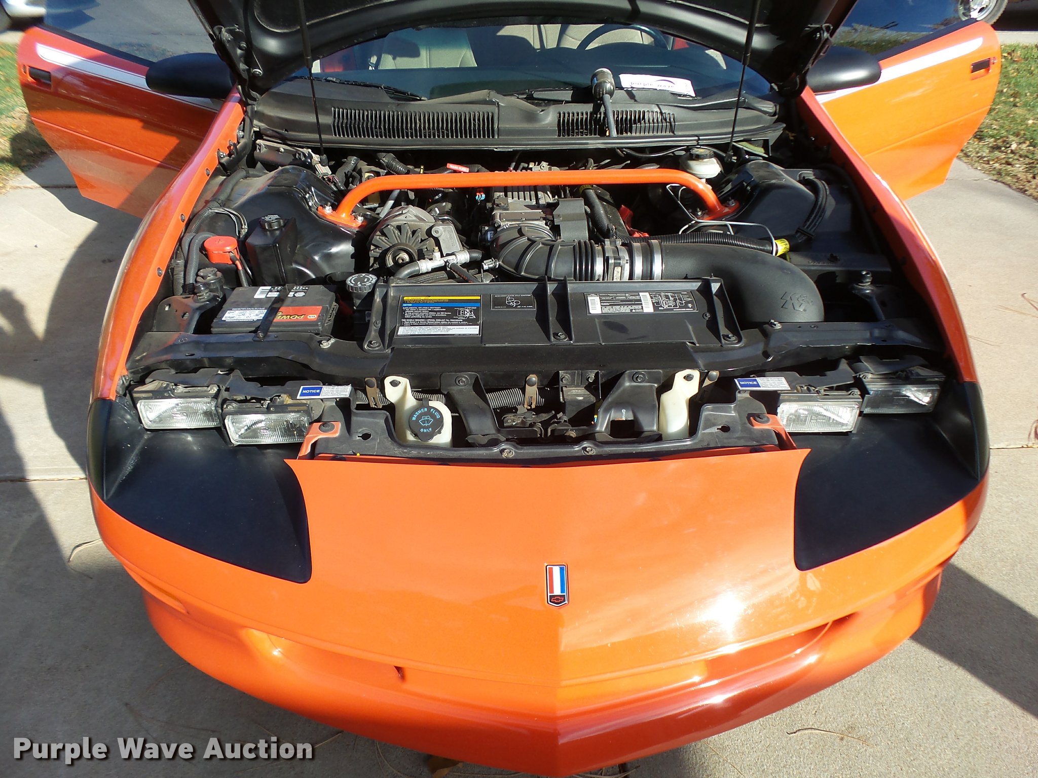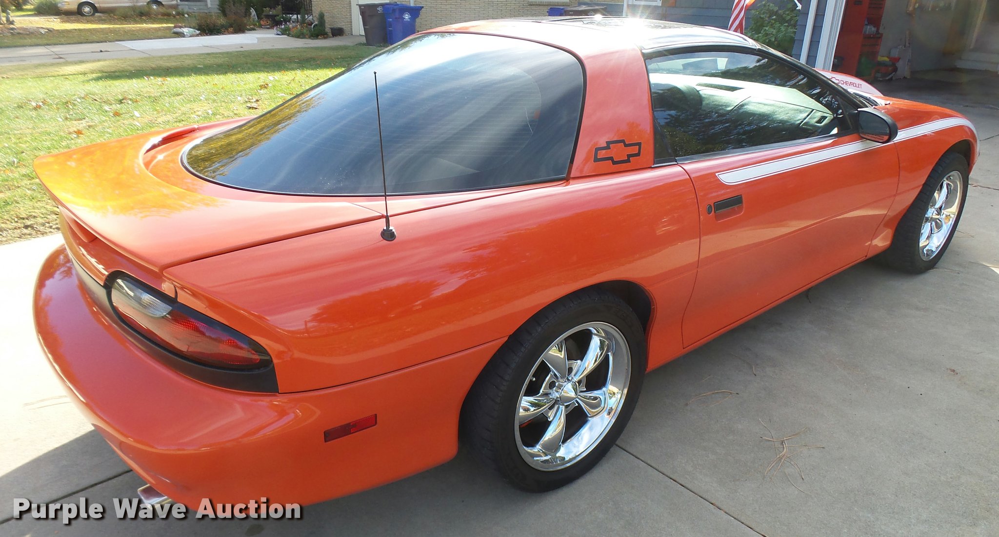 Purple Wave is selling a used Passenger Vehicle in Kansas. This item is a 1994 Chevrolet Camaro Z28 with the following: 118,022 miles on odometer, 5.7L V8 OHV 12V gas engine, Automatic transmission, AC and heat, Tilt, Cruise, AM/FM/CD, Power windows and locks, Cloth interior, Glass T-tops, Hooker headers, Magna Flow mufflers, Granatelli mass air flow sensor, Acel spark plugs, 58mm throttle body, Hypertech programmer, K&N air filter, Taylor 8mm wires, Pillar post mounted gauges, Cowl hood, Eibach springs, After-market sway bars, High performance brake rotors and calipers, Line lock, Traction bars, Alloy wheels, 275/40ZR17 tires, Racing transmission with 2,800 RPM stall converter