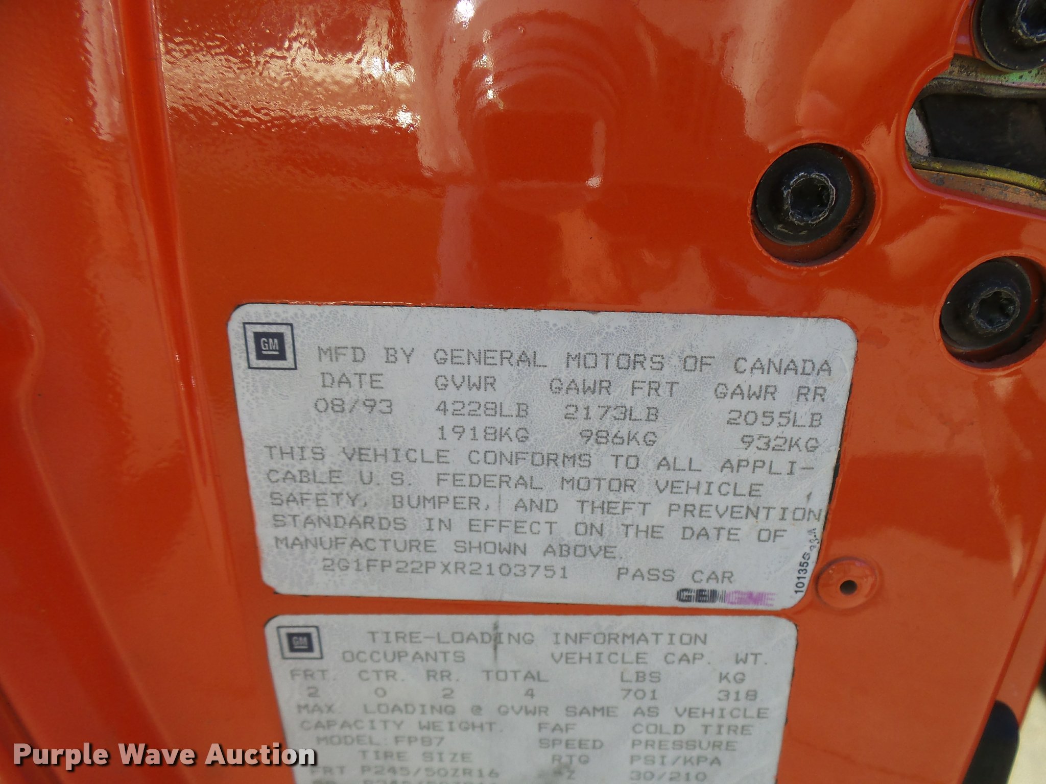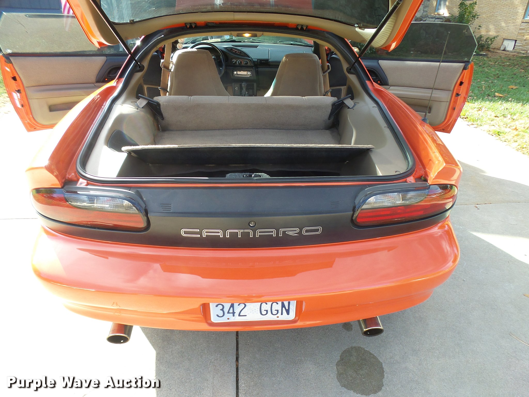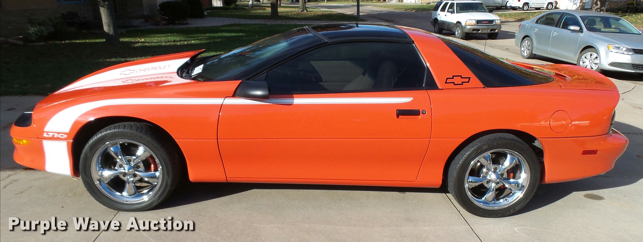 Purple Wave is selling a used Passenger Vehicle in Kansas. This item is a 1994 Chevrolet Camaro Z28 with the following: 118,022 miles on odometer, 5.7L V8 OHV 12V gas engine, Automatic transmission, AC and heat, Tilt, Cruise, AM/FM/CD, Power windows and locks, Cloth interior, Glass T-tops, Hooker headers, Magna Flow mufflers, Granatelli mass air flow sensor, Acel spark plugs, 58mm throttle body, Hypertech programmer, K&N air filter, Taylor 8mm wires, Pillar post mounted gauges, Cowl hood, Eibach springs, After-market sway bars, High performance brake rotors and calipers, Line lock, Traction bars, Alloy wheels, 275/40ZR17 tires, Racing transmission with 2,800 RPM stall converter